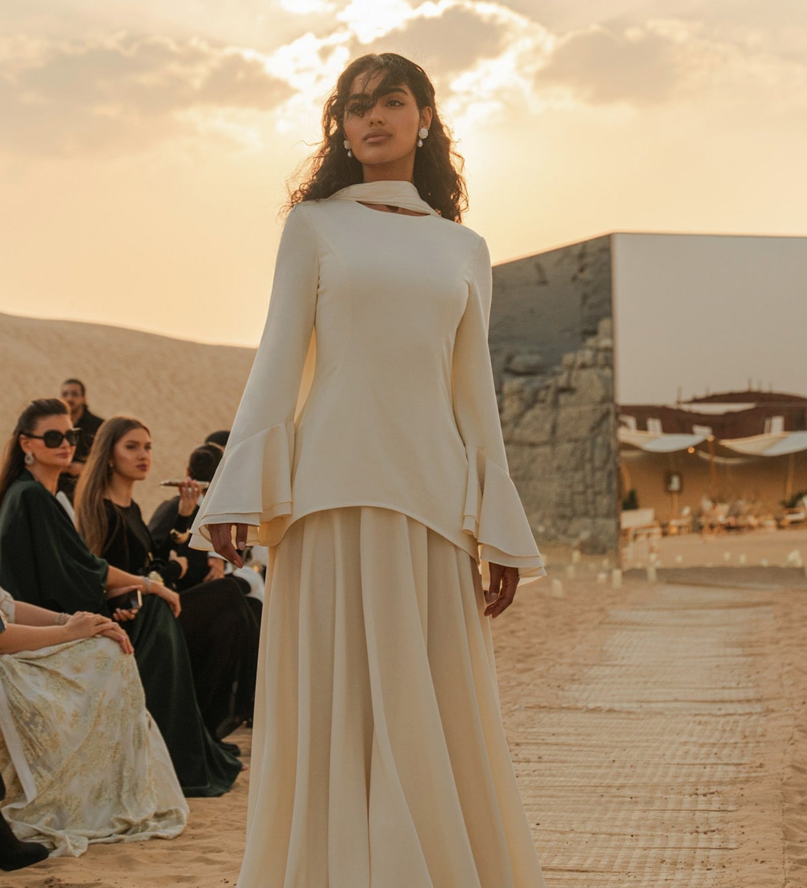 Asümmeetriline Kappa Siidise Midi Kleit