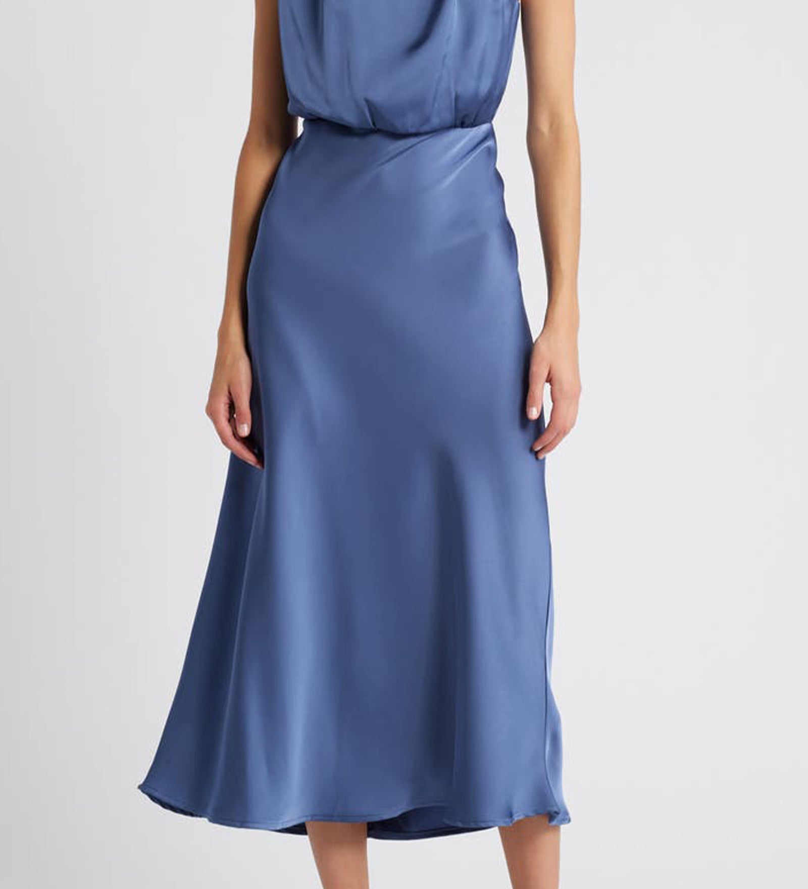 Asümmeetriline satiinist midi kleit Daisy Blue