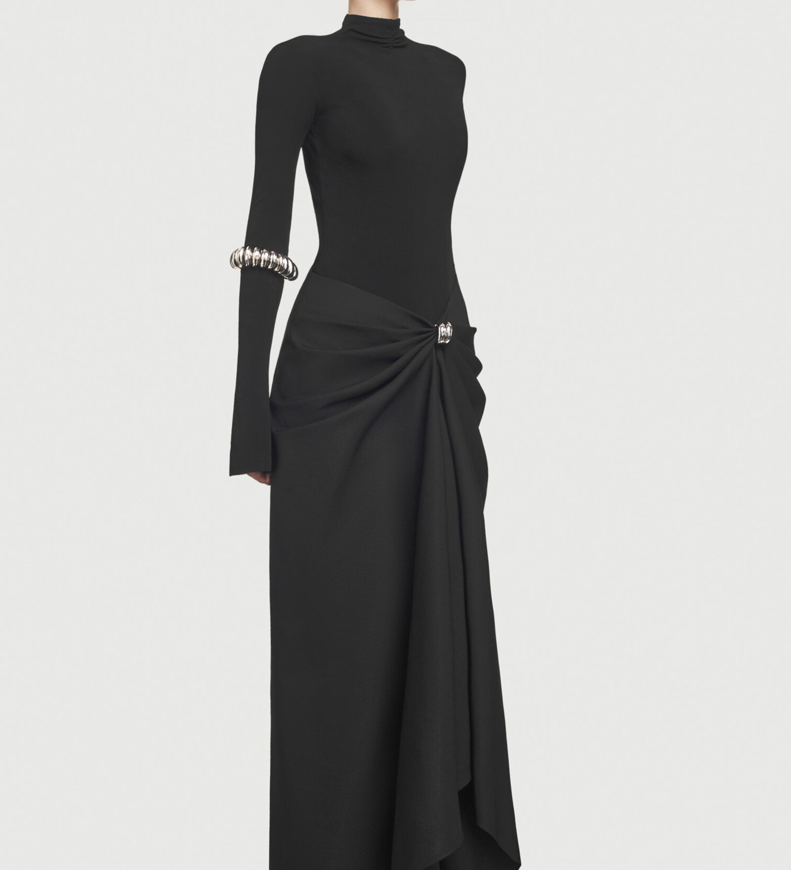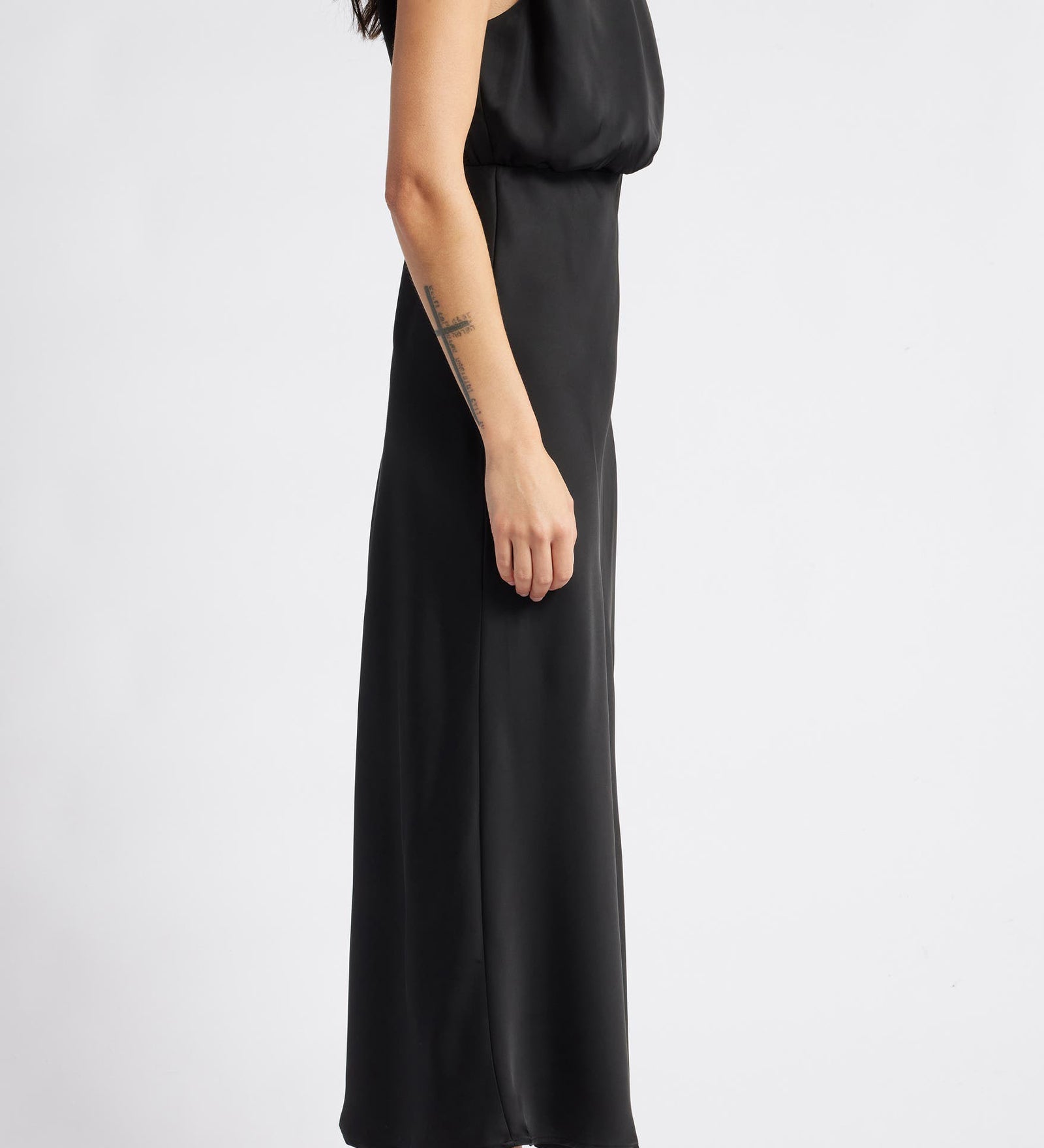 Asümmeetriline Ühe Õla Jersey Midi Kleit Mustas