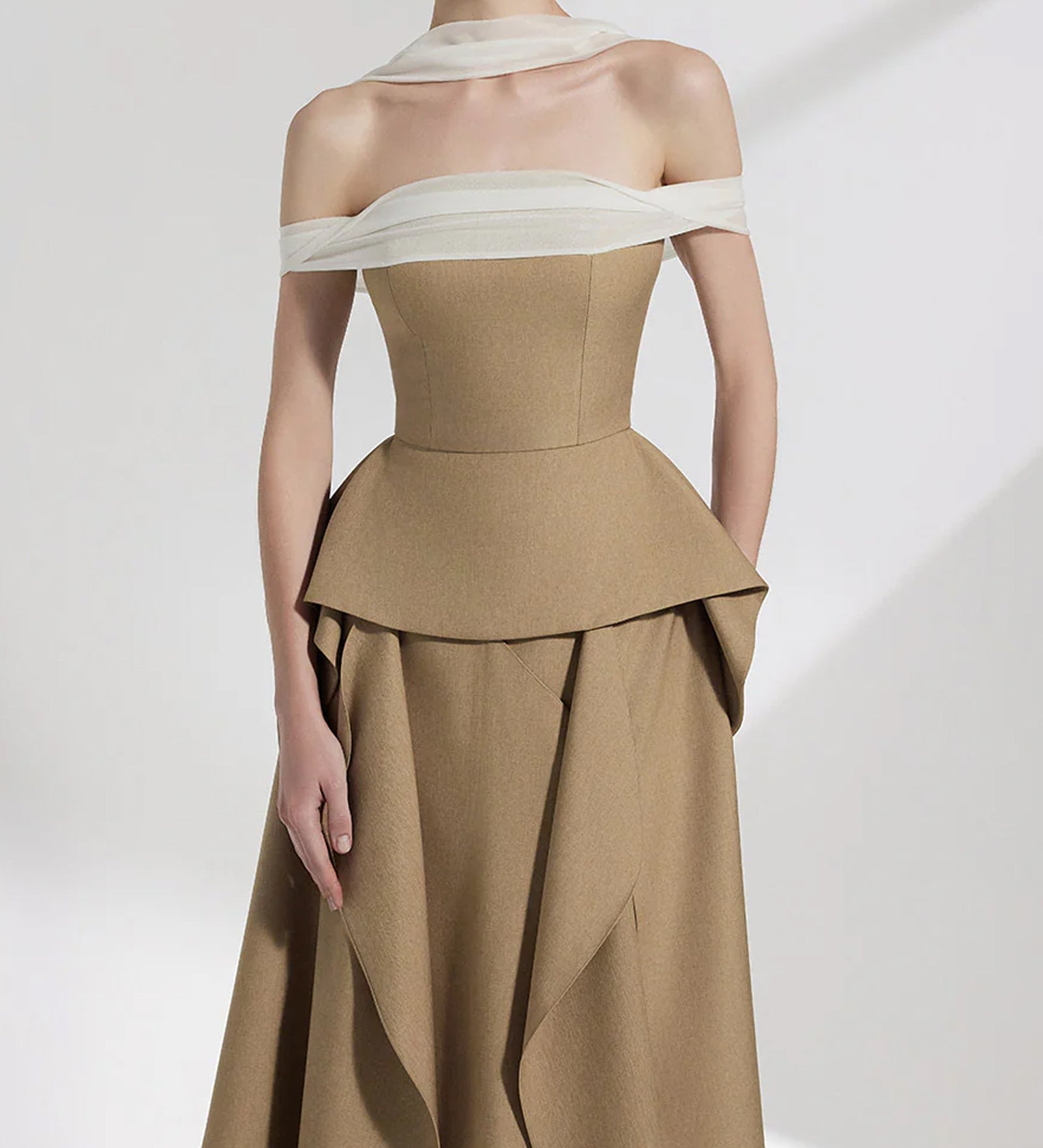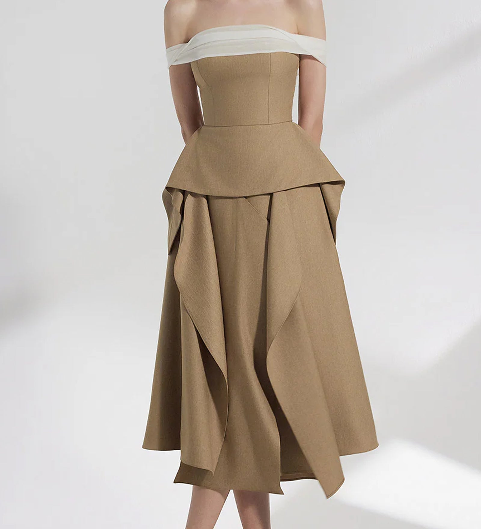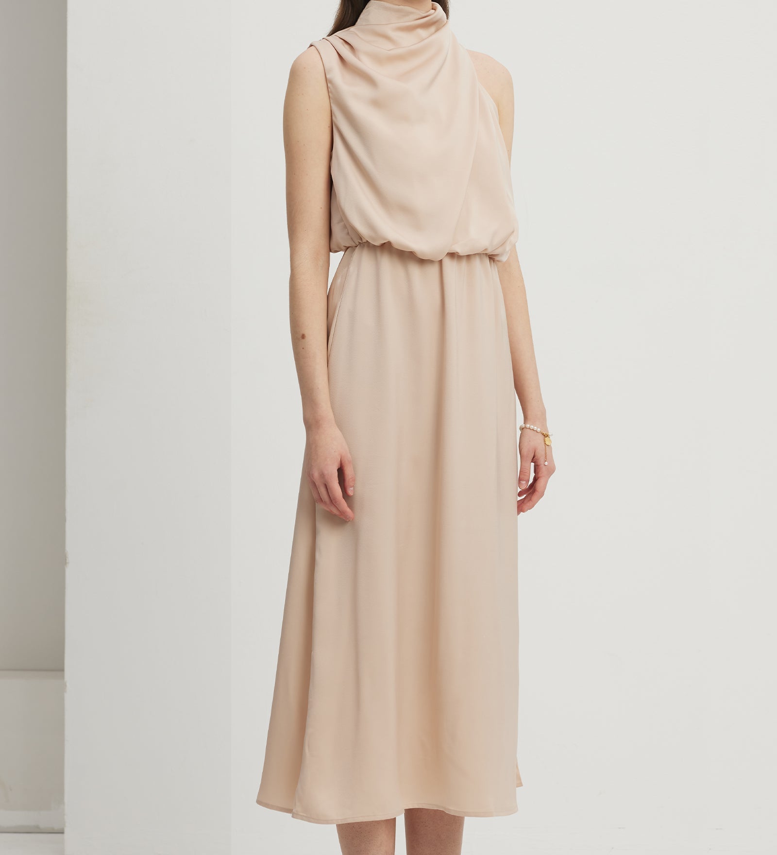 Asümmeetriline Vöö Lõikega Midi Kleit