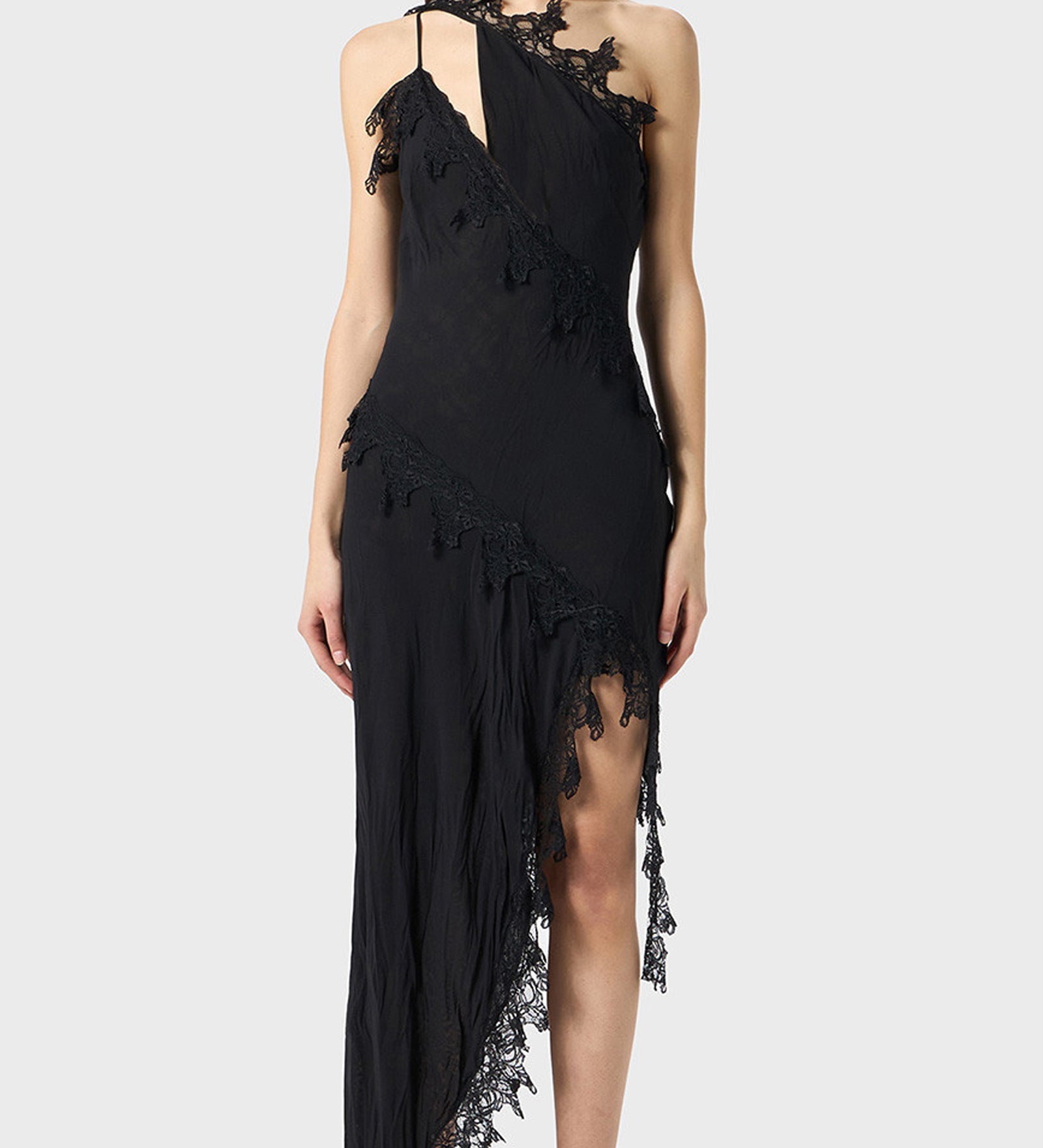 Asümmeetrilise Kaelusega Lõhikuga Midi Kleit