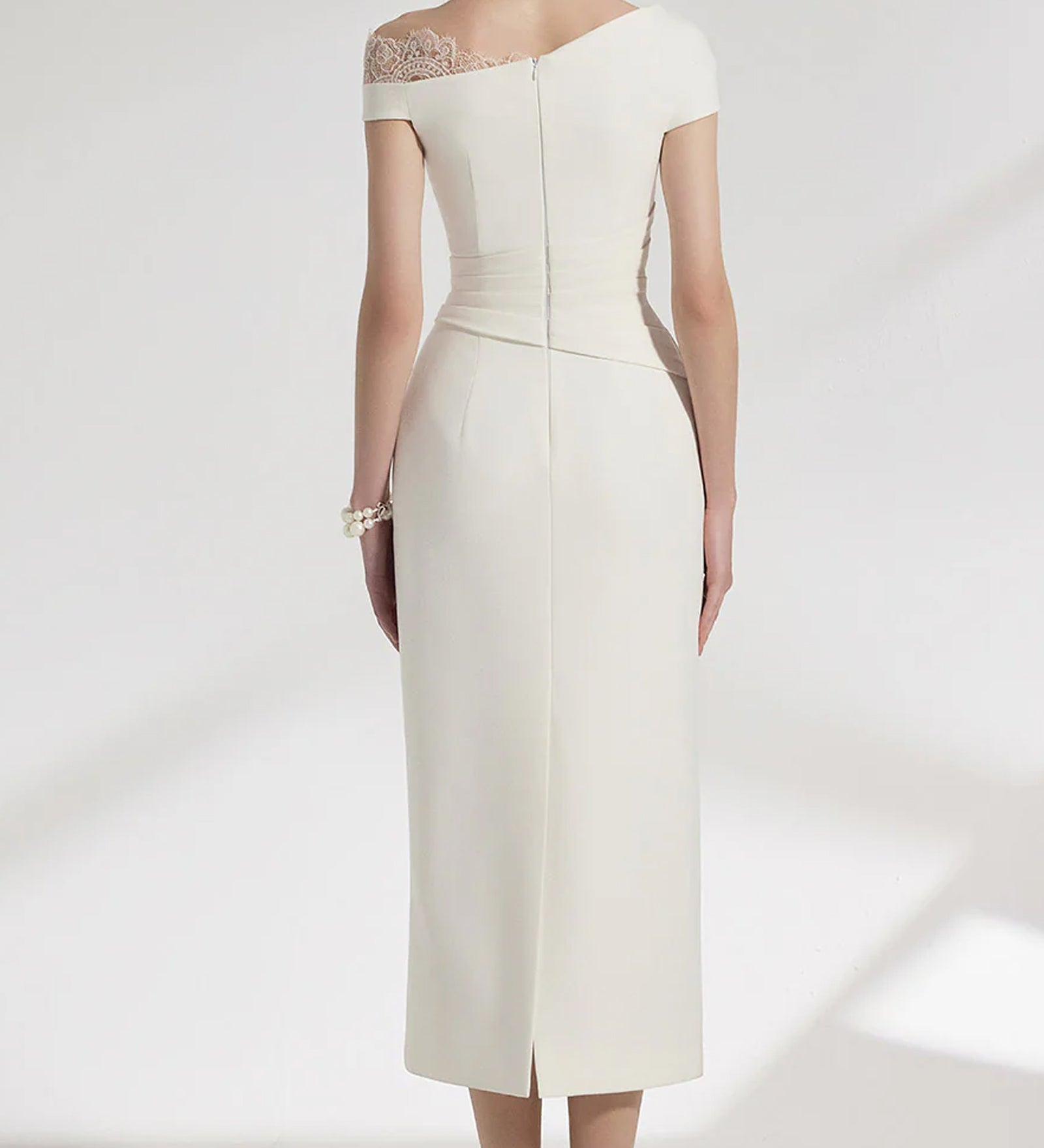 Asümmeetrilise Varrukaga Brokaad Midi Kleit
