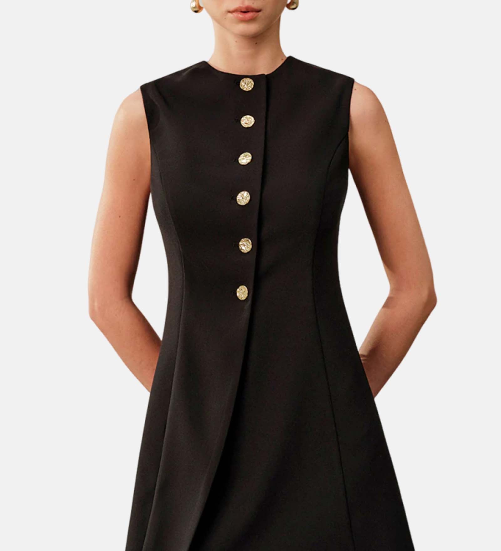 Asümmeetrilise Lõikega Mini Kleit Metallnuppudega