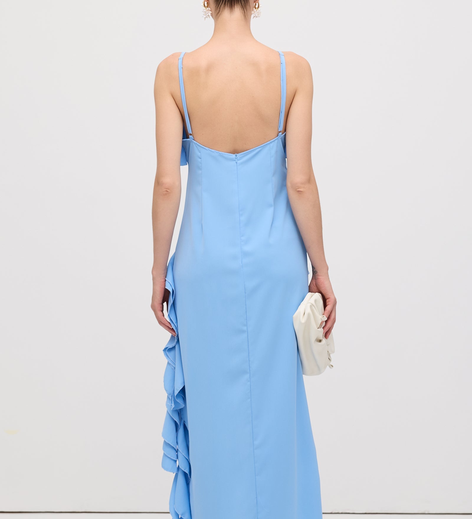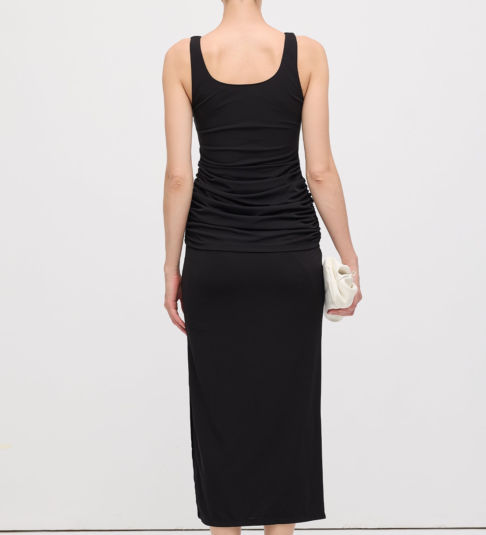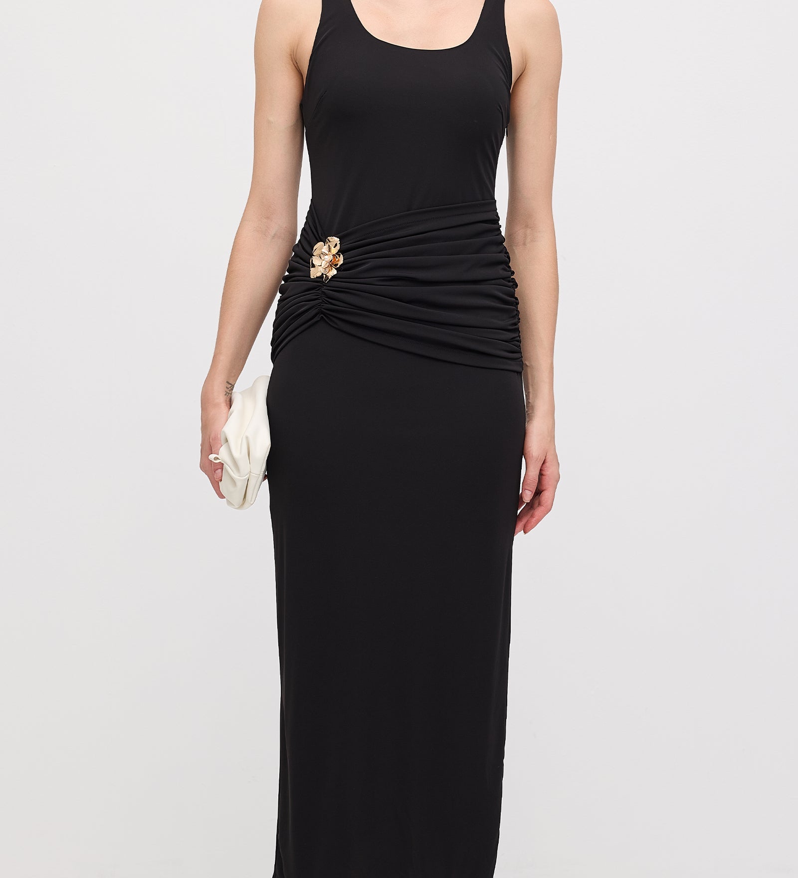 Varrukateta Rikkalik Drapeeritud Maxi Kleit Avatud Seljaga
