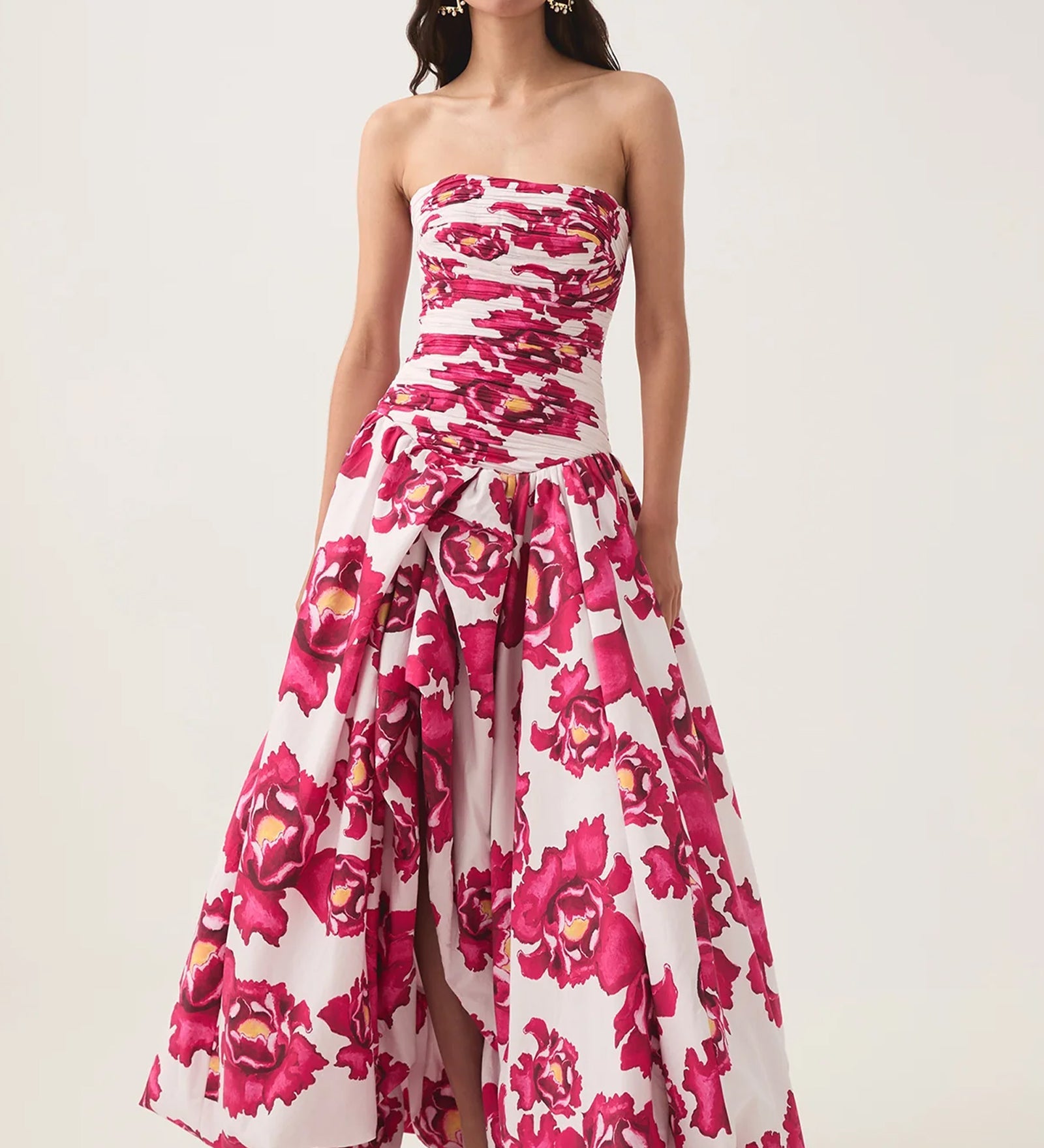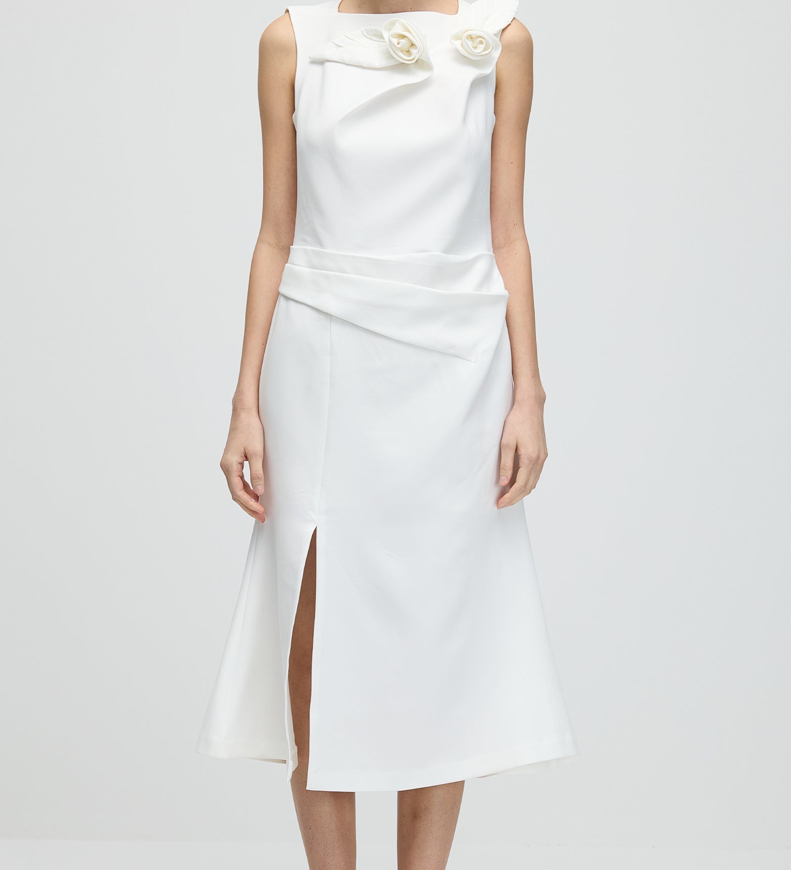 Varrukateta Lilleline Rõhutatav Lõhik Midi Kleid