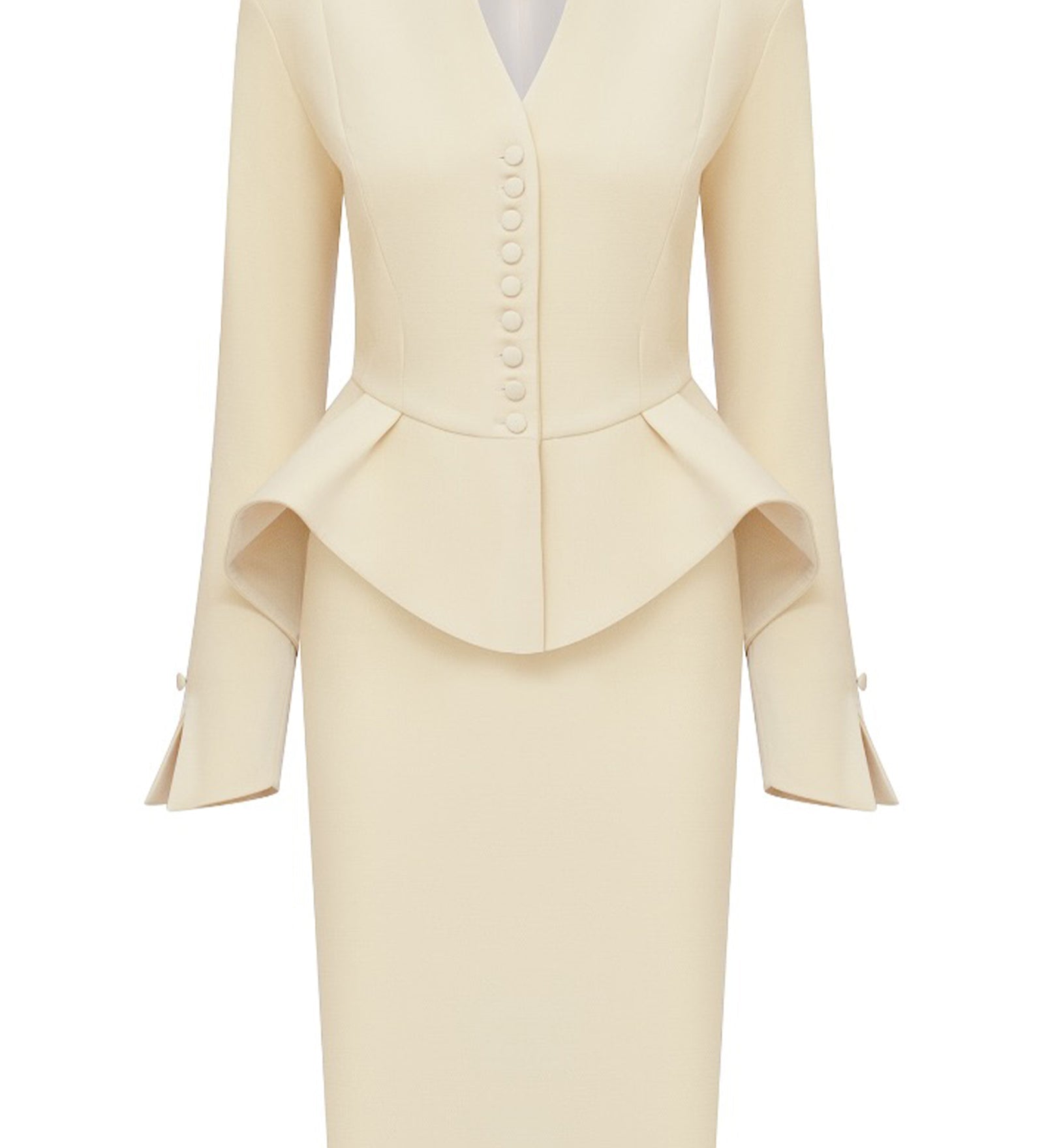 Peplum jakk ja lõhiku midi seelik