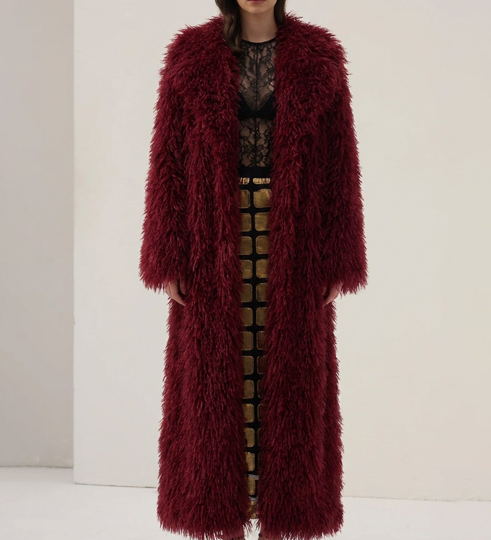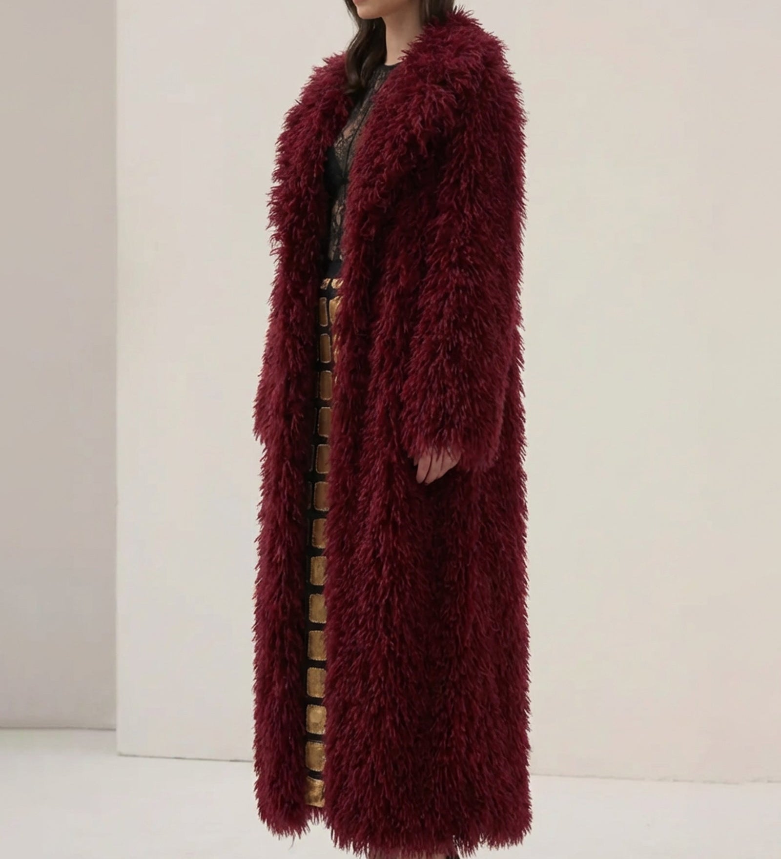 Faux karusnahast maksijakk burgundia värv