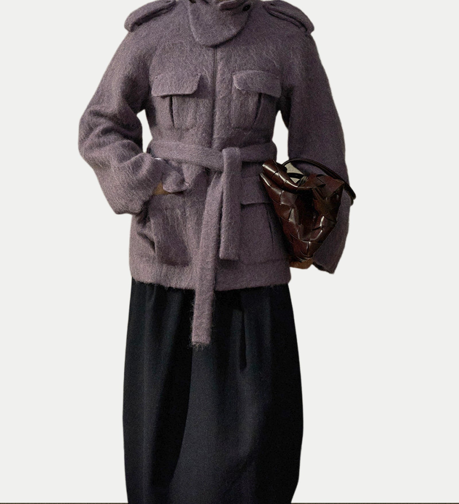 Asümmeetriline Woo Kašmiiriga Vööga Mantel
