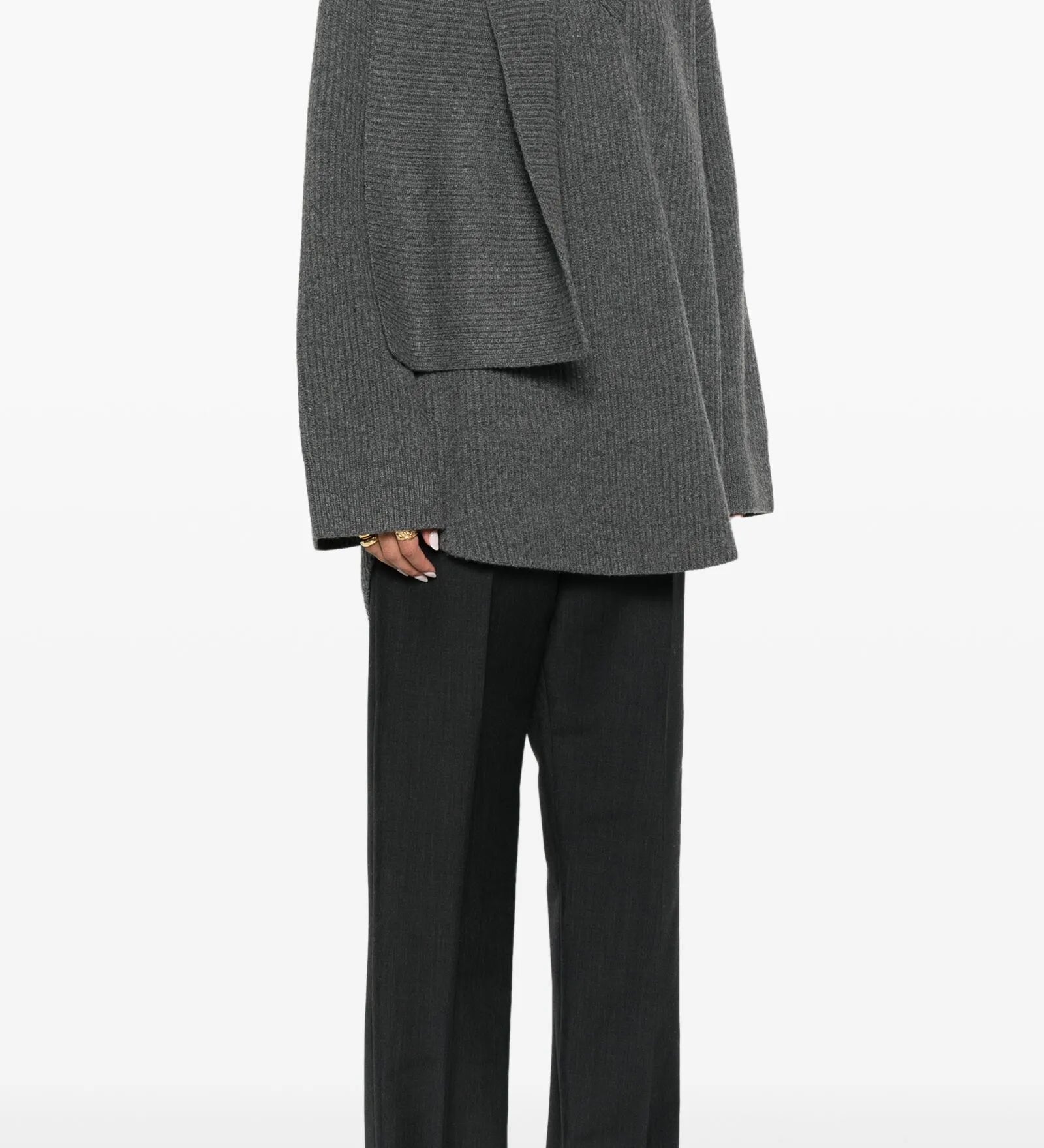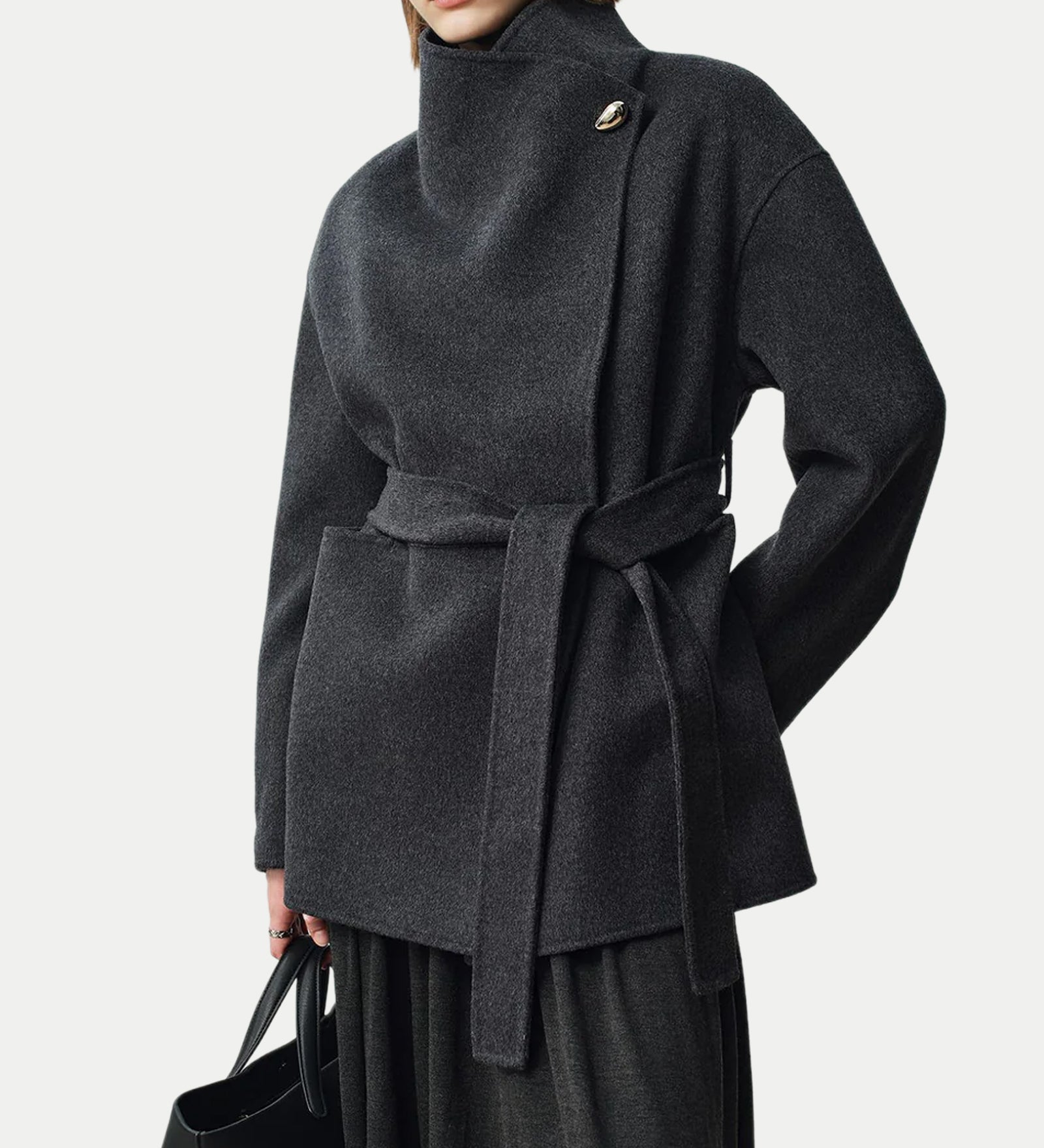 Asümmeetriline Woo Kašmiirist Vööga Mantel Hallis