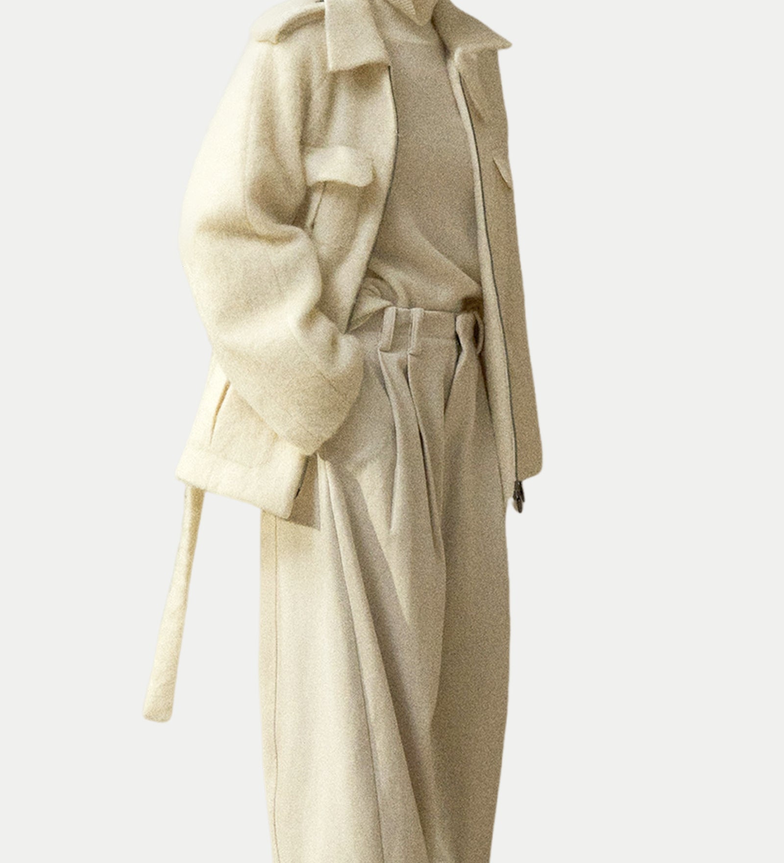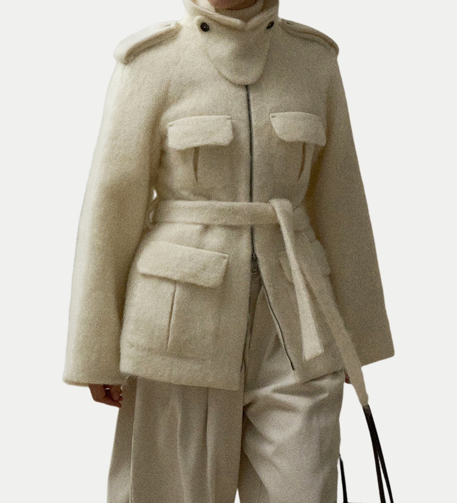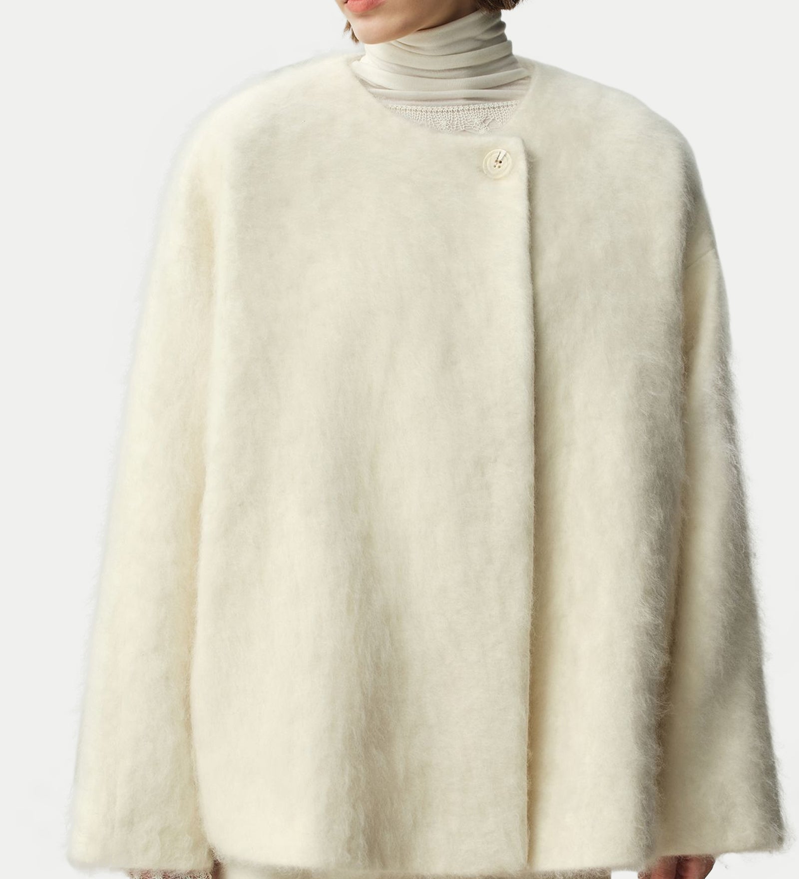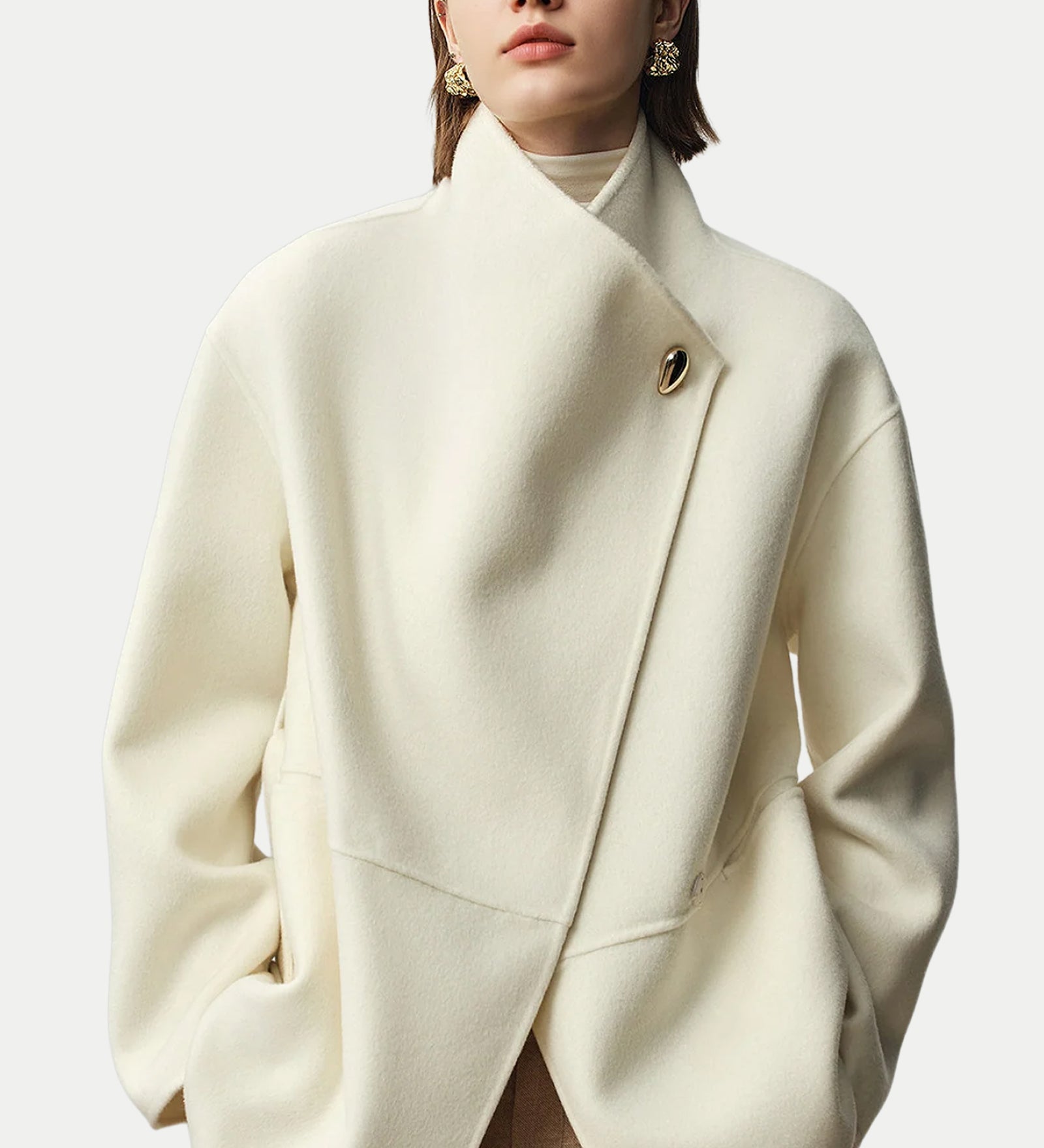 Valge seisev krae sobiv villane mantel