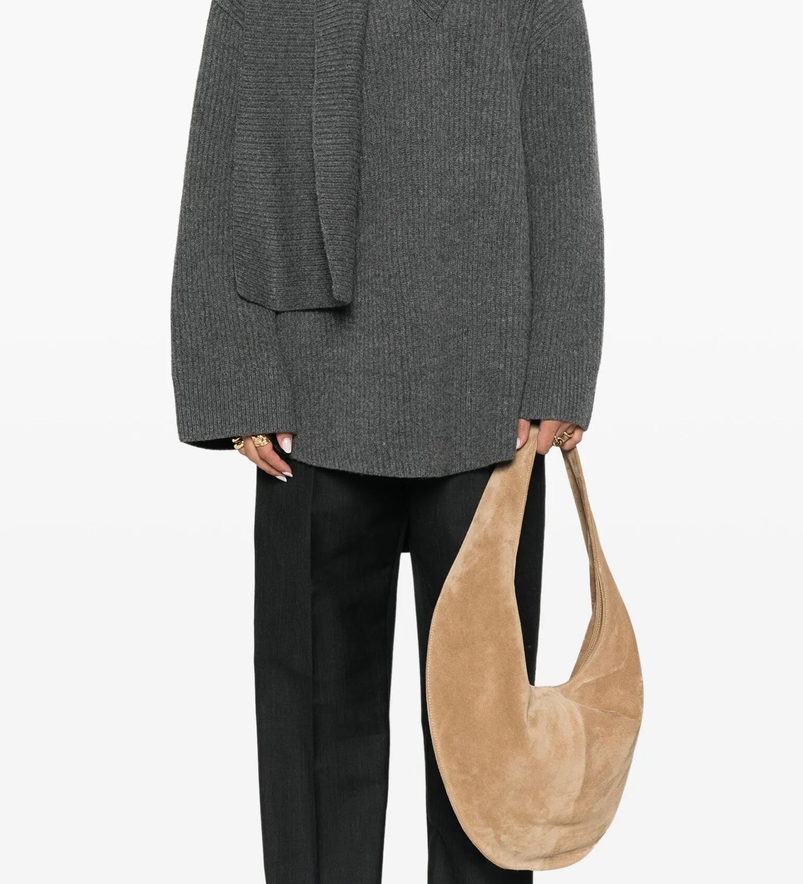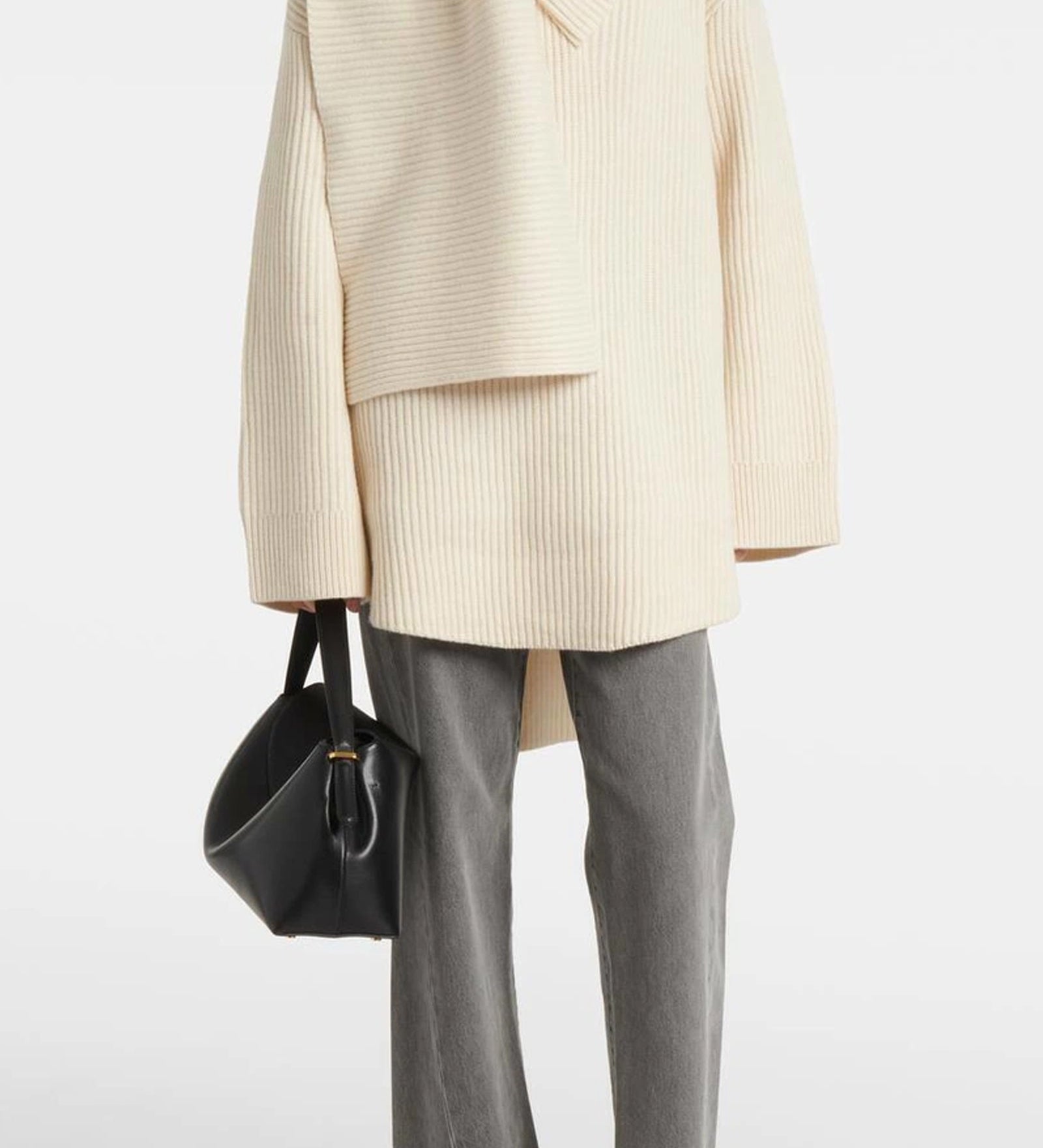 Ribbed-Knit Villane Sall-Sveter Aprikoos
