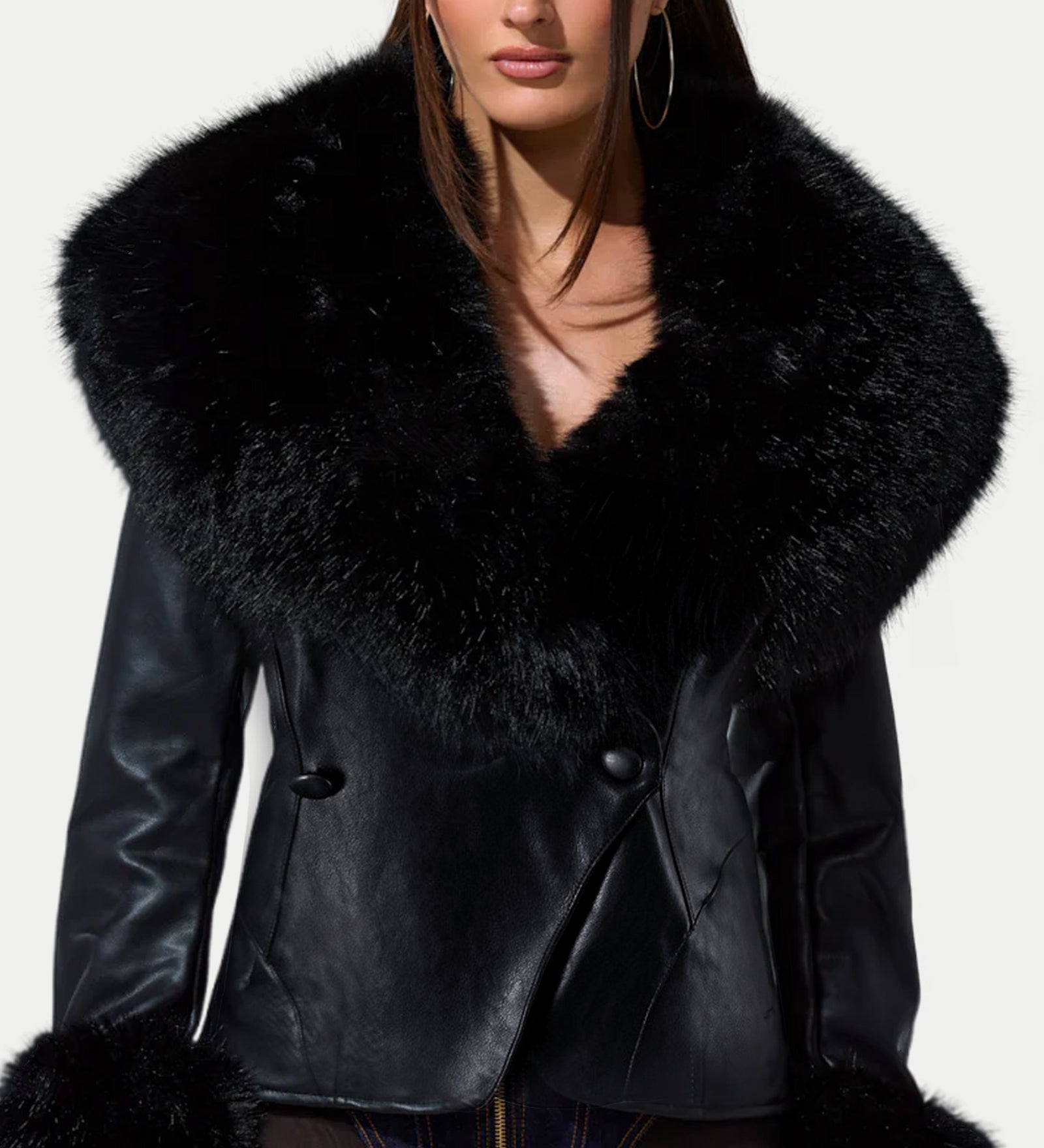 Lühike jakk karvase kaelusega ja pehmete mansettidega
