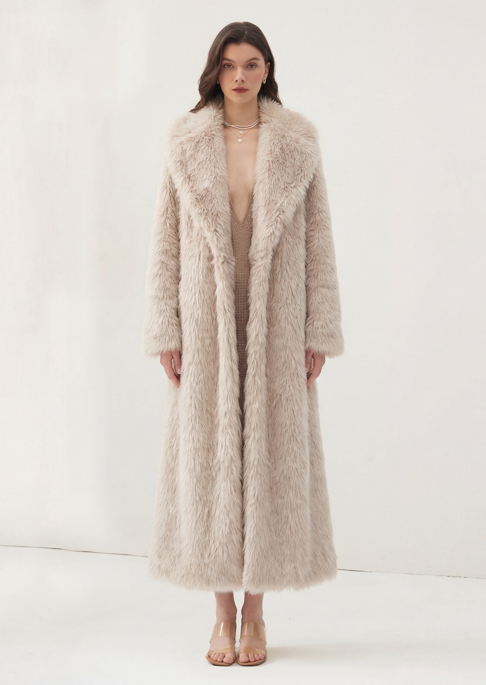 Uuenda oma talvegarderoobi selle luksusliku faux karusnahast maksikattega, mis pakub rafineeritud soojust ilma kompromissideta.