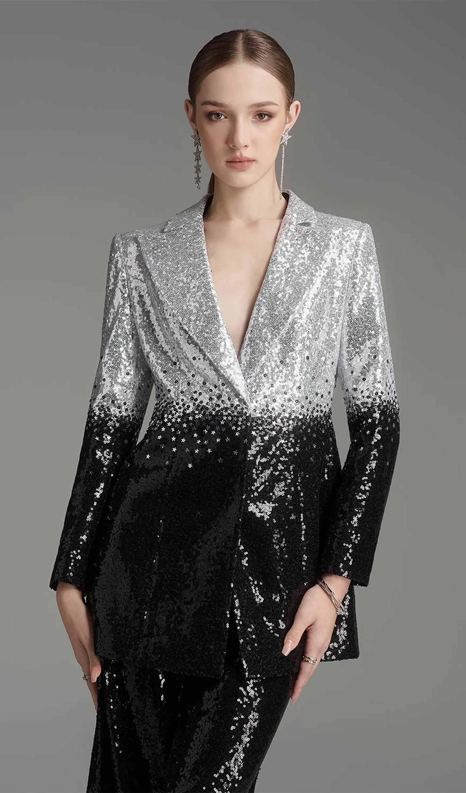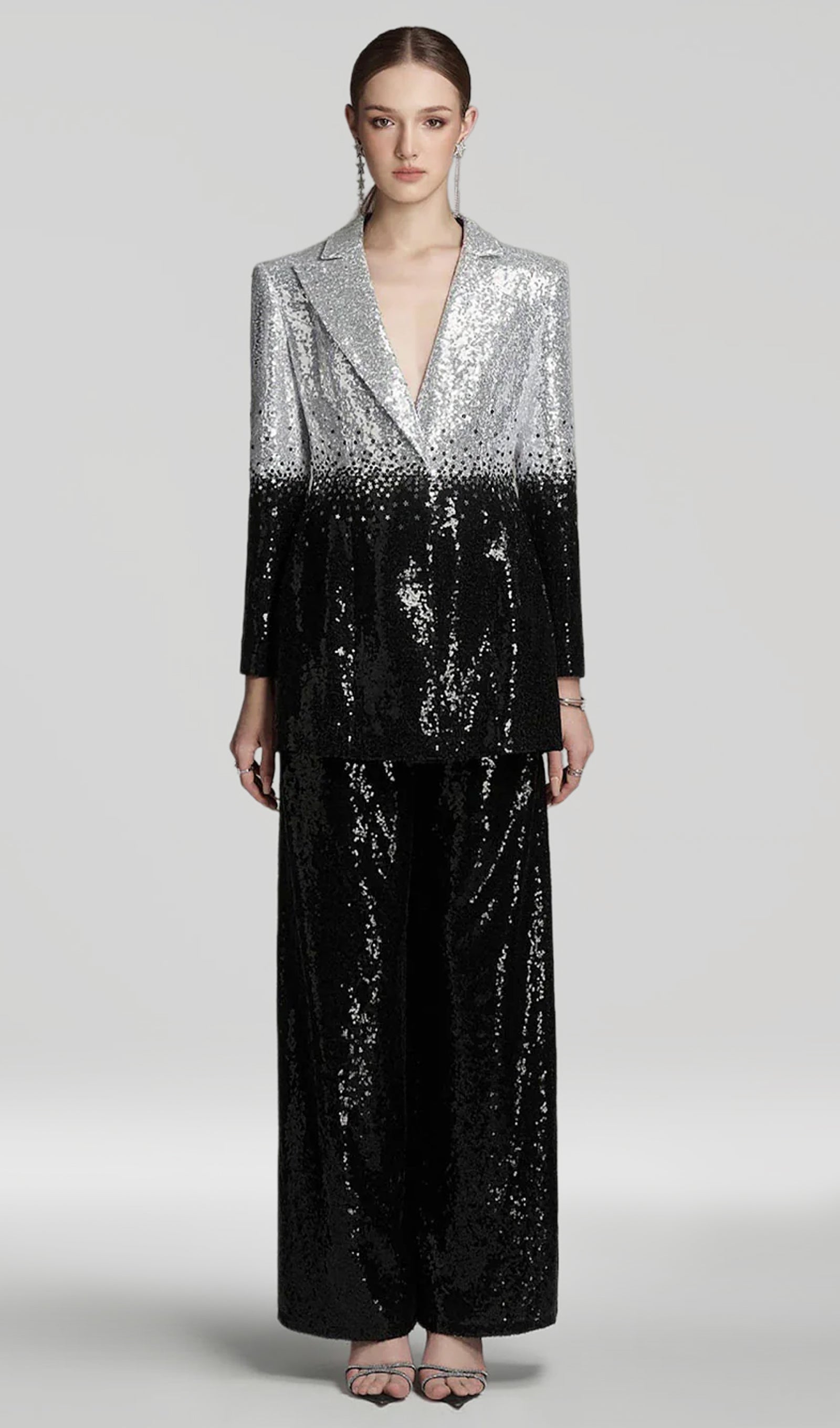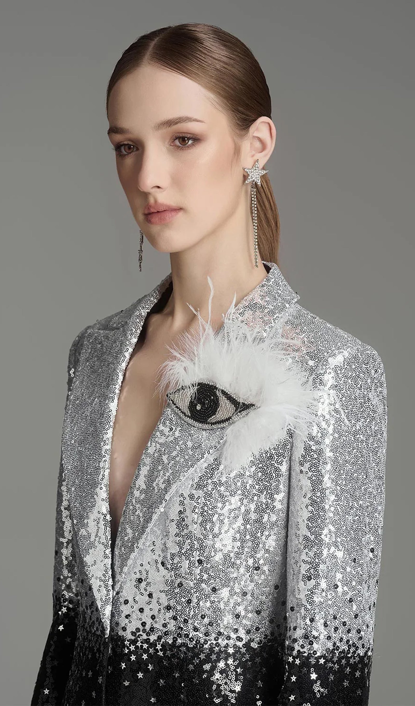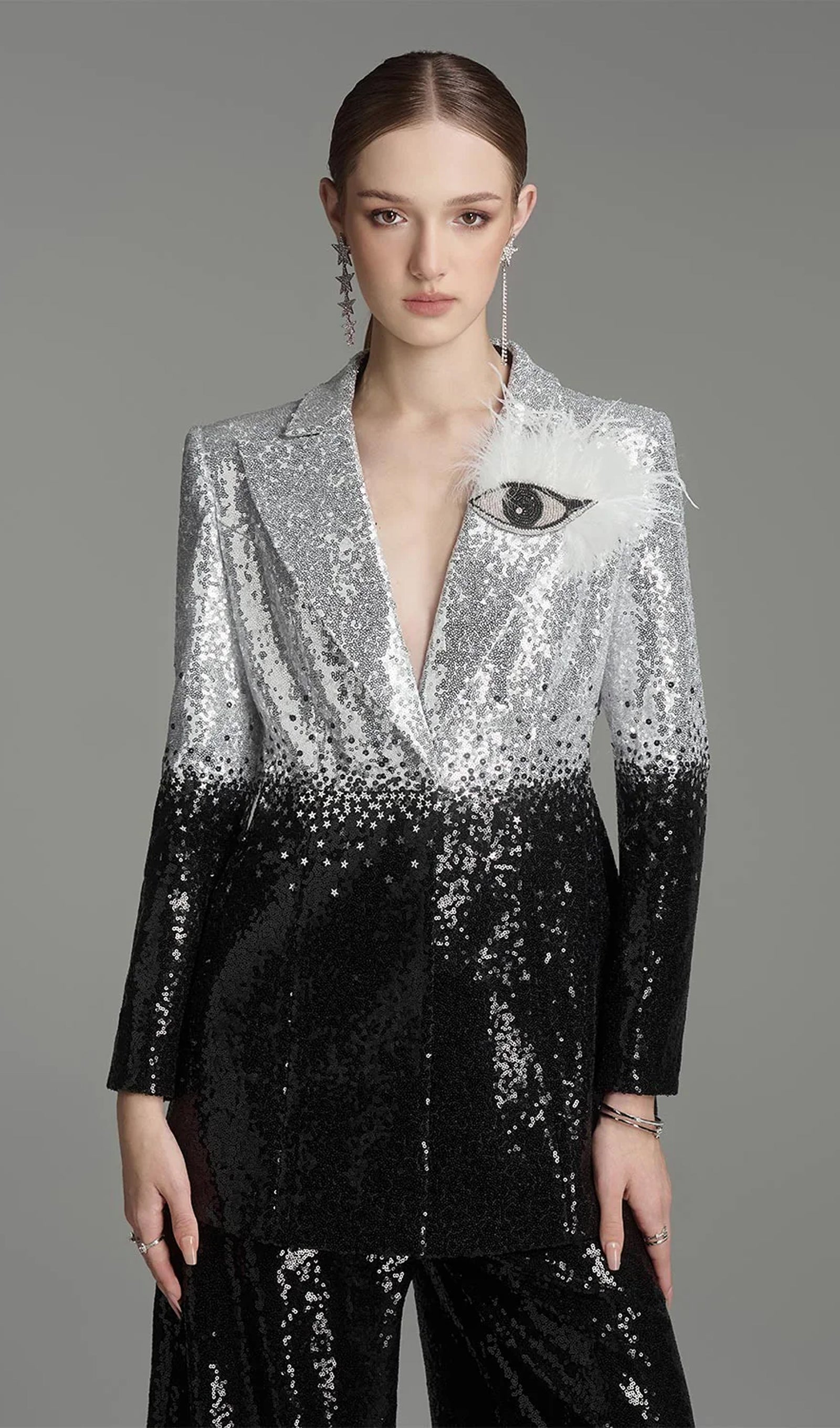 Kogege elegantsi ja glamuurset puudutust meie oskuslikult valmistatud struktureeritud komplektiga. Sädelevaid ja tülli aktsente sisaldav disain tõstab iga riietuse taset, olles ideaalne lisa teie garderoobile.