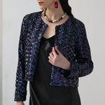 Avasta stiilne must kraeta jakk, mis tantsib keerukalt ja kiirgab rõivaste meloodiaid. Varustatud kaunistusnurkade ja sametise voodriga, see jakk on ideaalne valik igaks sündmuseks!