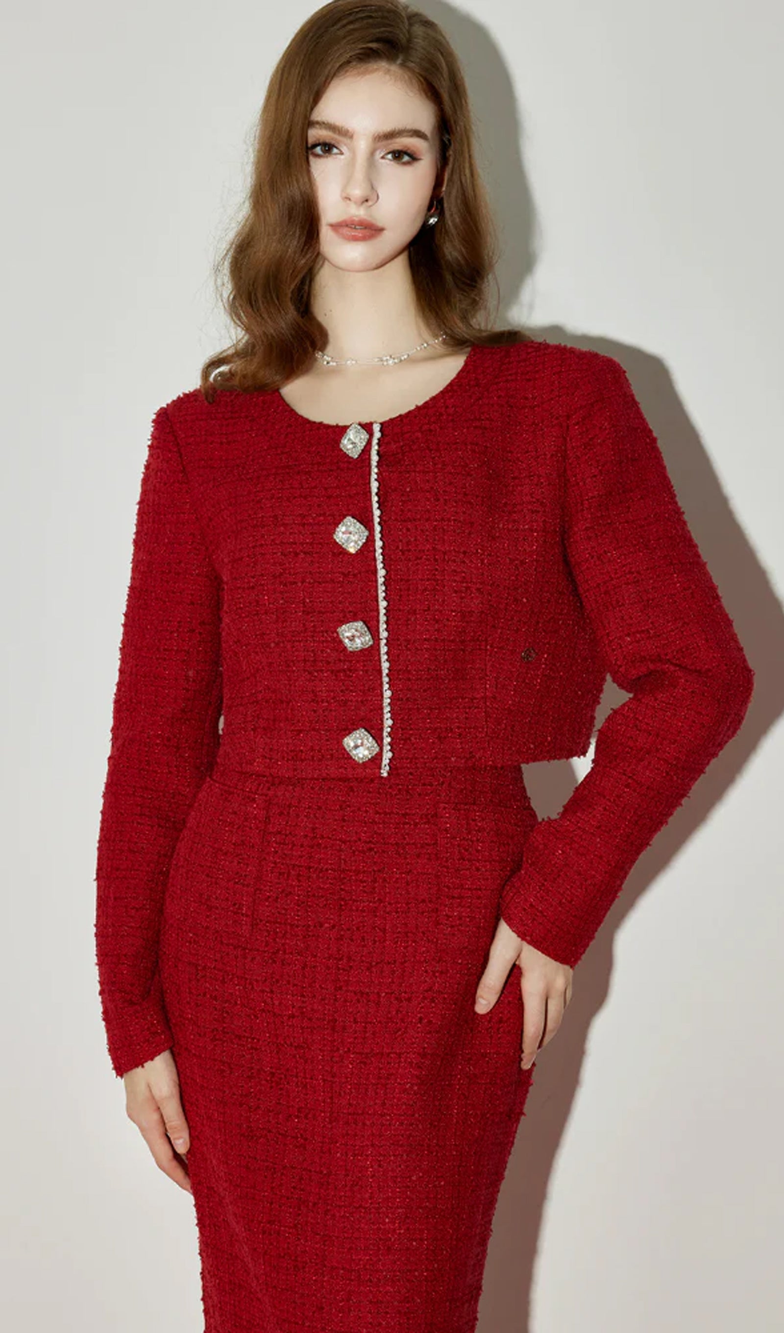 Discover elegance with our off-shoulder knot neckline design, perfect for a stylish layered look. The split maxi skirt accentuates your body proportions while adding a touch of refinement. Enjoy comfort with the zipper back design and a non-slip inner band for stability. Delicate pearlweed stripes add a subtle flair to your ensemble.