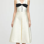 Käteta V-kaelusega lipsu midi kleit valges