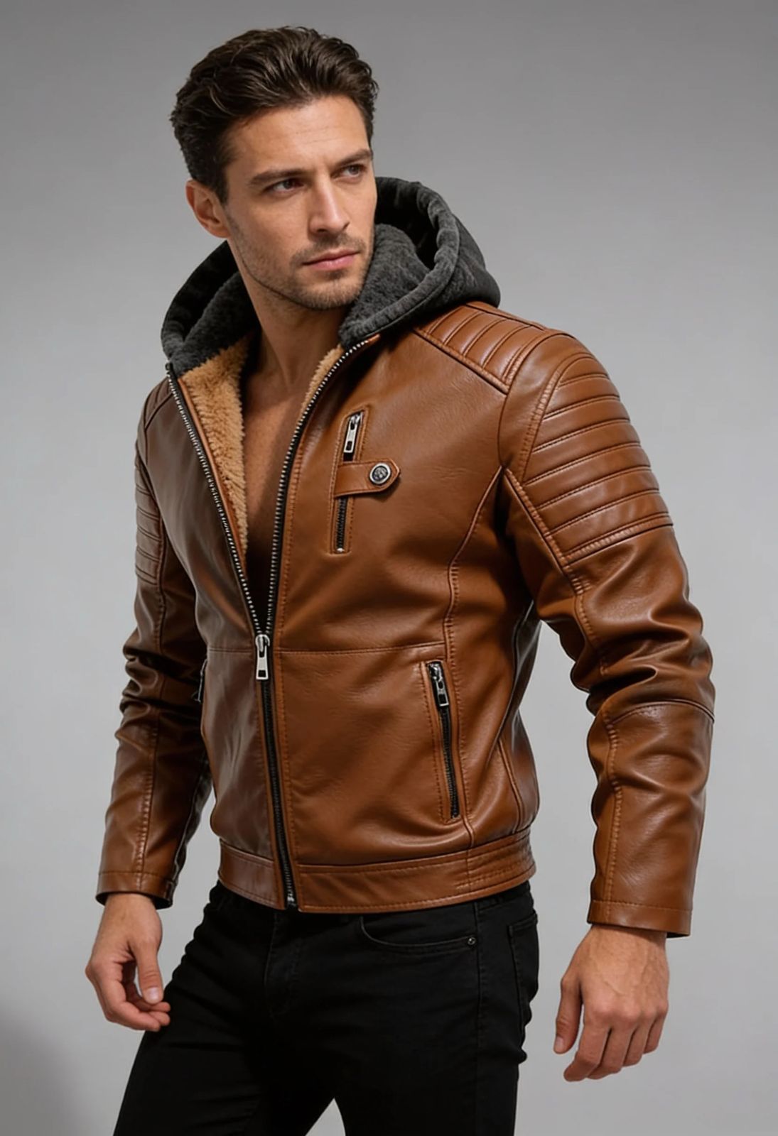 Matej – Nahkjakker kapuutsiga ja voodriga