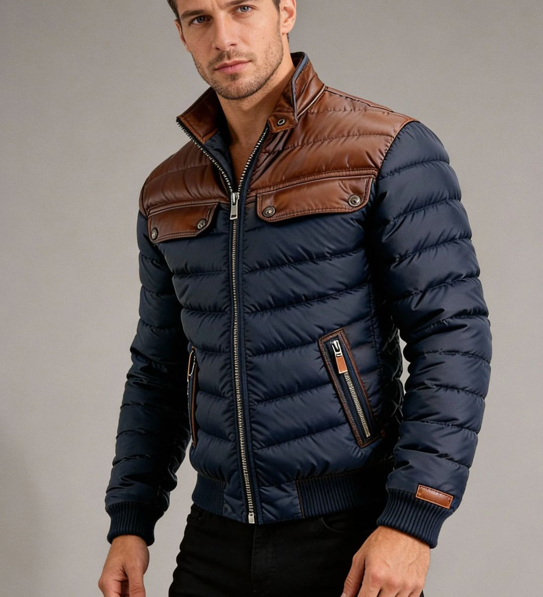 Marko – Prožeen sinine jakk nahkdetailidega