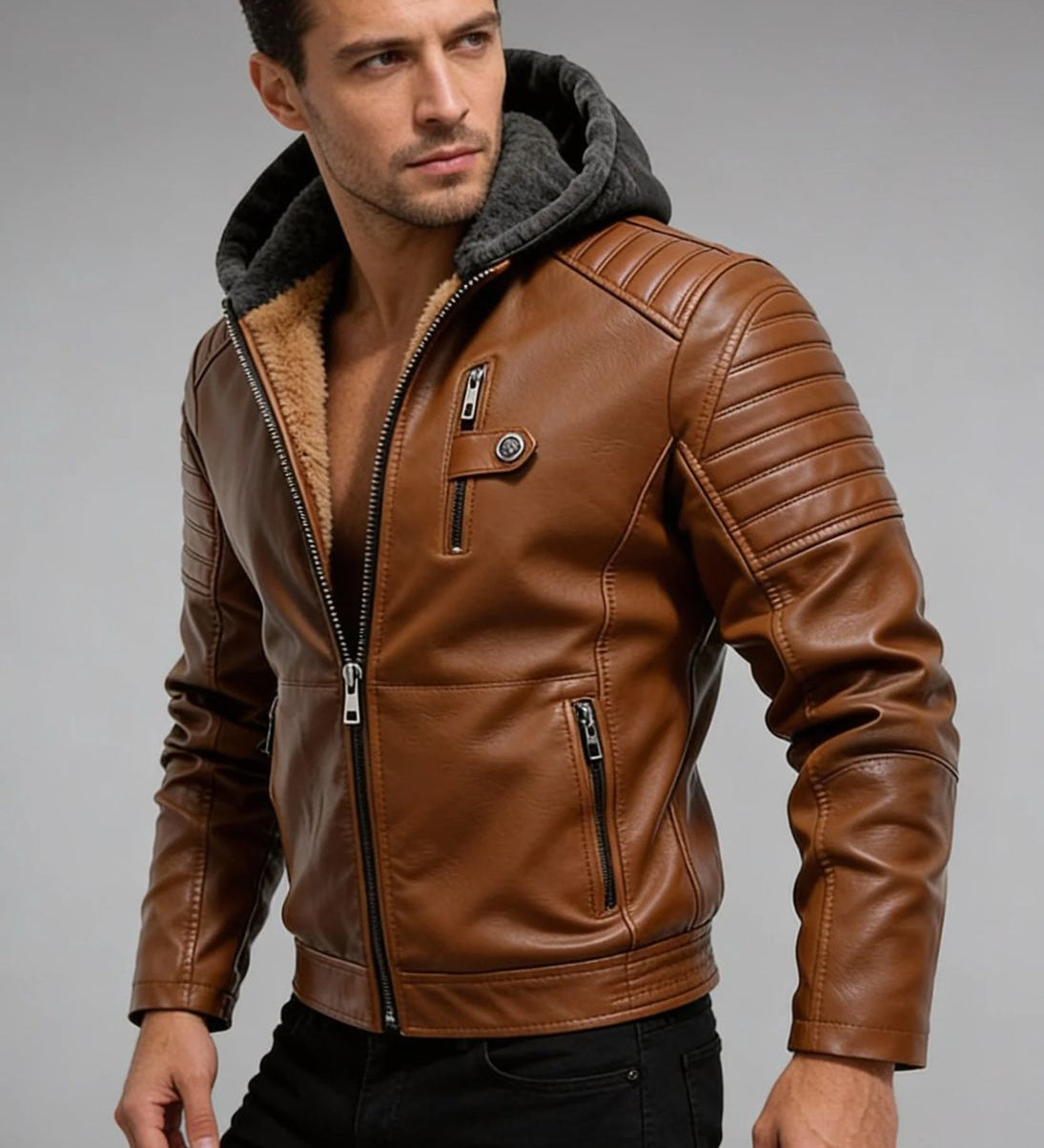 Matej – Nahkjakker kapuutsiga ja voodriga