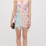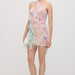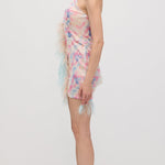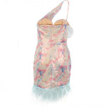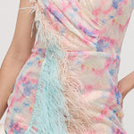 Disainere Asümmeetriline Mini Kleit Sulgedega