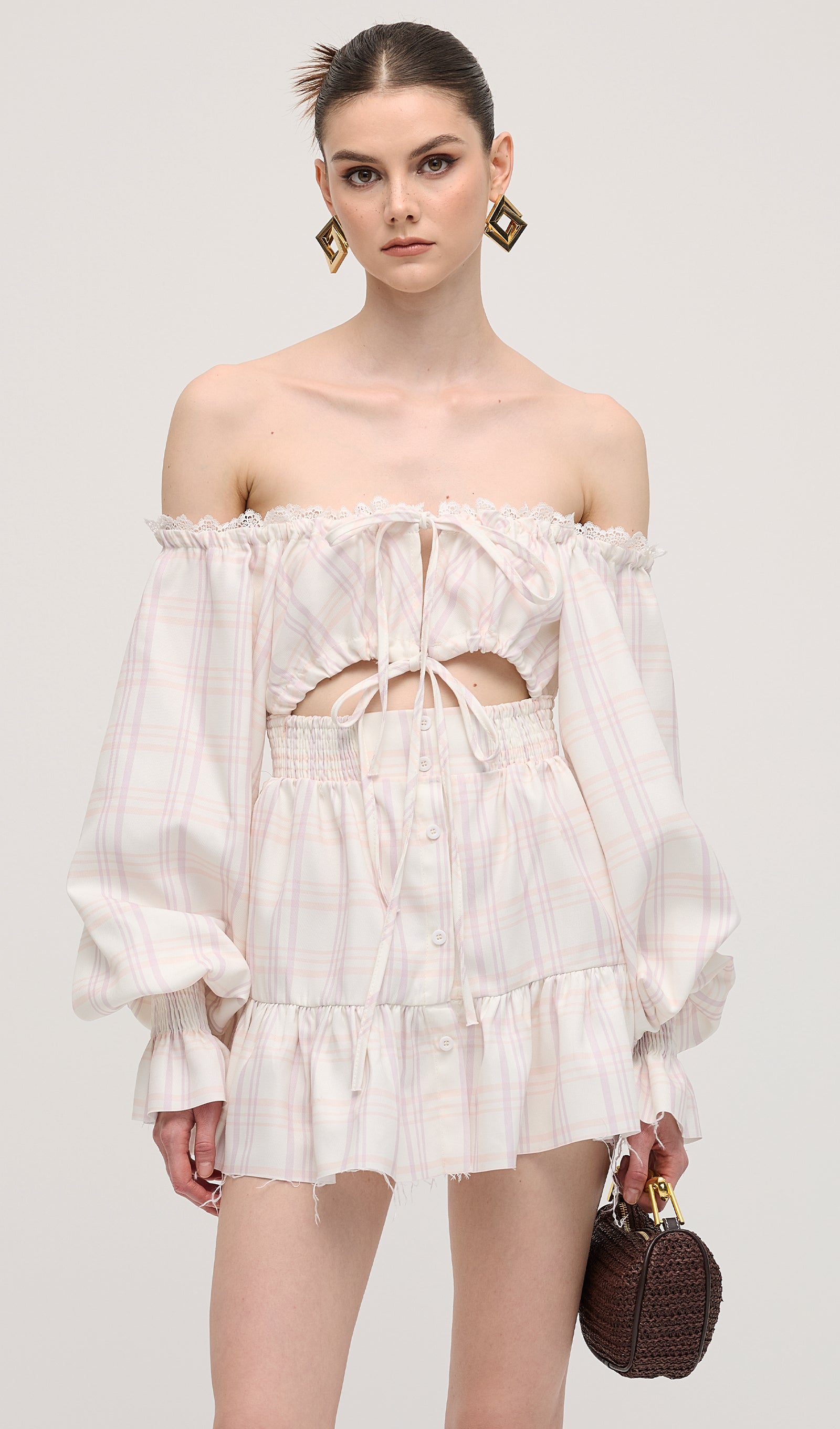 Lace-Up Mini Dress with Two-Piece Checkered Set