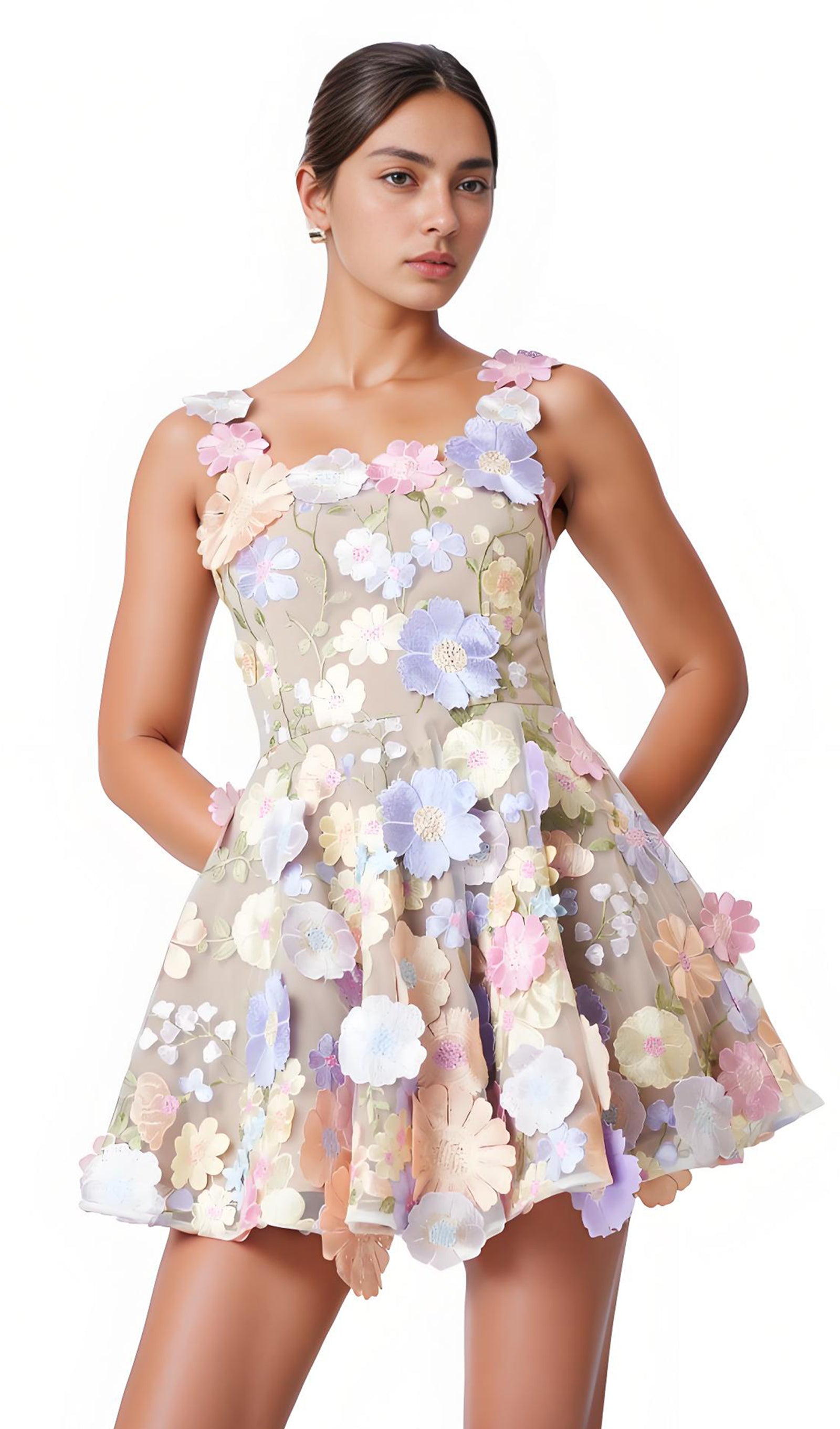 Astuge tähelepanu keskpunkti meie lummava mini kleidiga pastellsetes värvides. See kleit on elegantsi ja võlu ideaalne kombinatsioon, mis tõmbab kindlasti pilke. Erakordne lilleline pits ja kaunid 3D pitslilled kaela ümber lisavad teie riietusele mängulisust ja romantikat. Ole valmis saama komplimente!