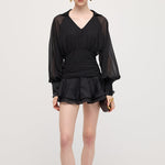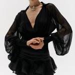 Must Klassikaline Mini Kleit Laternvarrukatega