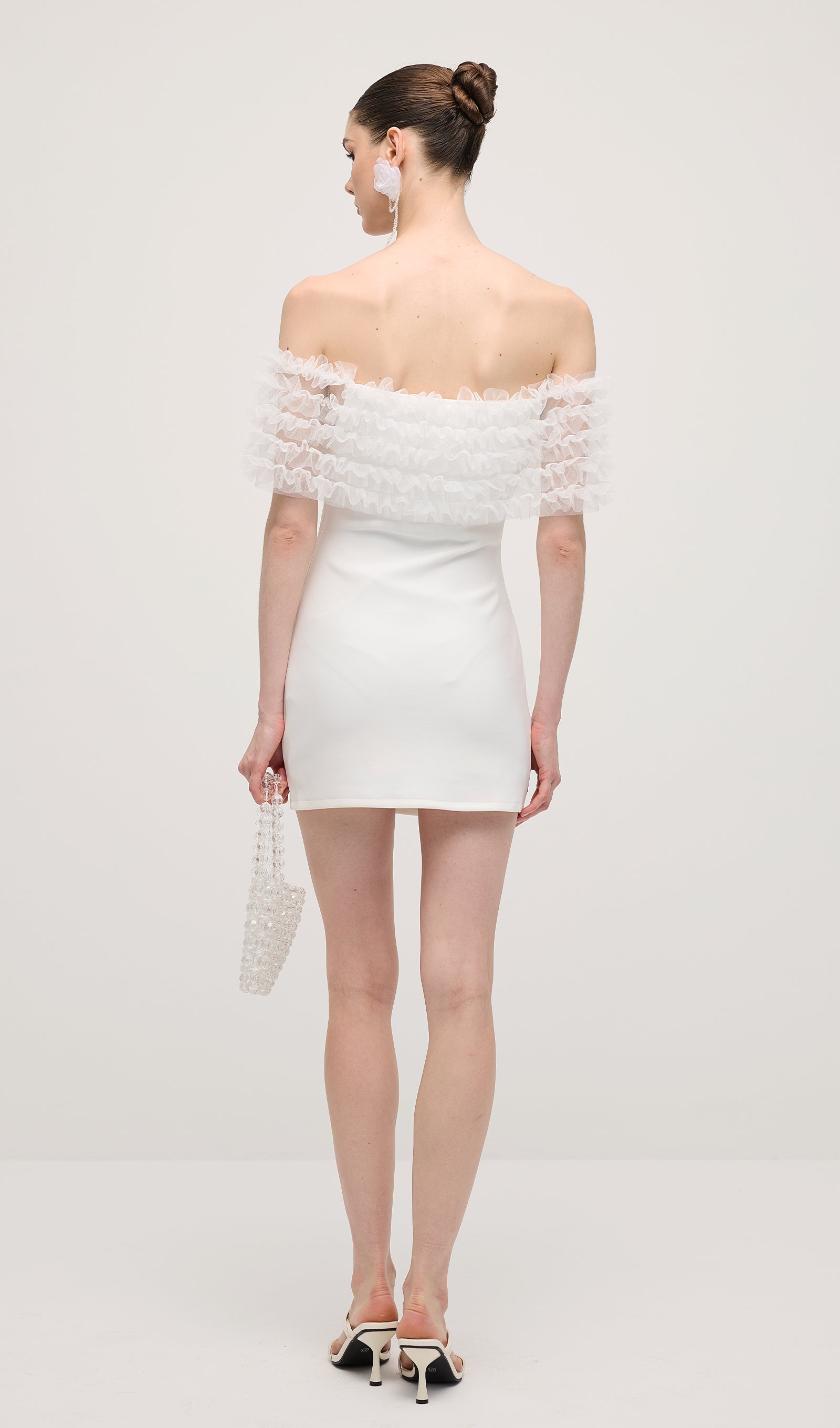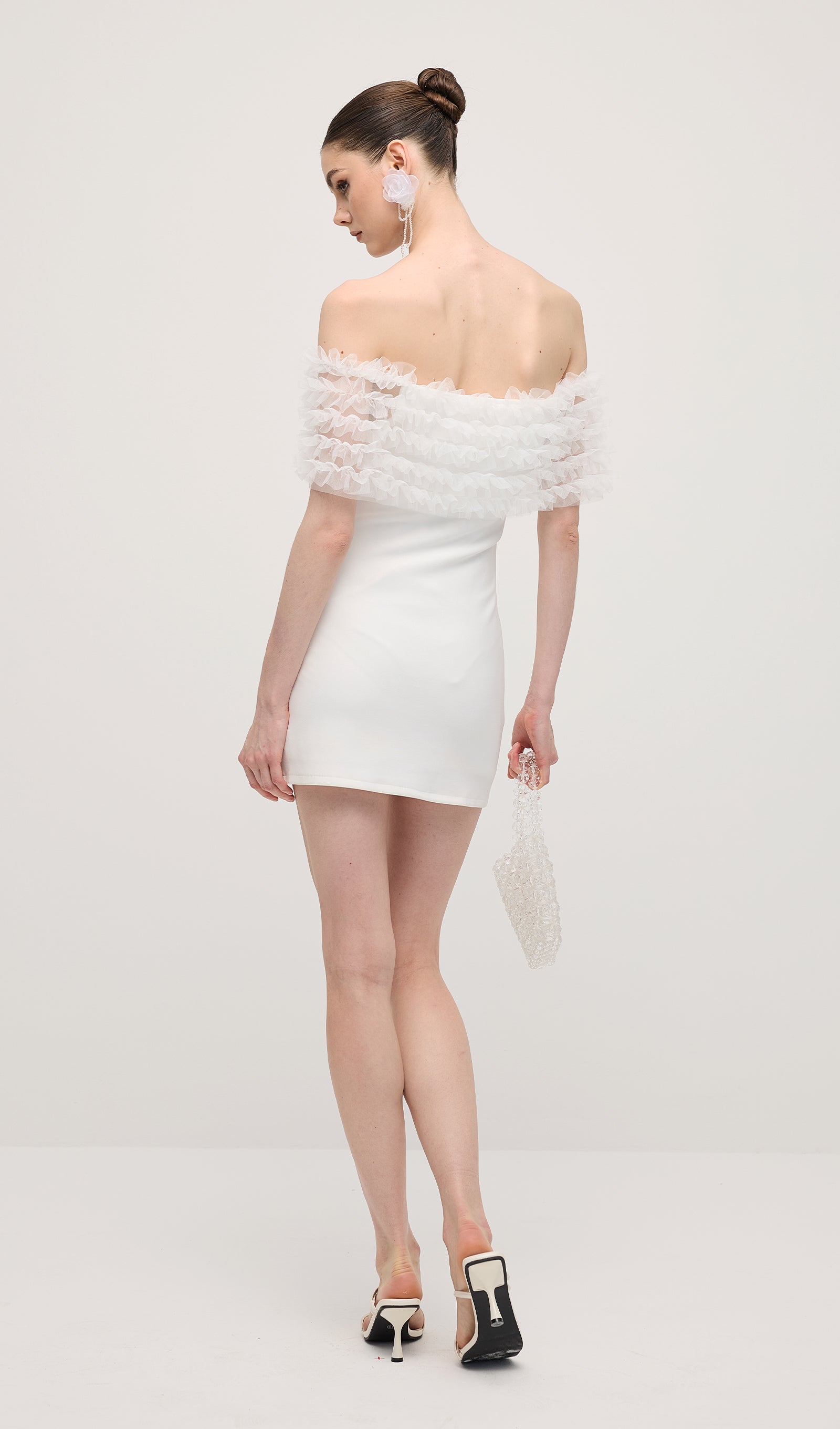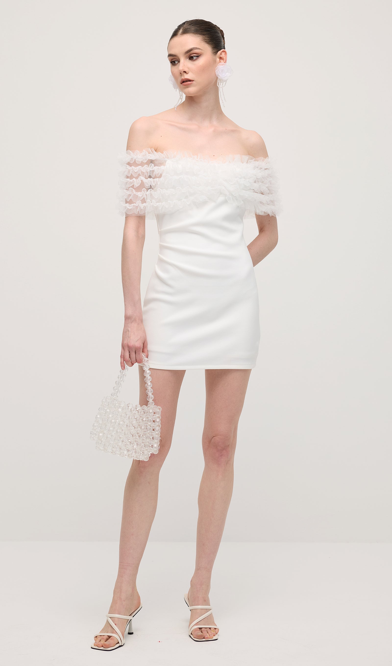 Avasta oma stiil õlavarrelt väljaulatuva lillelise tülli mini kleidiga, mis ühendab õrna lilleline tikandi ja kergelt tüllkangaga, luues elegantse ja õhulise välimuse. Selle disain rõhutab kaelust, samas kui mini pikkus lisab nooruslikku ja modernset puudutust. Ideaalne erilisteks sündmusteks, see kleit pakub nii stiili kui ka mugavust, olles rafineeritud valik neile, kes otsivad keerukat, kuid mängulist riietust.