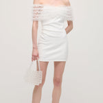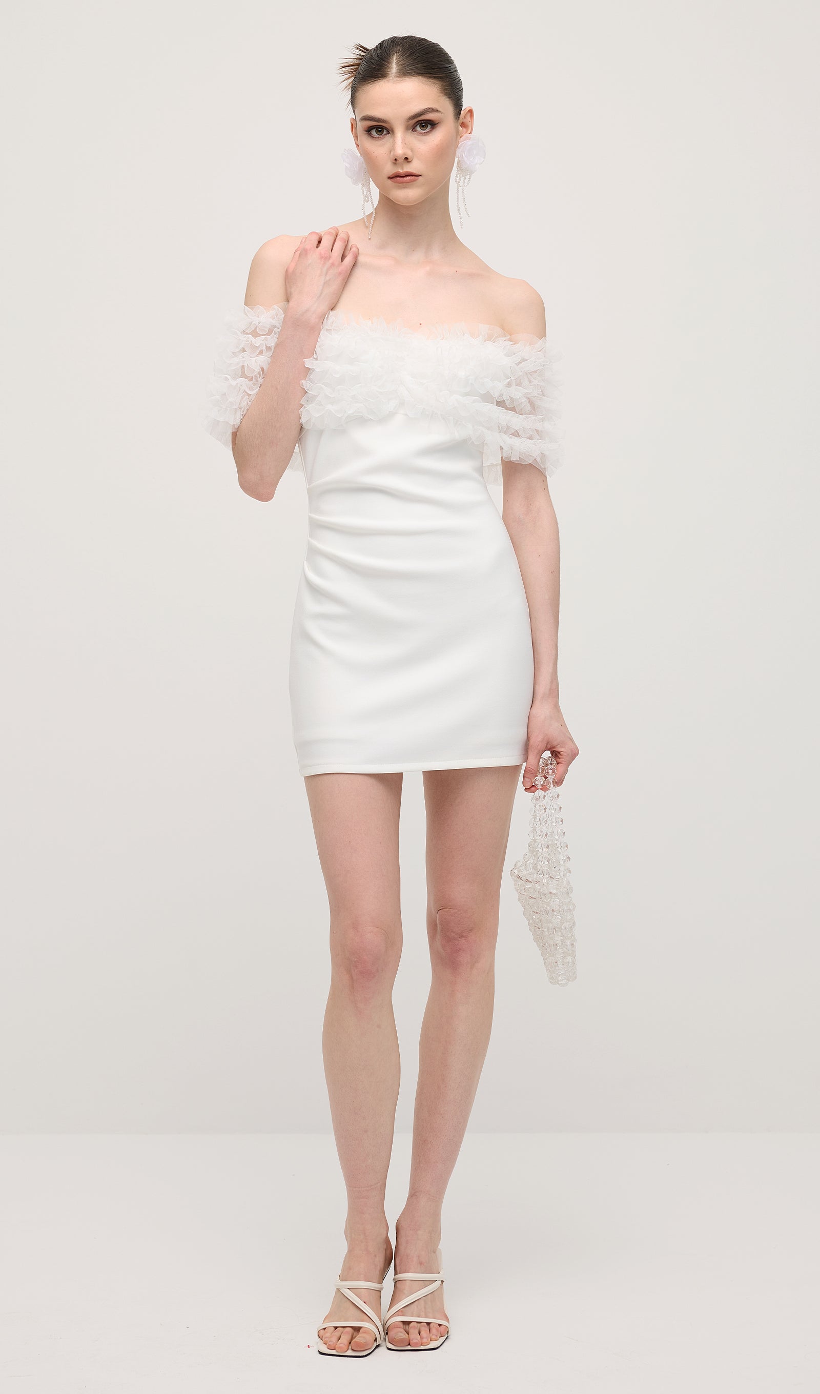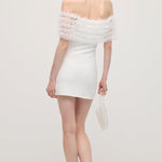 Õlavarrelt Väljaulatuv Lilleline Tülli Mini Kleid