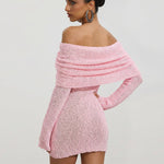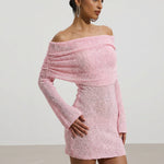 Roosa Üks Õlg Boucle Kootud Mini Kleidid