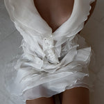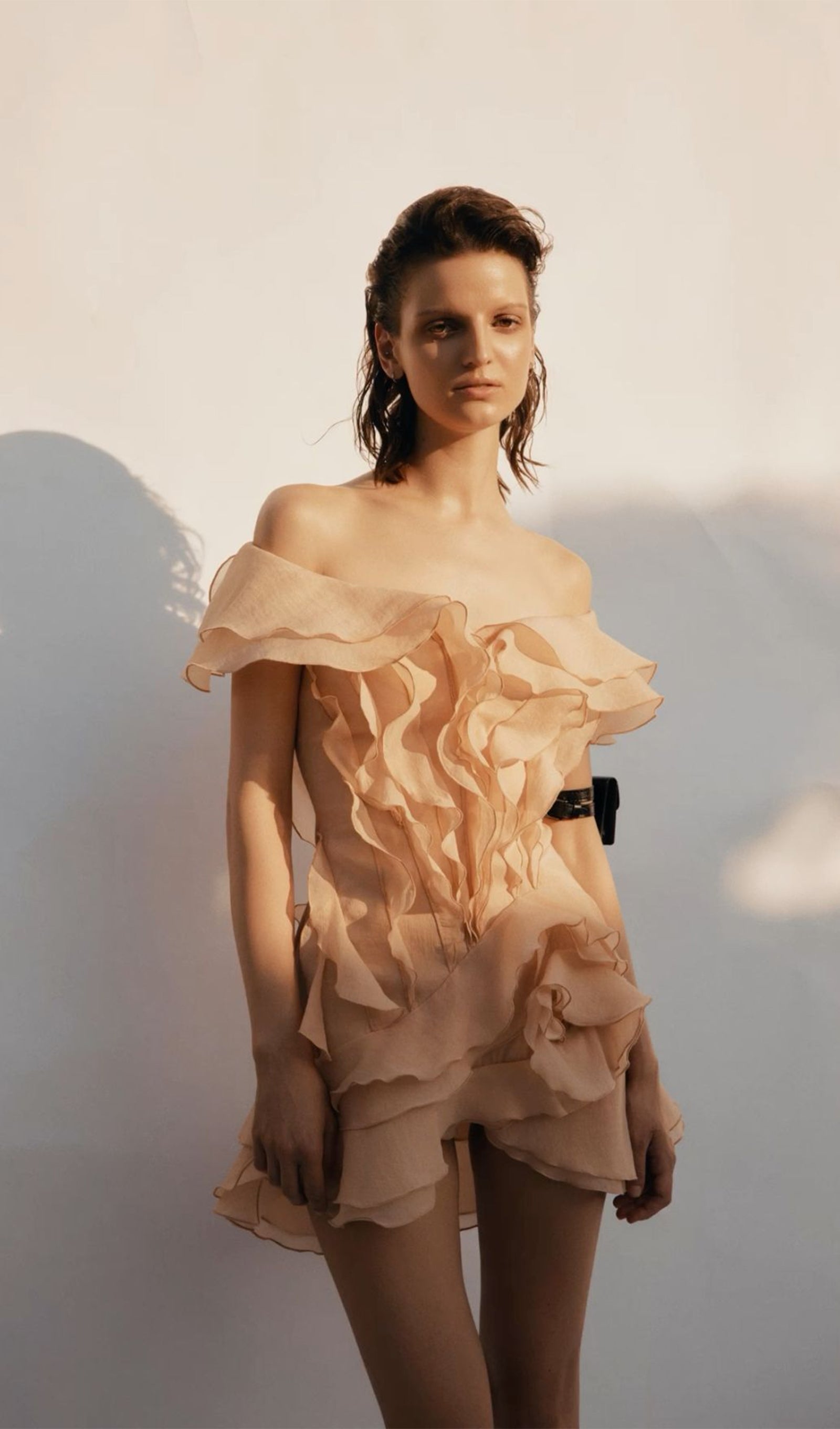 Meisterlikult valmistatud kihiliste volangidega, meie Mini Kleit kiirgab elegantsi ja mängulisust. Kerge kangas (90% puuvill, 10% polüester) tagab mugavuse, samas kui kihiline disain lisab teie riietusele mõõtmeid.