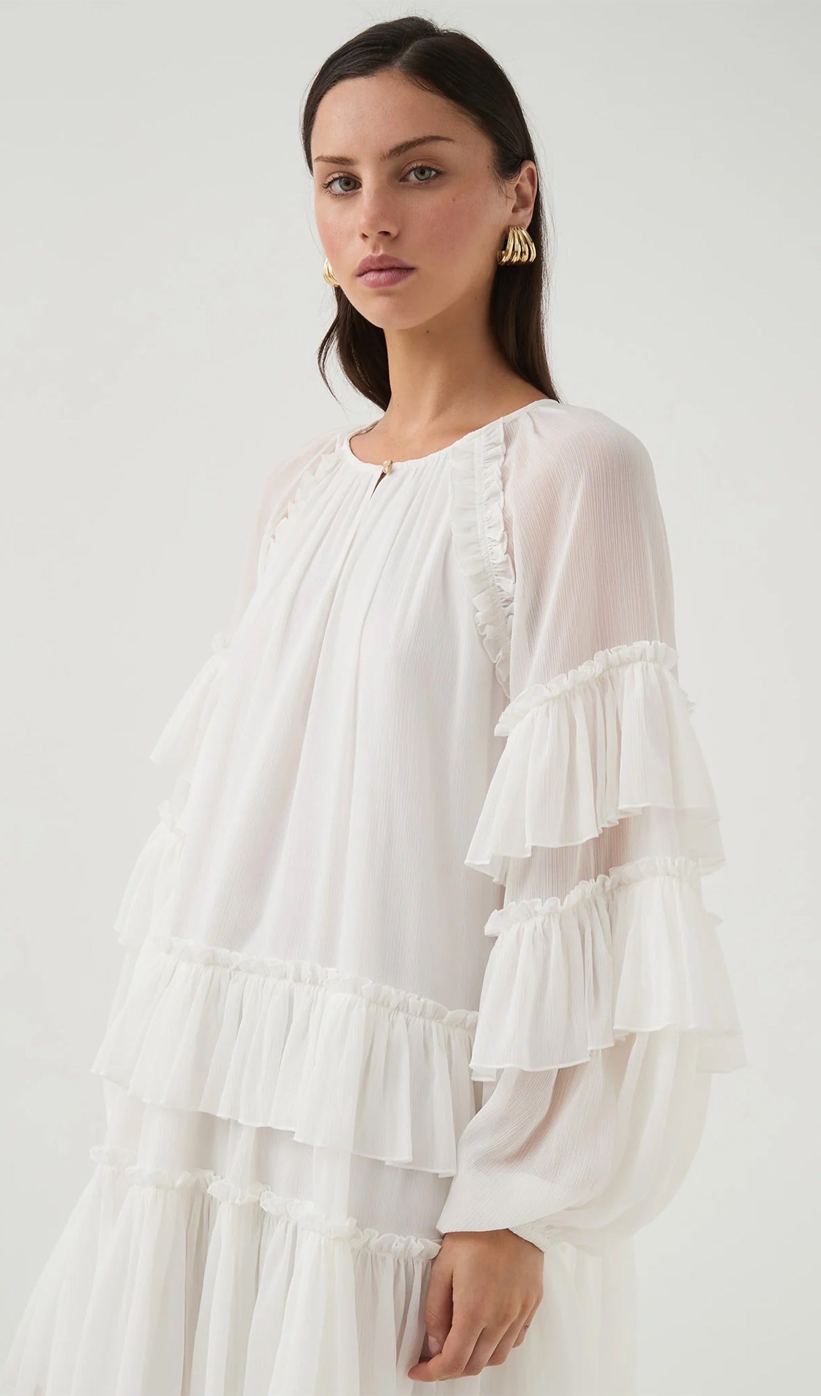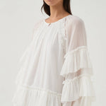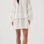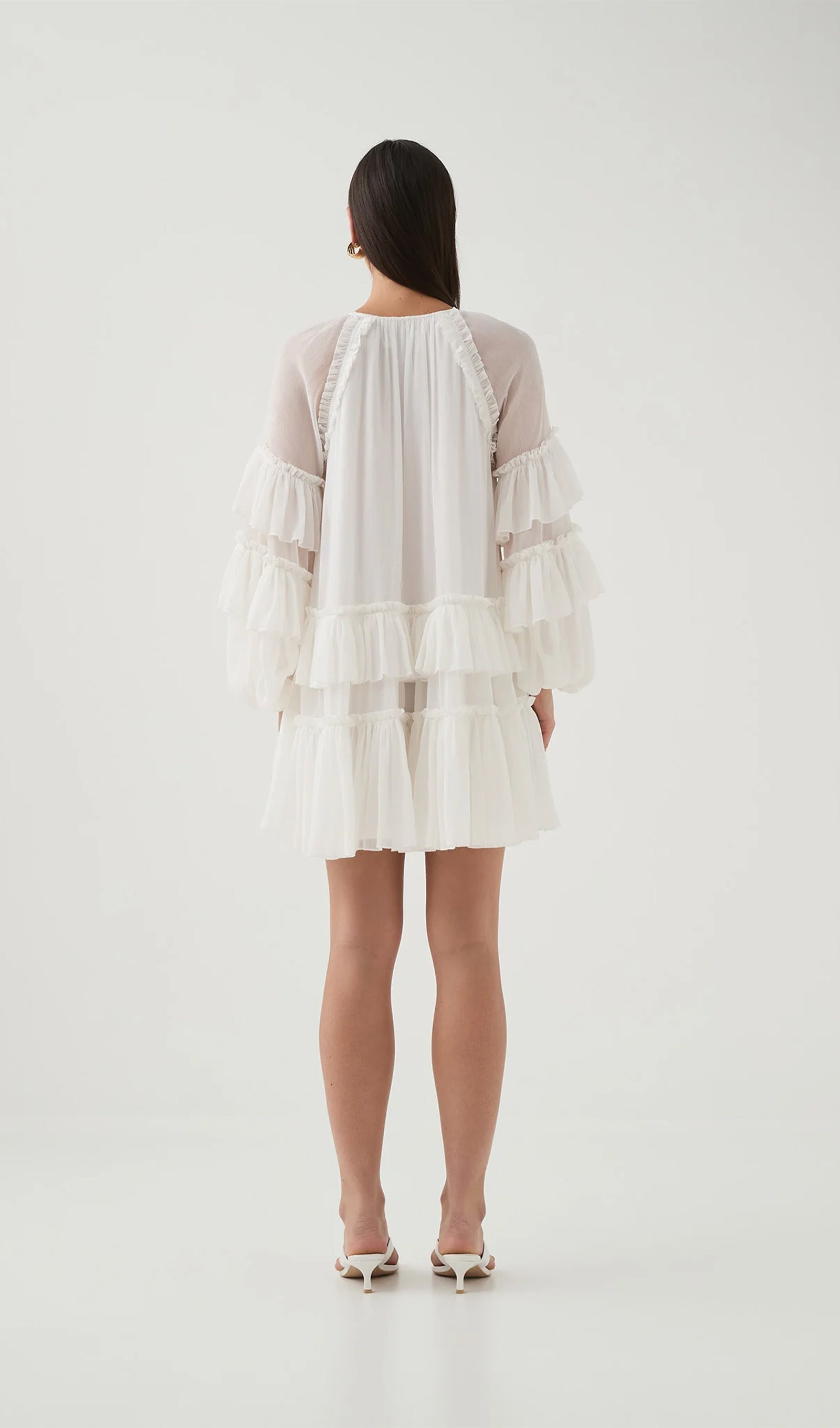 White Ruffled Tiered Puff-Sleeve Mini Dress