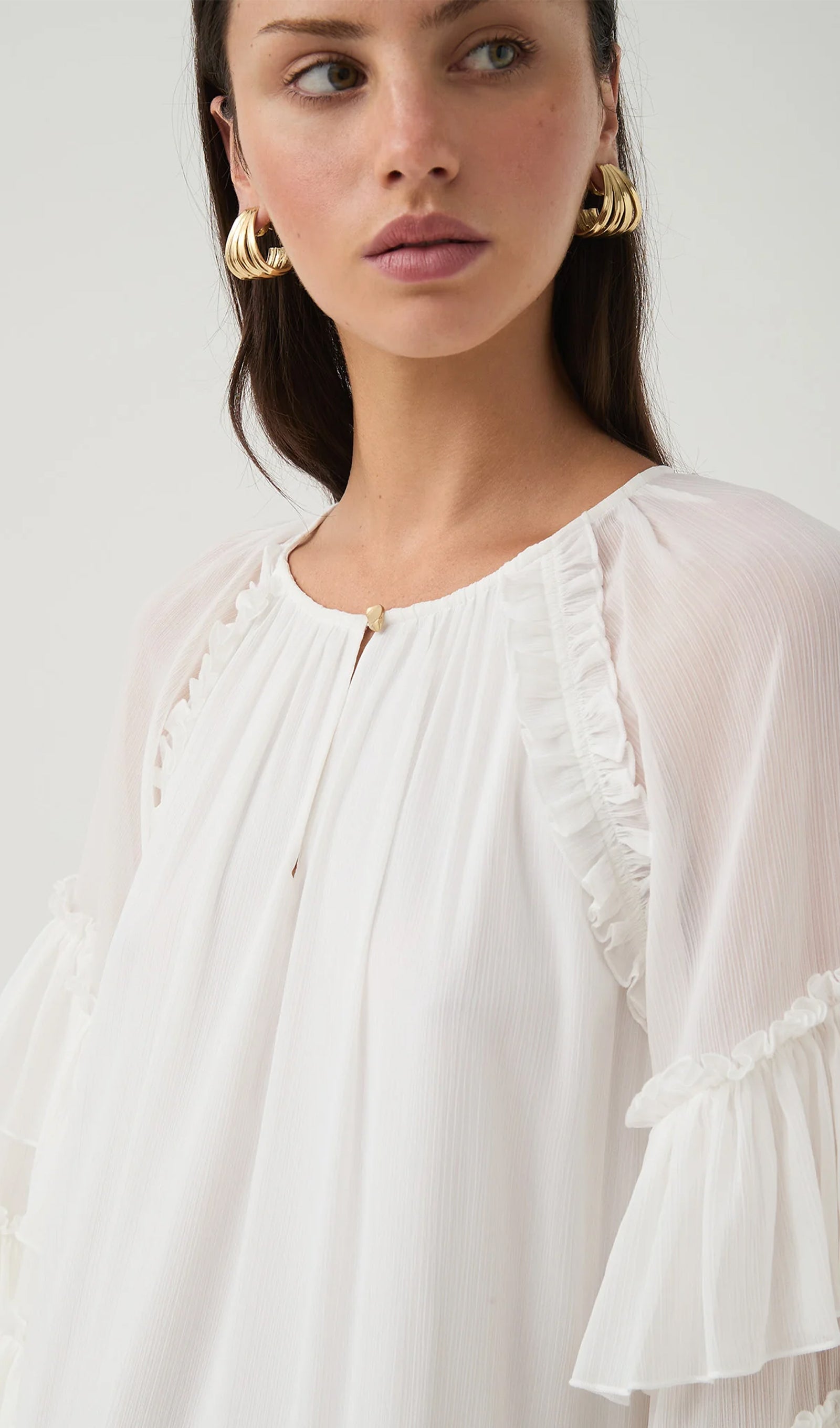 • Kihilised blouson-sleevid kogutud ruffle detailiga