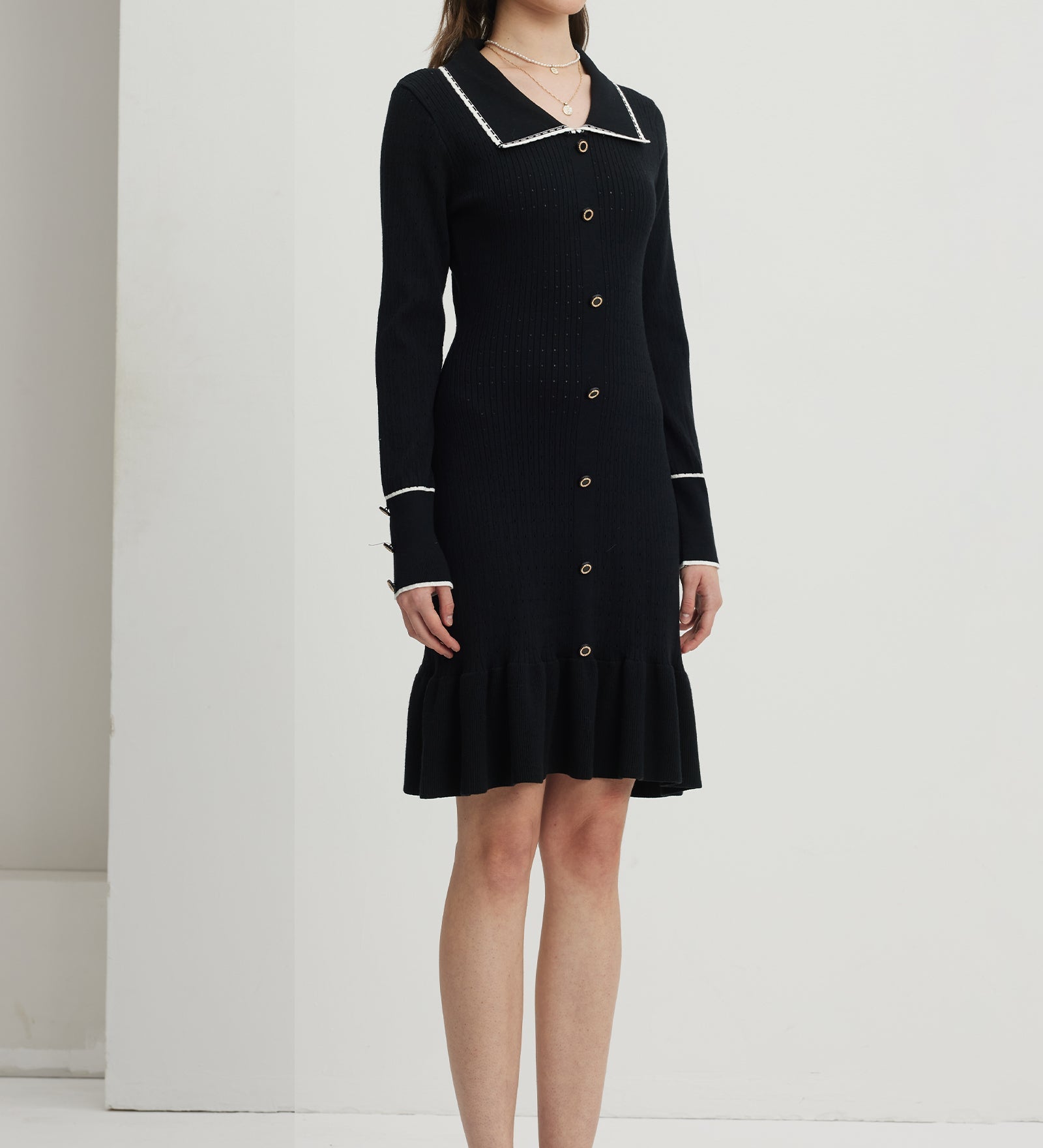 Redel Tühi Must Kootud Mini Kleit