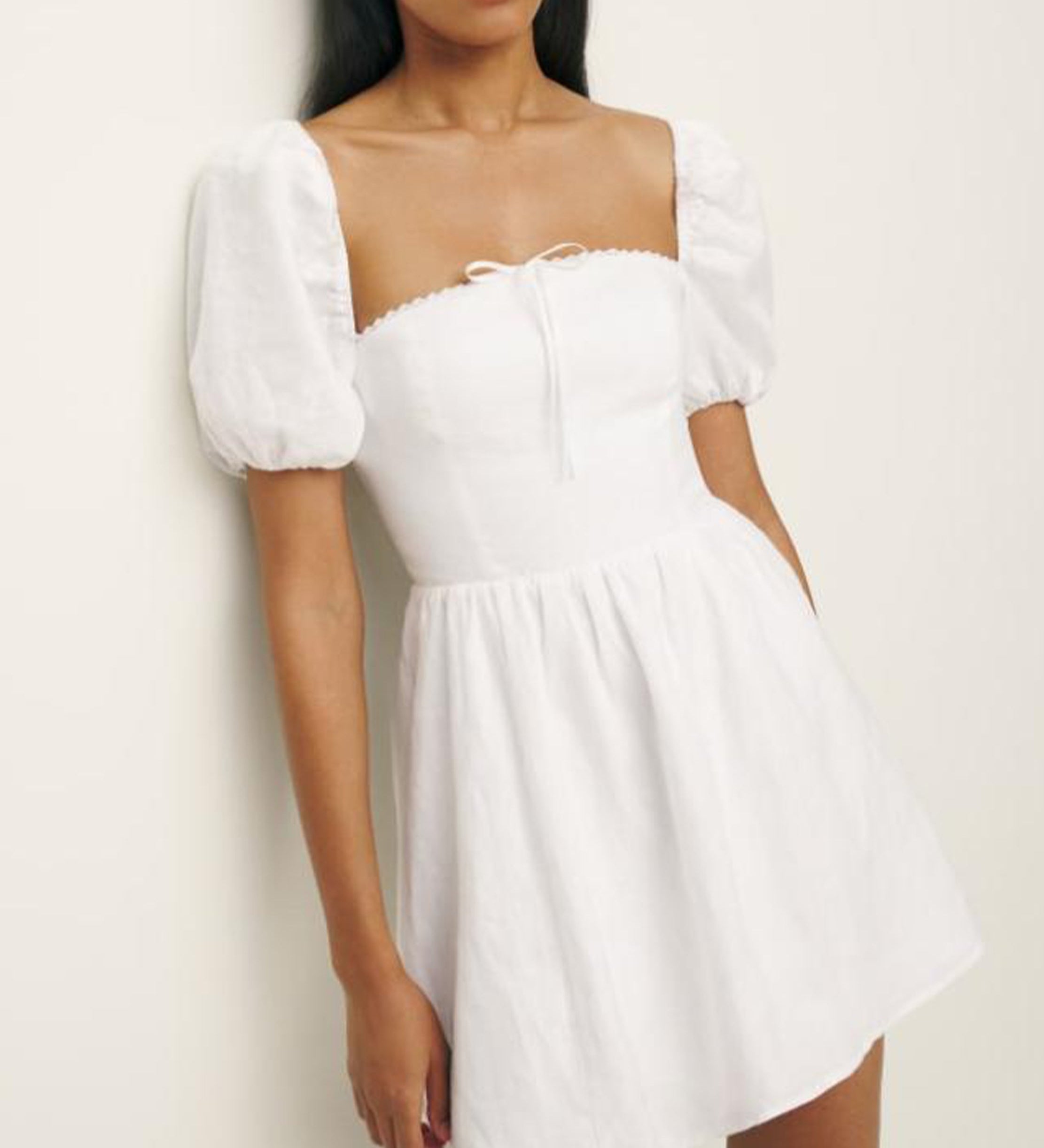 Valge Puff Varrukatega Linane Mini Kleid