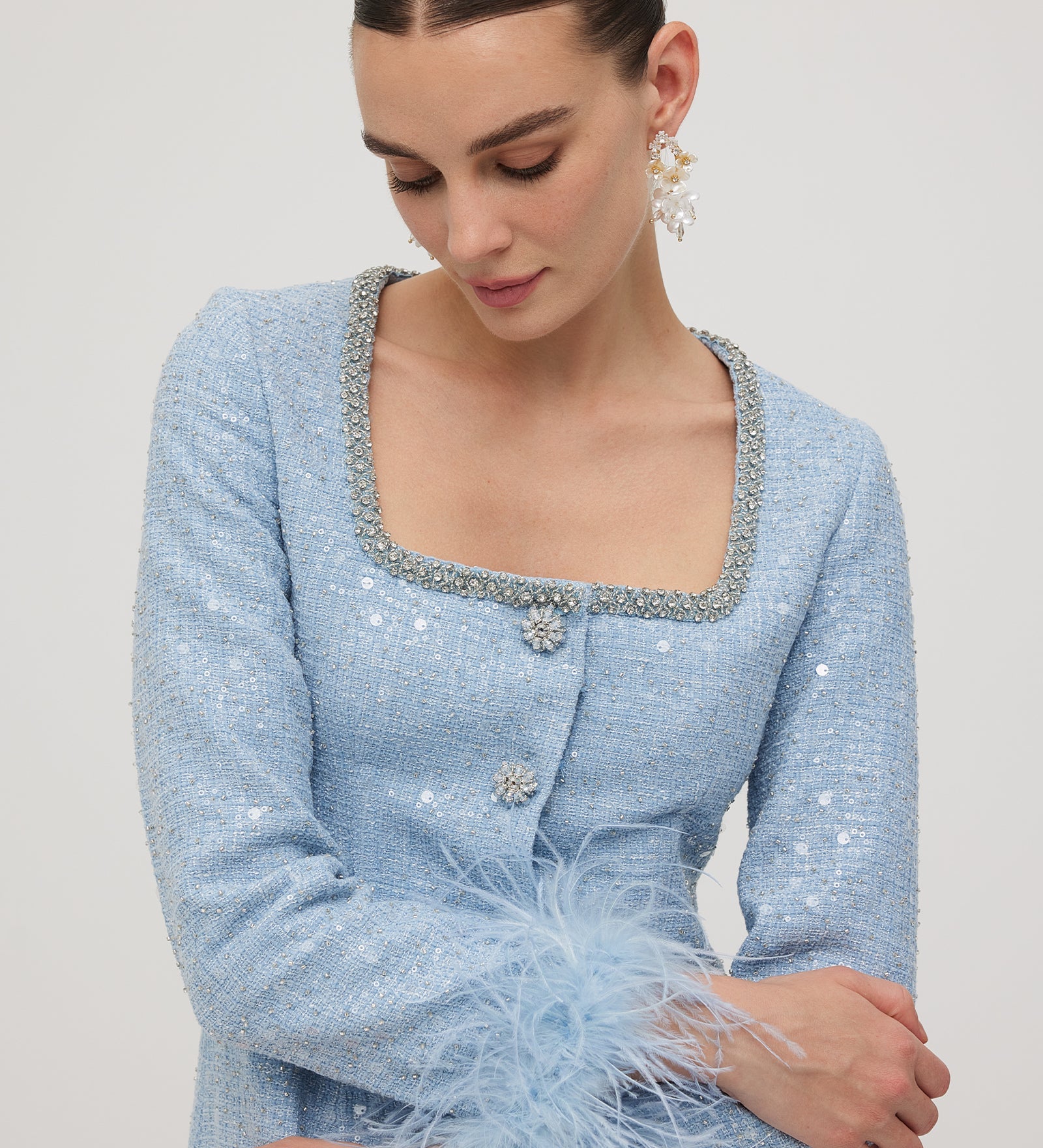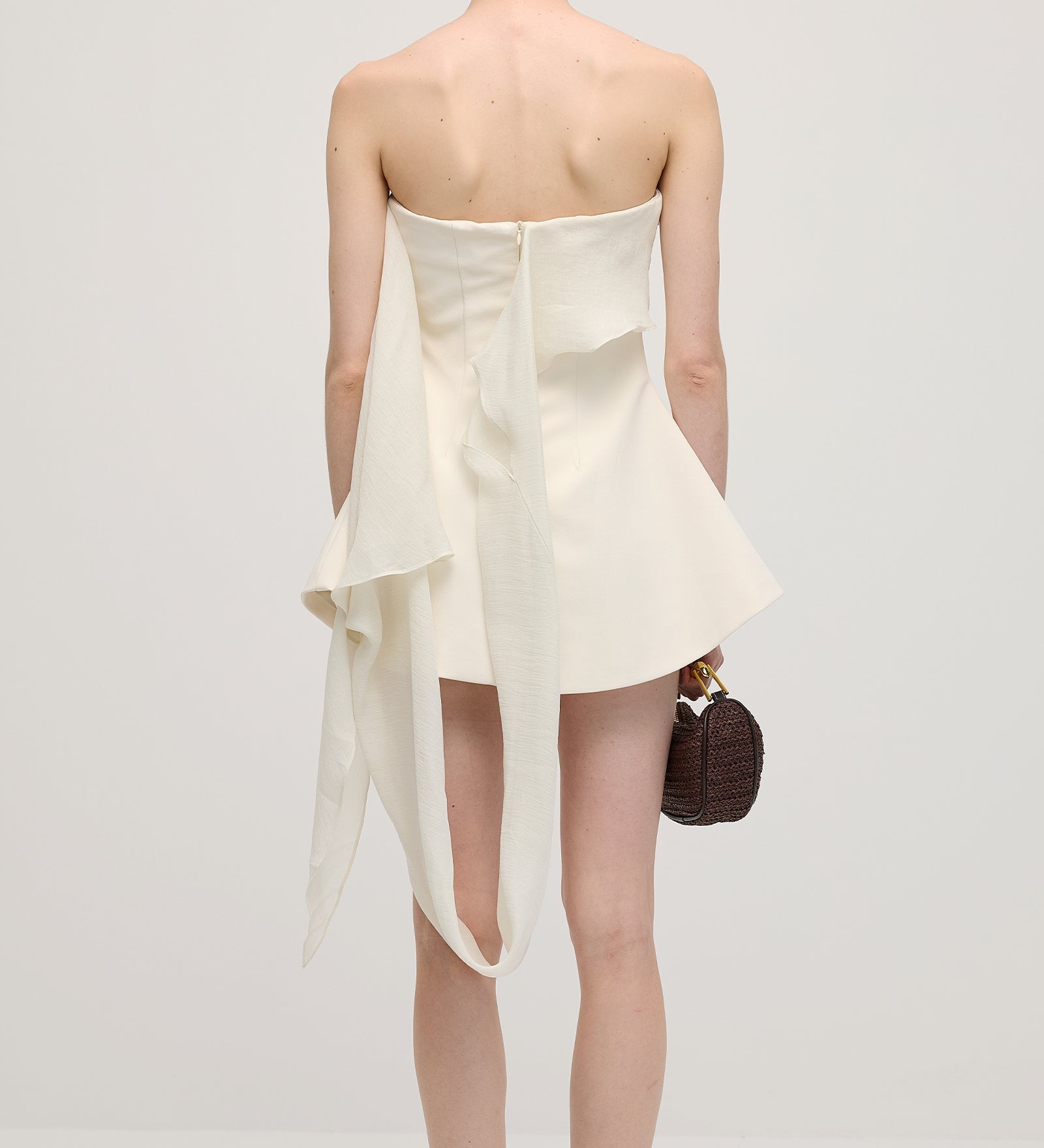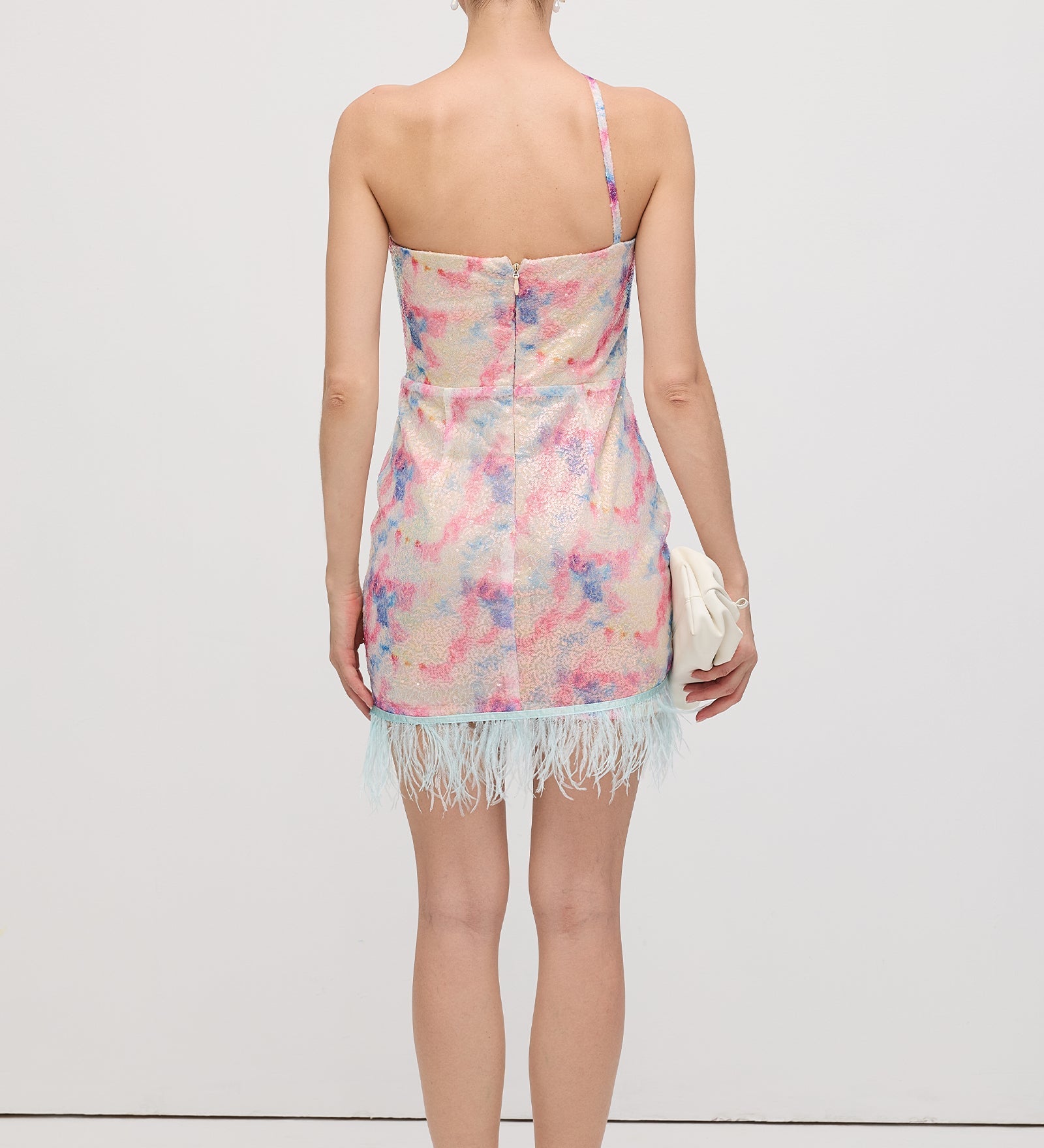 Disainere Asümmeetriline Mini Kleit Sulgedega
