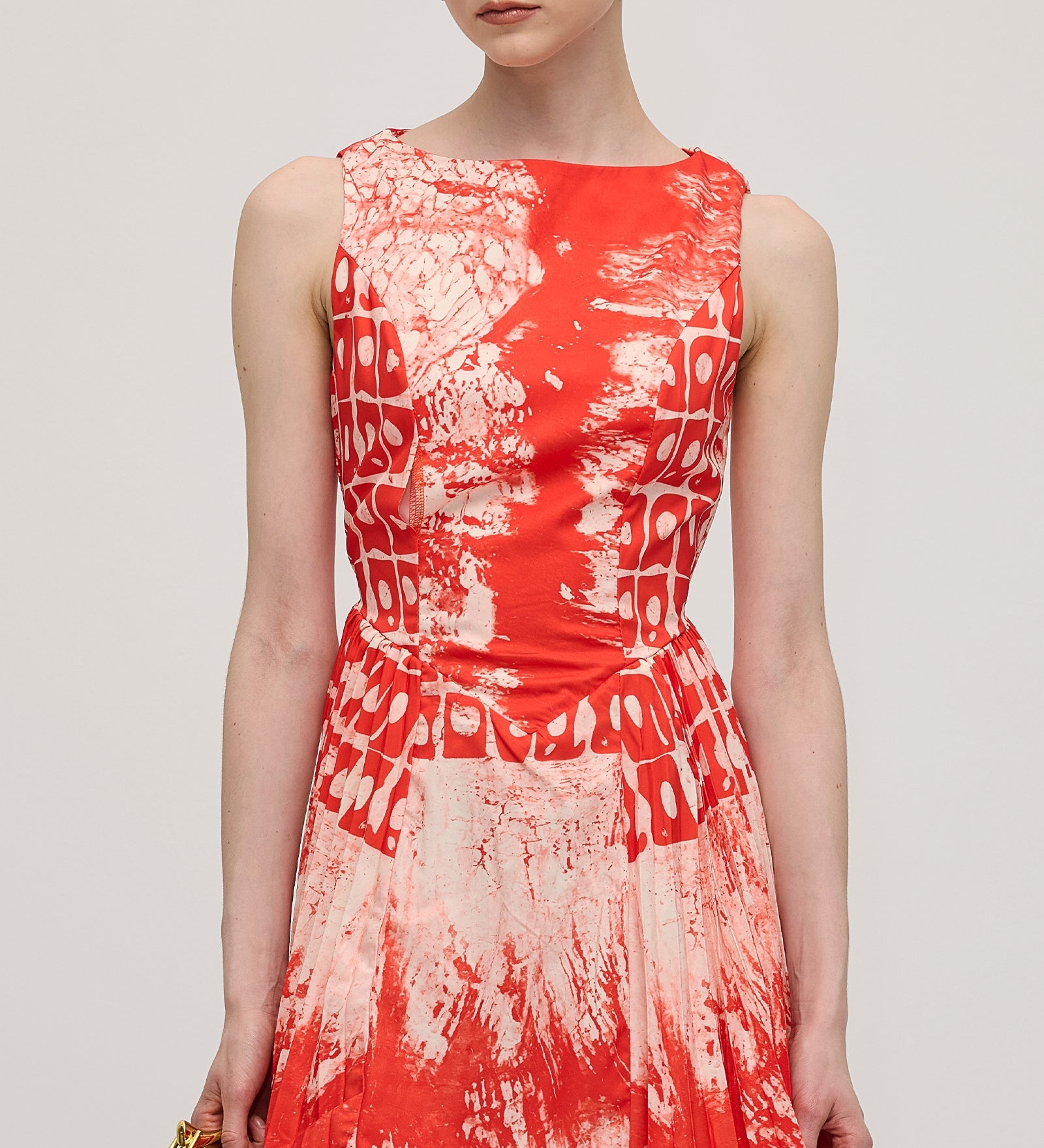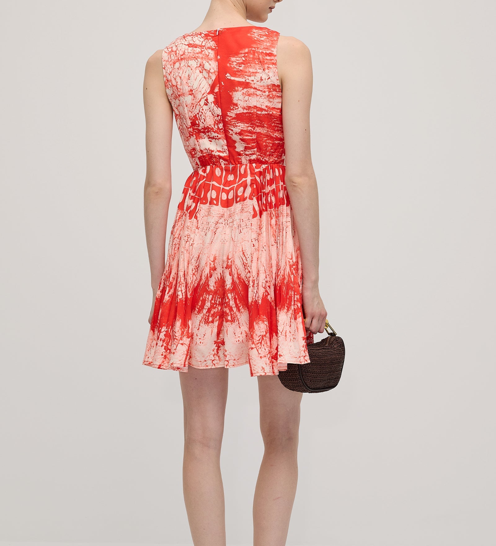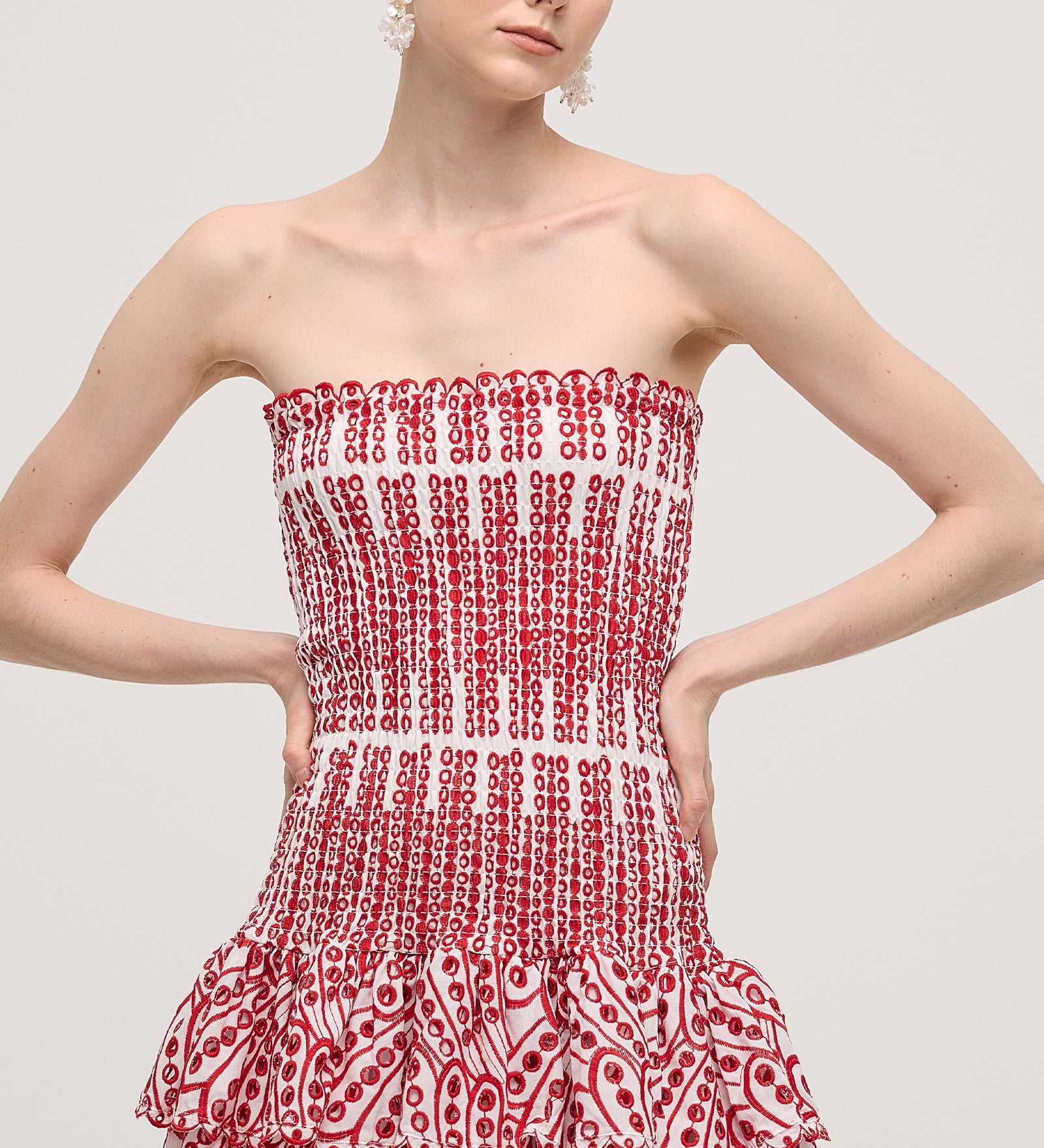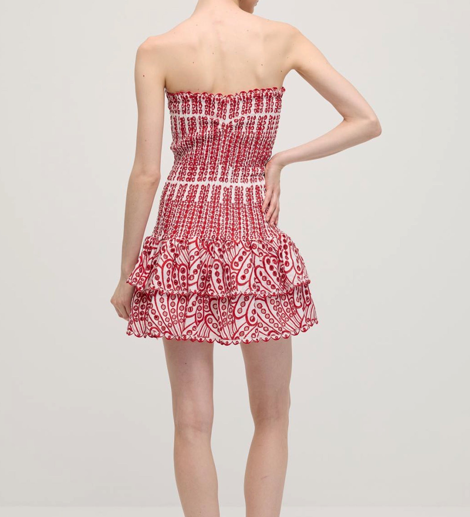 Punane Puuvillane Mini Kleit Tikkitud Silmadega