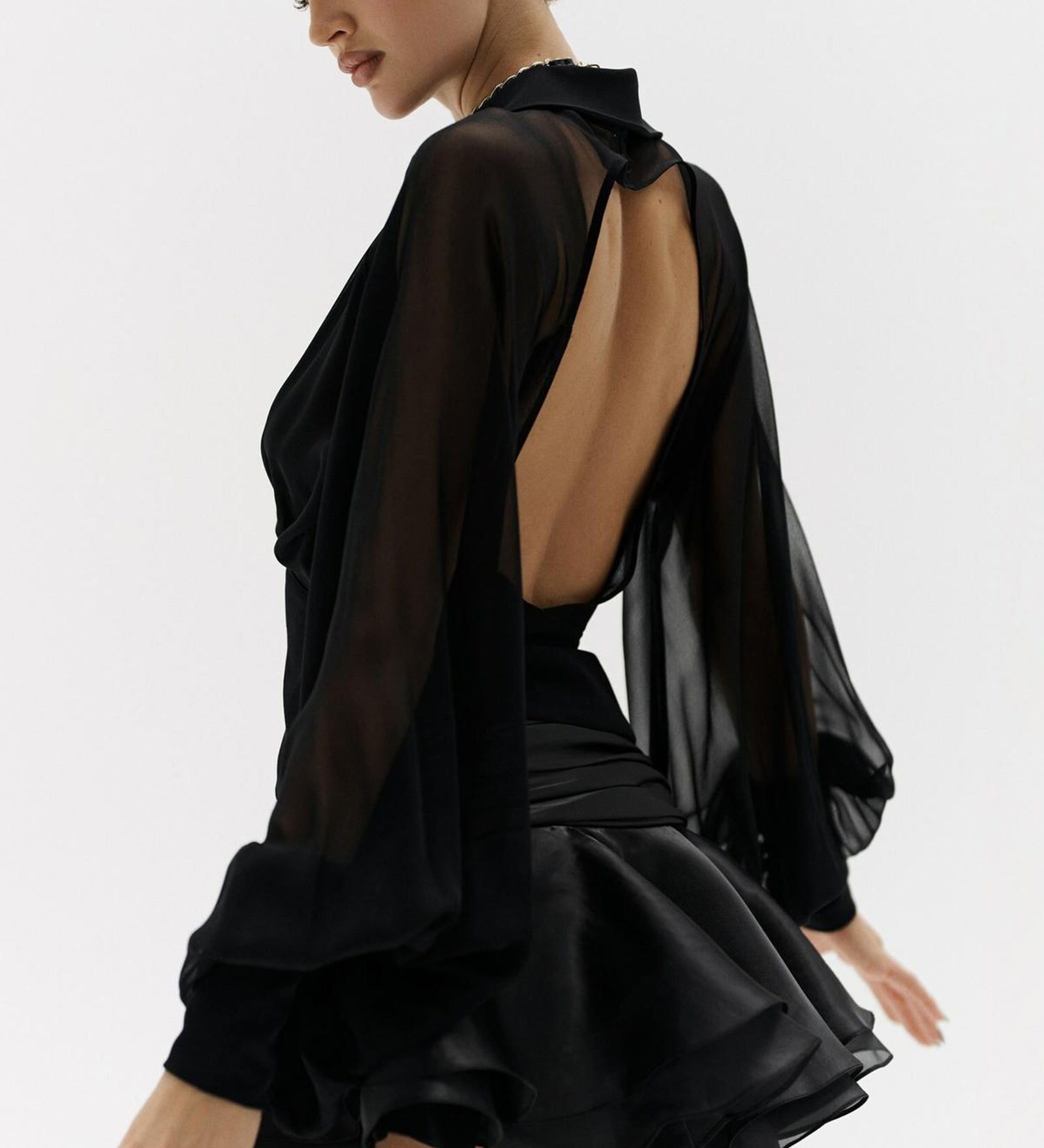 Must Klassikaline Mini Kleit Laternvarrukatega