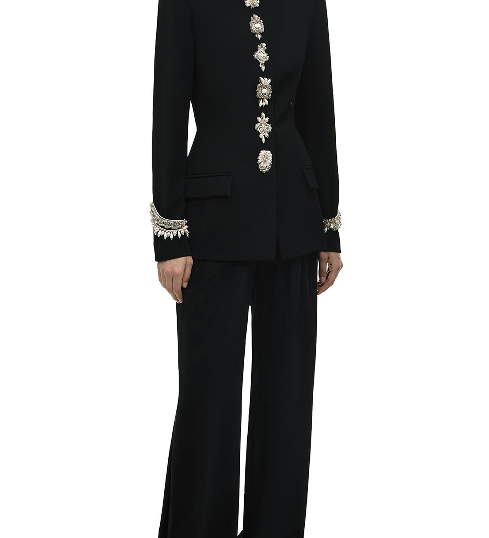 Faux-pärl lilleline bleiser ja püksid komplekt mustas