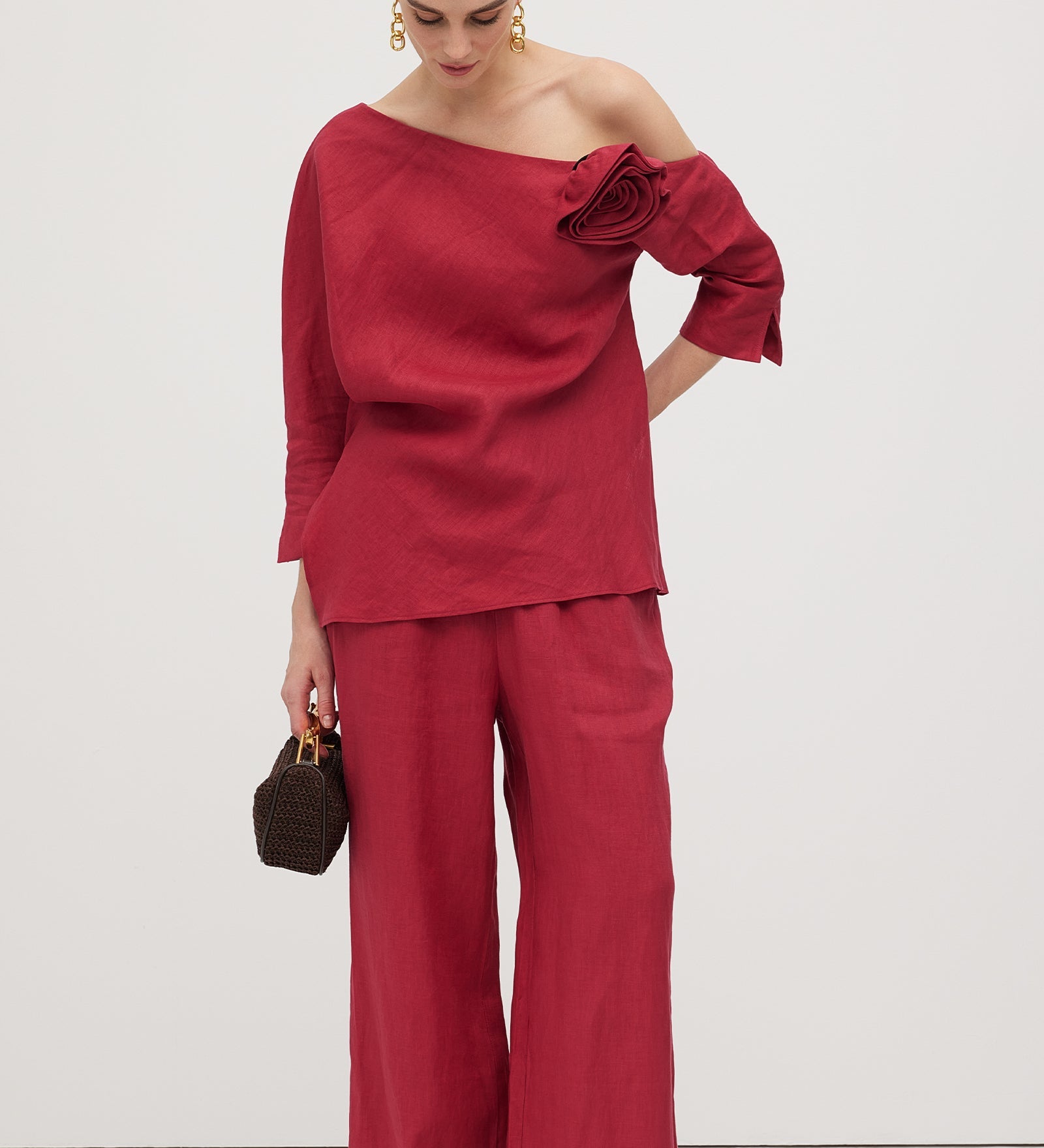 Lillede Detail Kõrge Vöökoht Flare Püksid