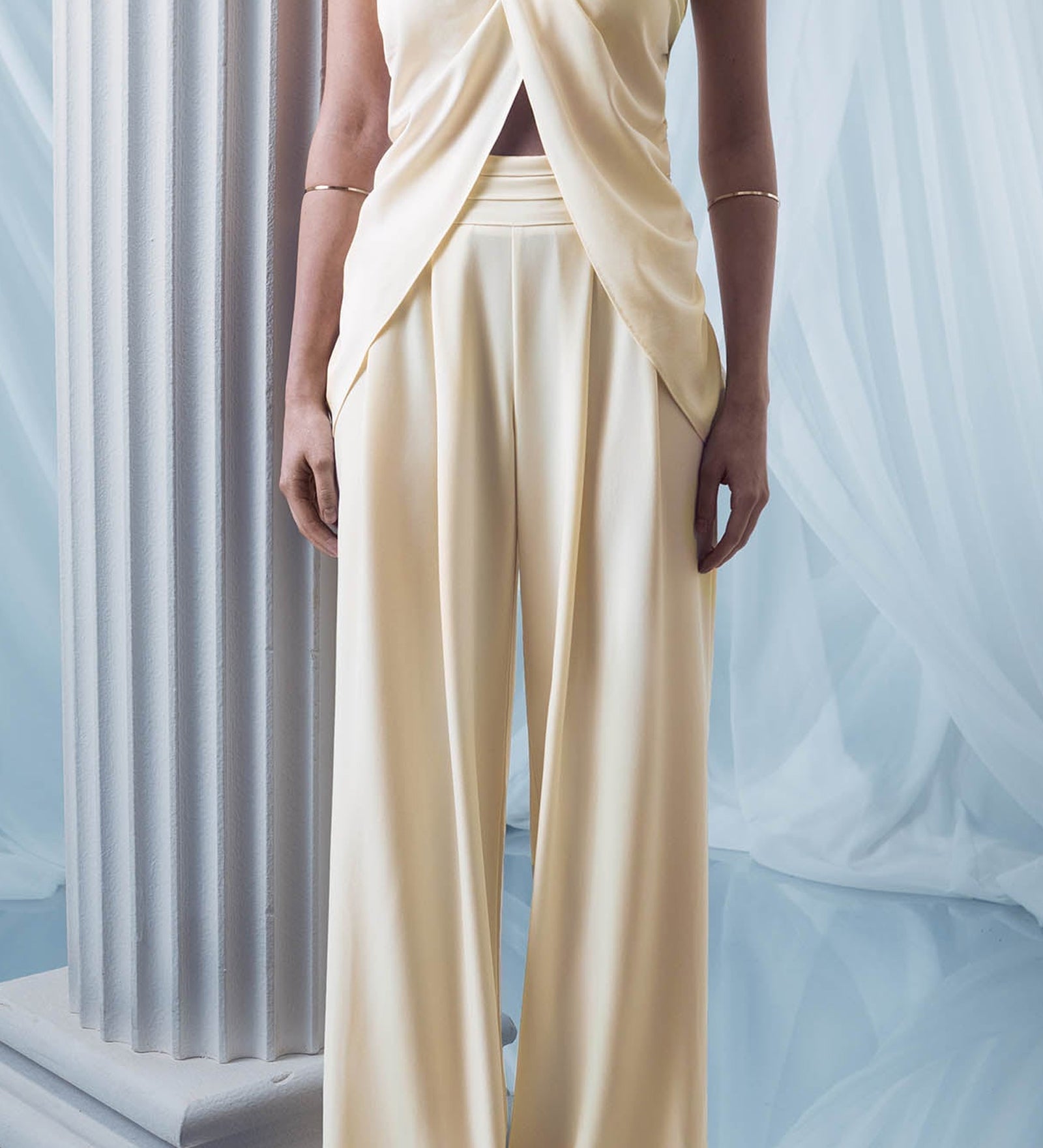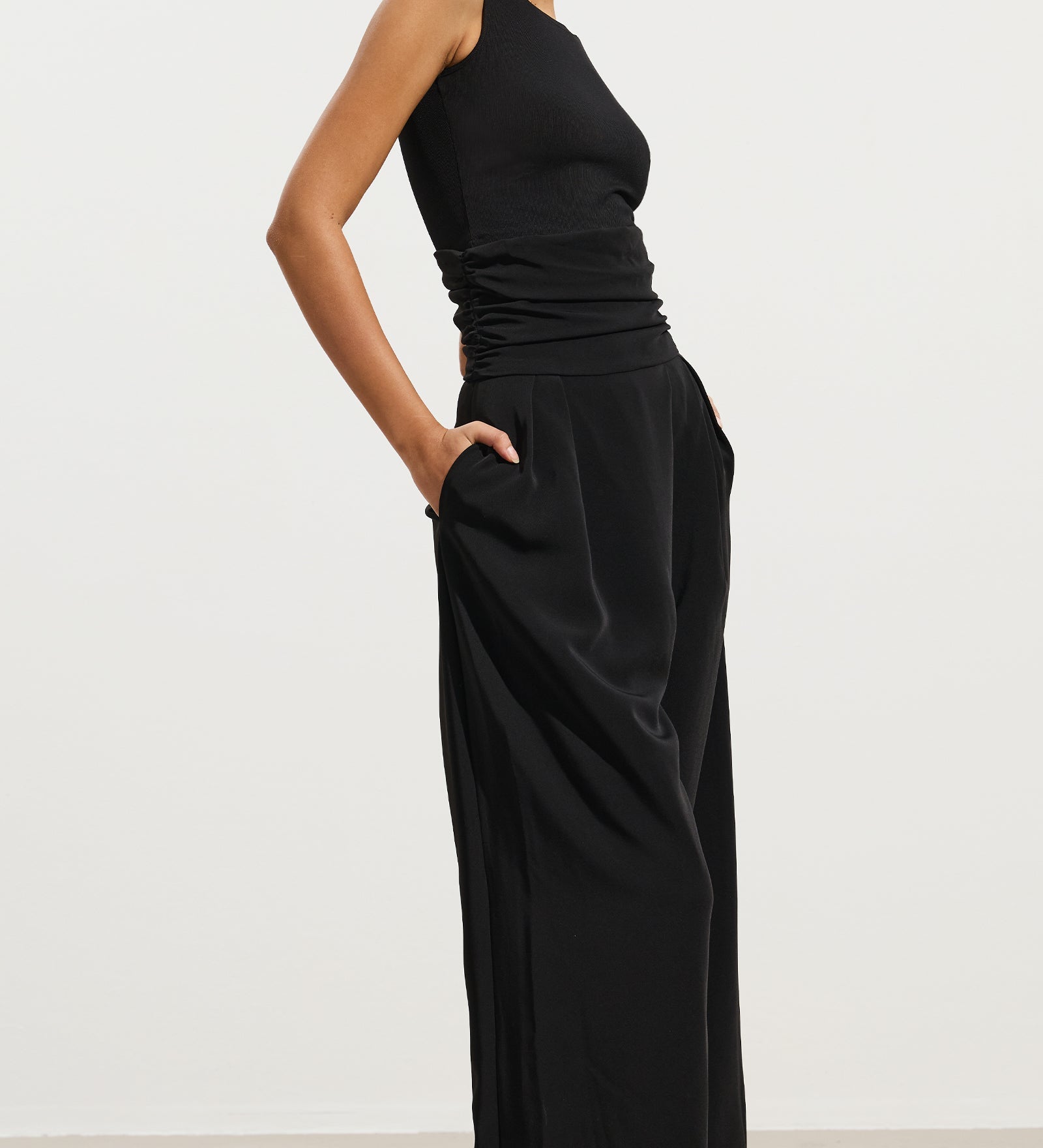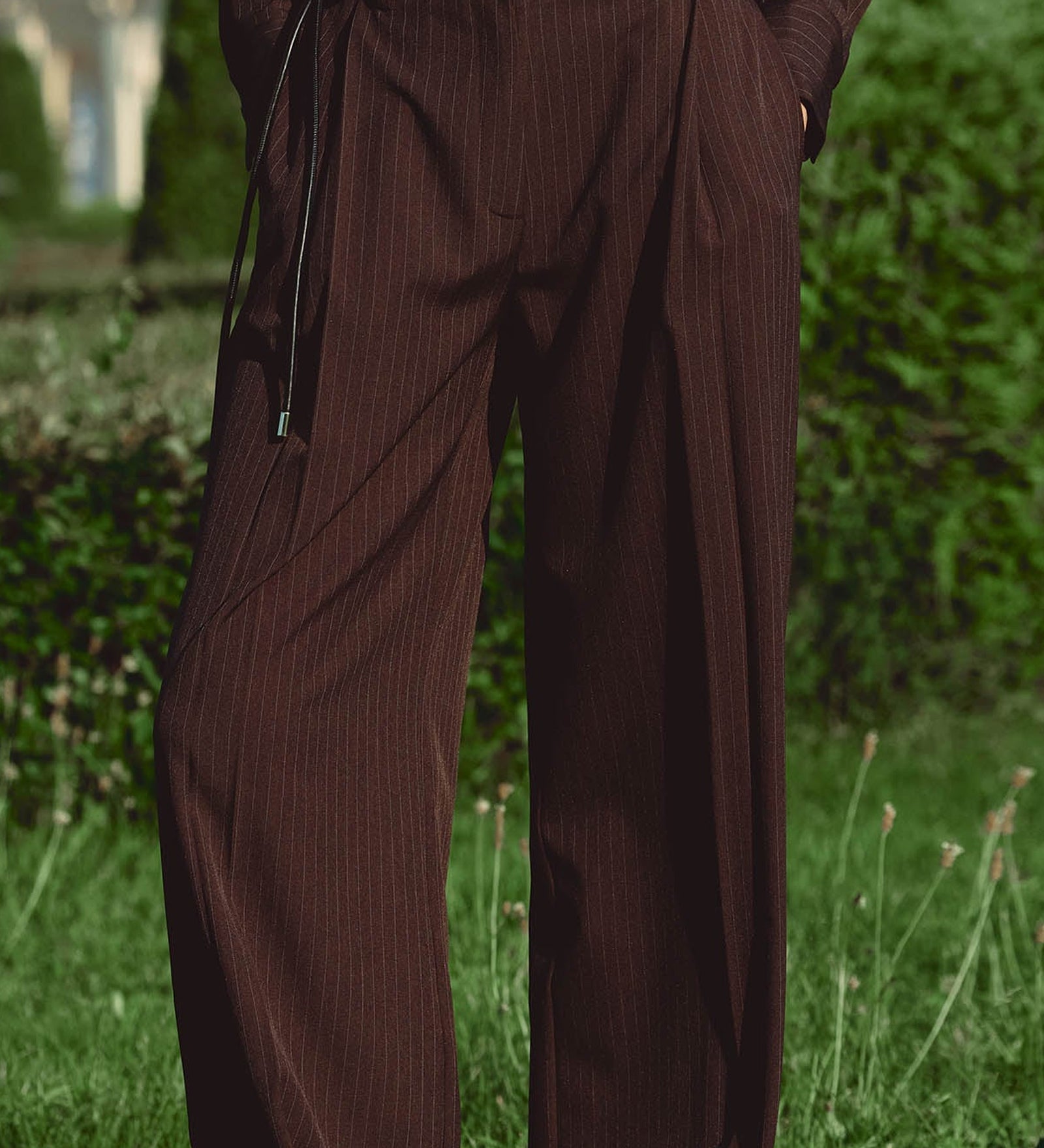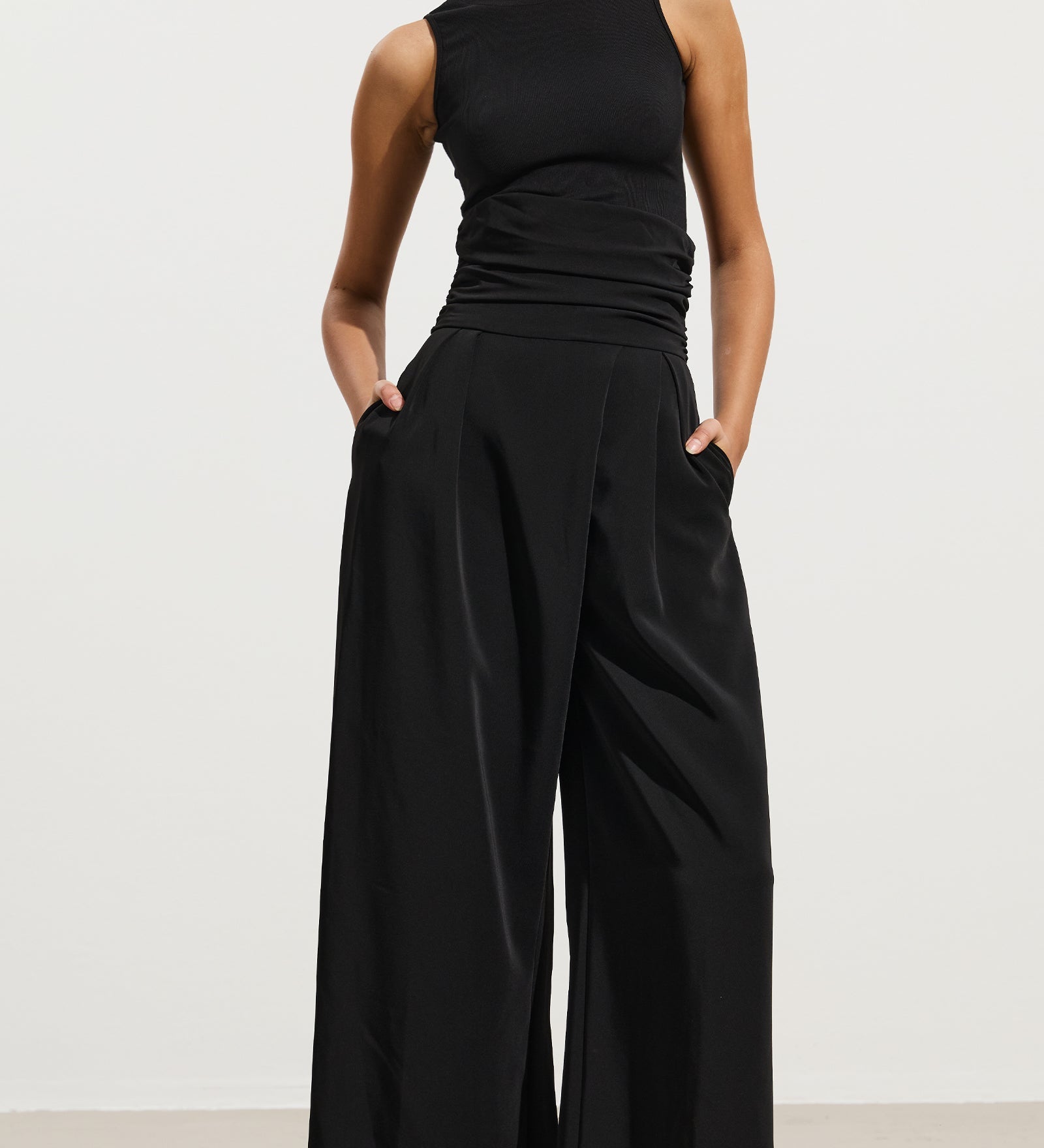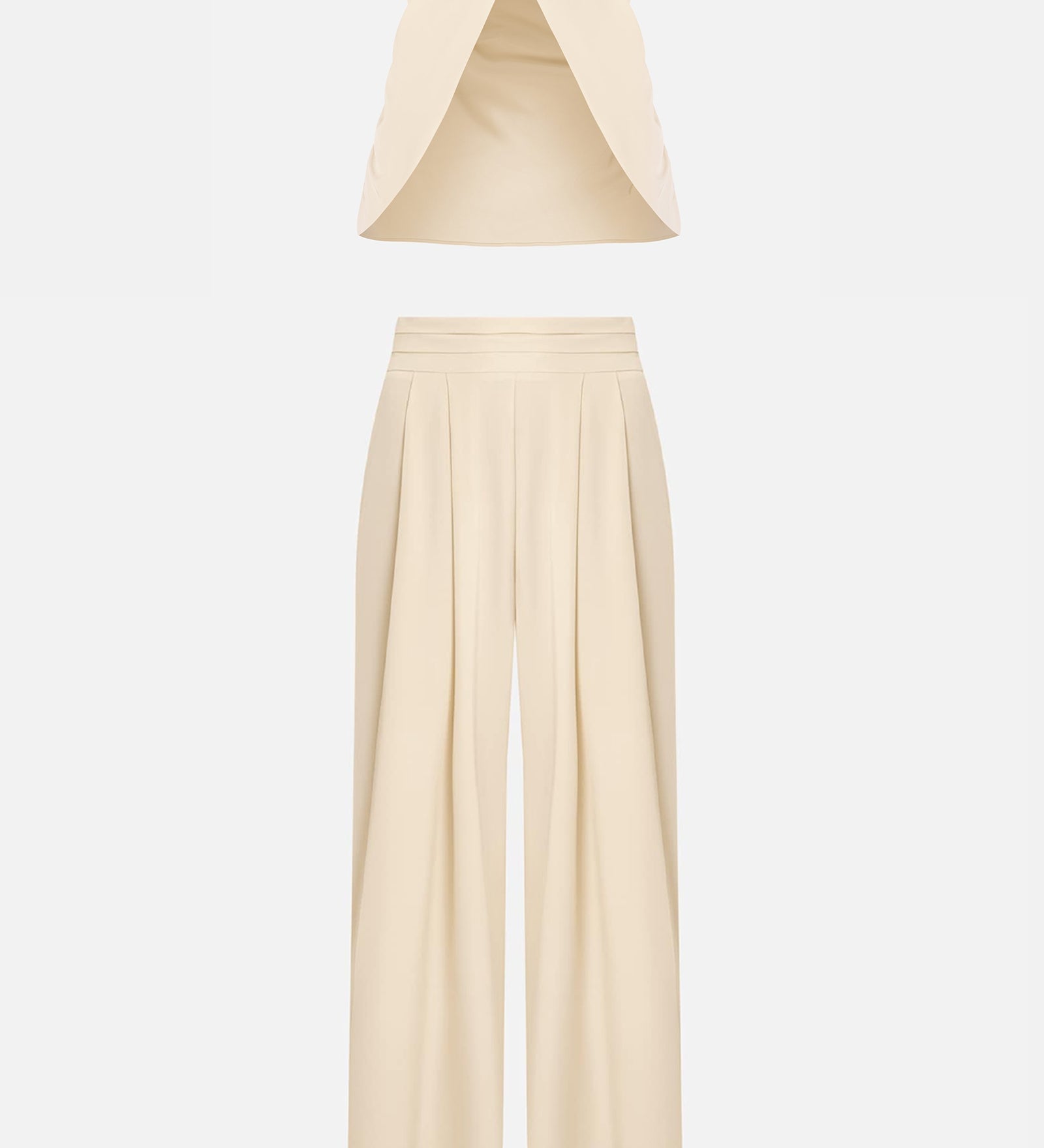 Kangast Vest ja Kõrge Vöökoht Pleatitud Püksid Komplekt