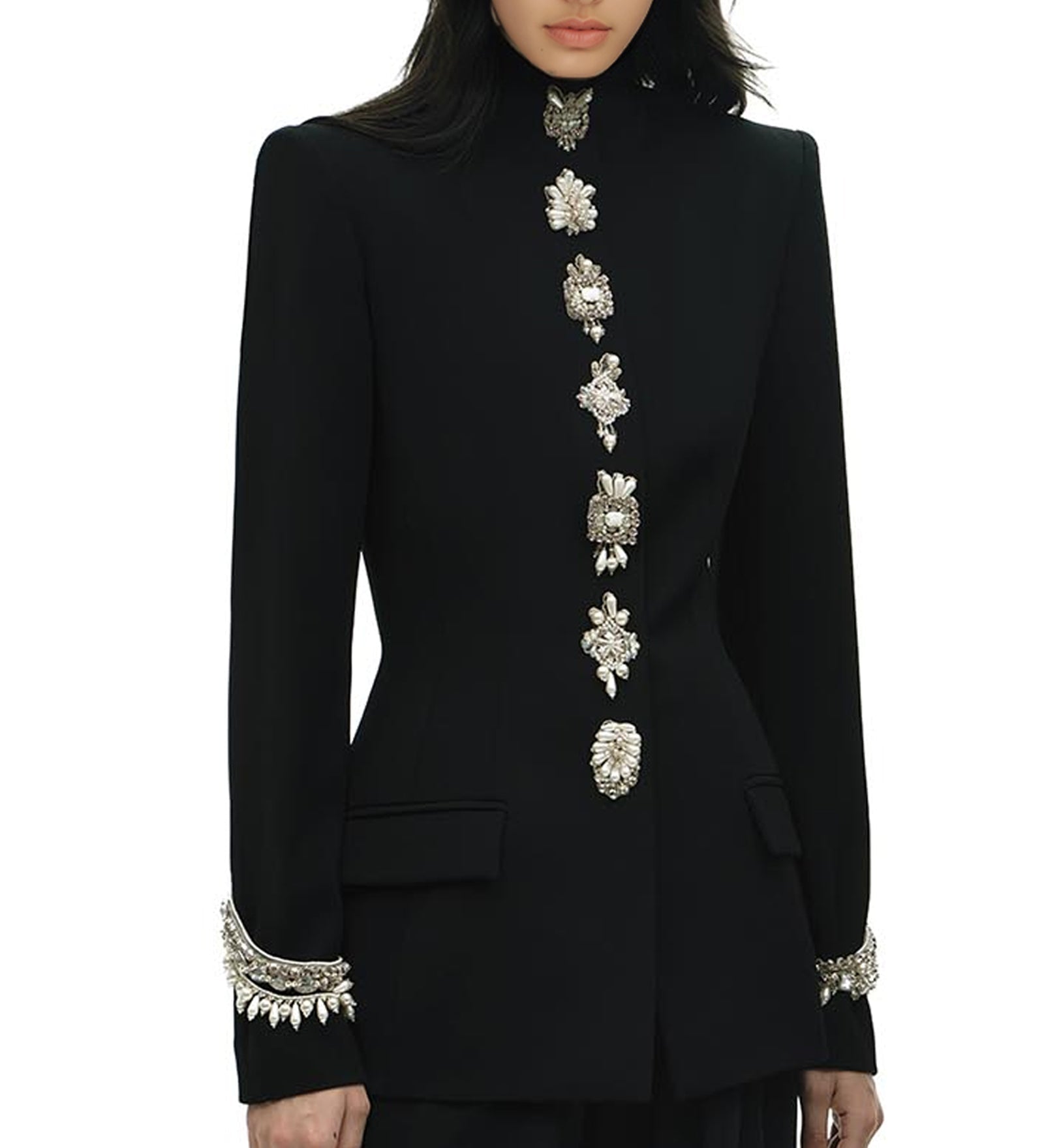 Must Kaunistatud Jakk ja Püksid Sobiv Komplekt