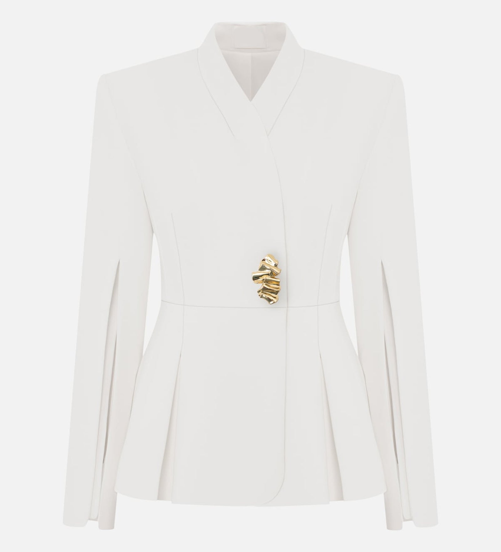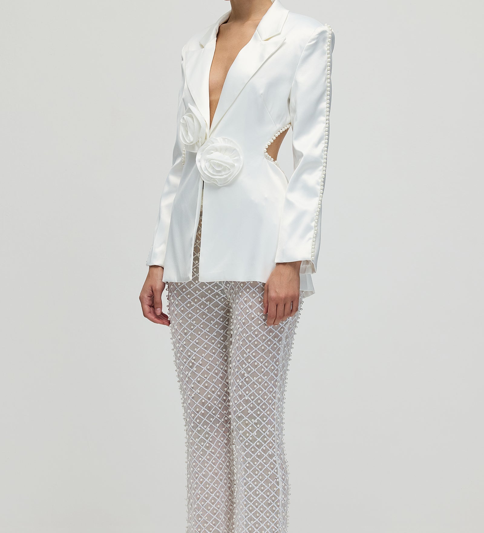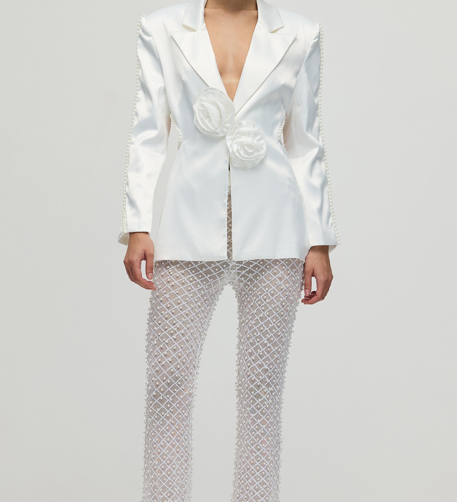 Faux-pärli lilleline bleiser ja pükste komplekt