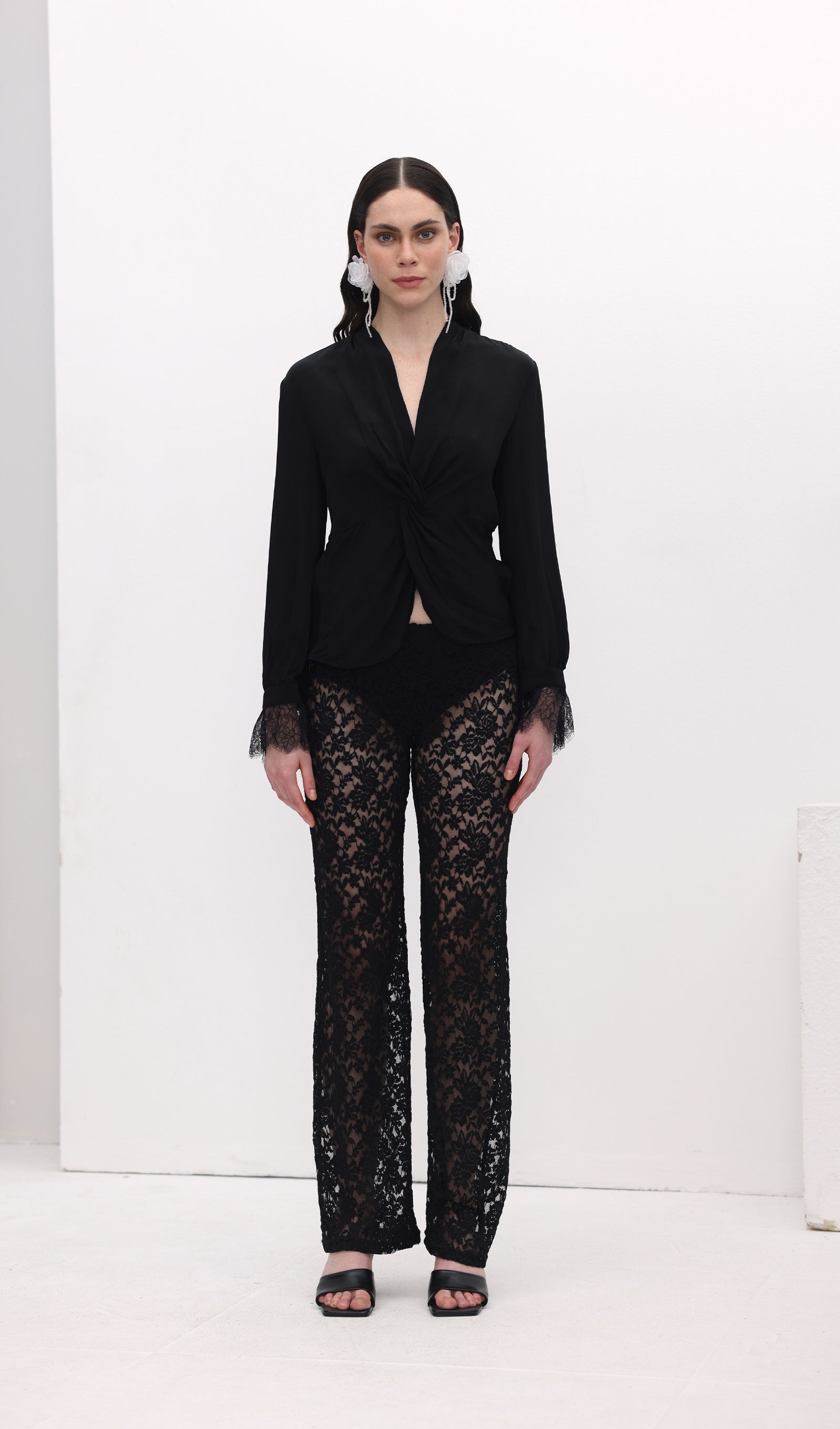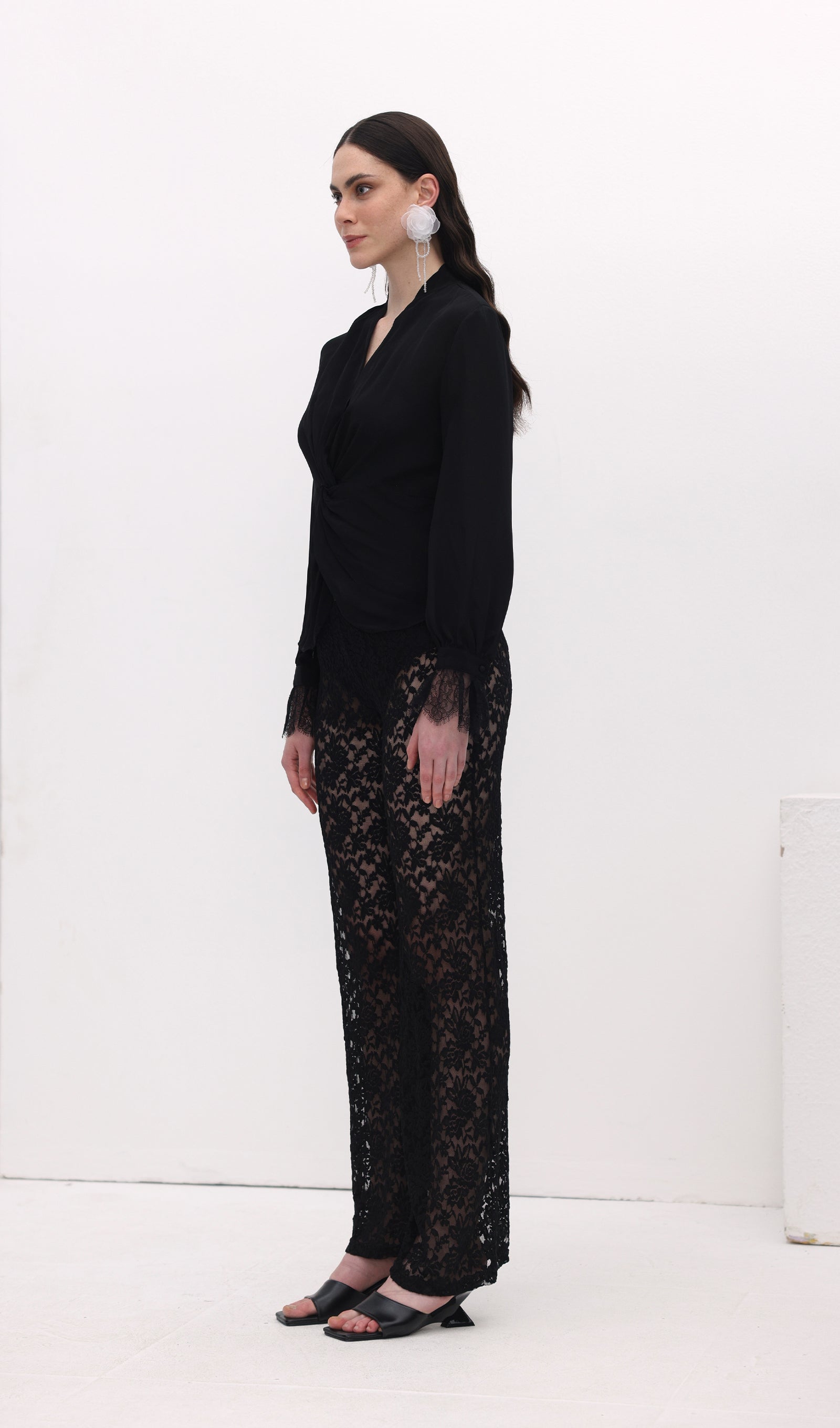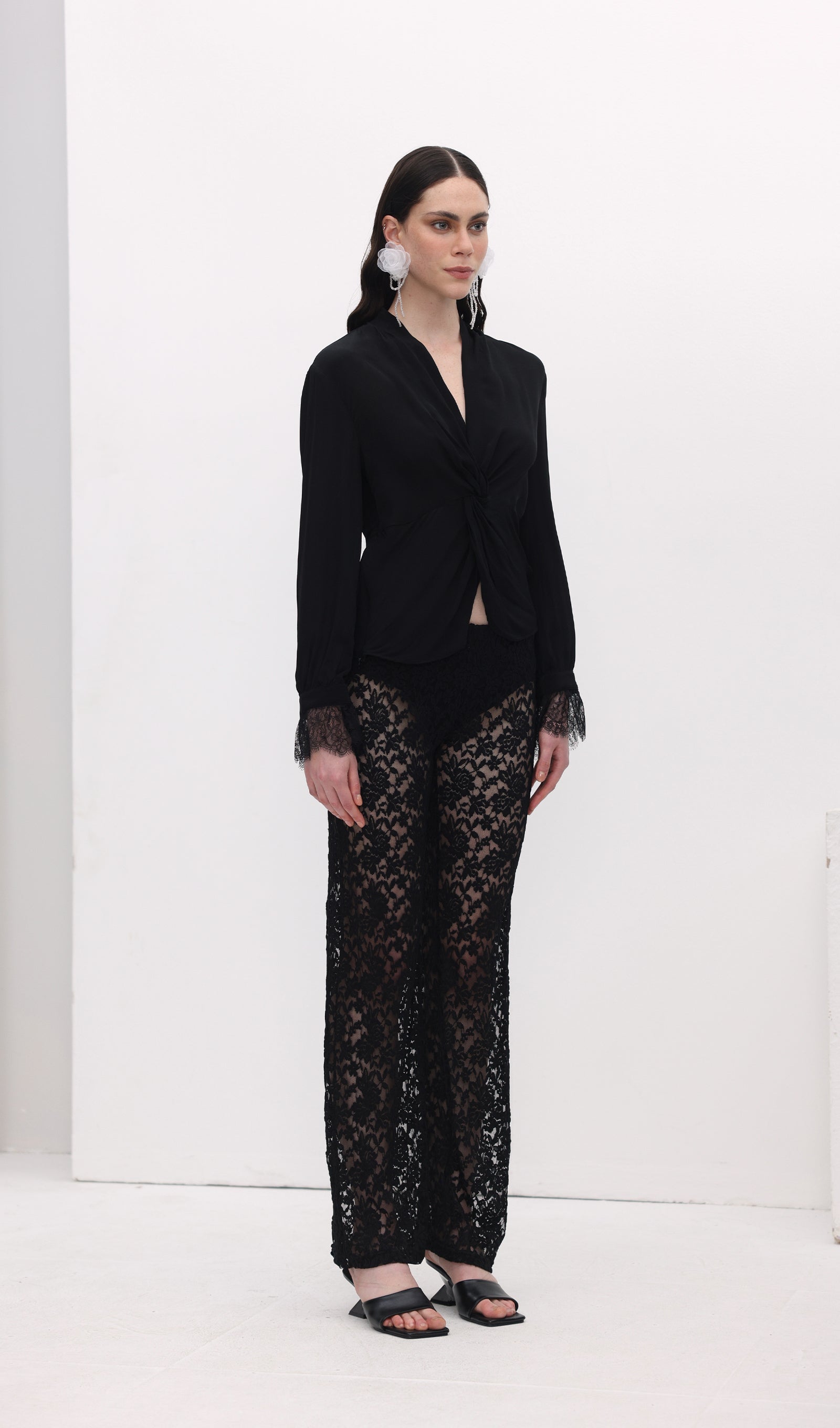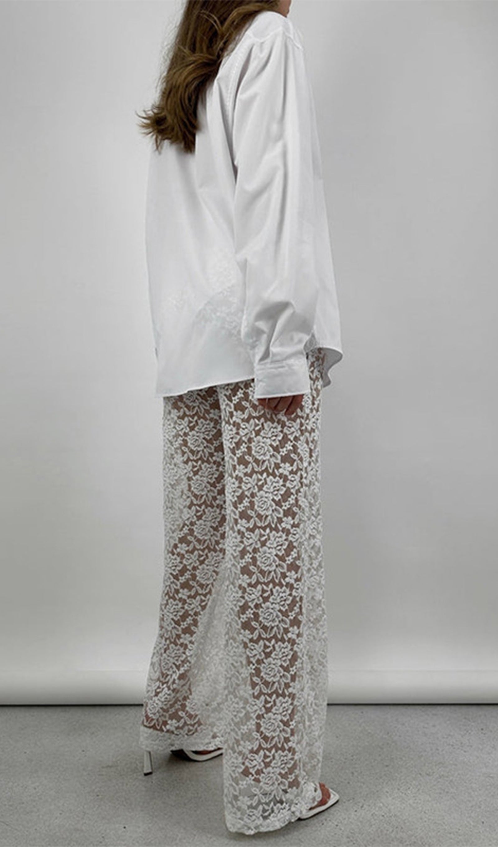 Avasta meie täispikkade, laia säärega püksid, mis on valmistatud läbipaistvast pitsist. Kerge puuvillane vooder tagab mugava katvuse, samas kui kujundatud esivöökoht ja elastne tagumine osa pakuvad ideaalset sobivust. Tõsta oma stiili ja mugavust!