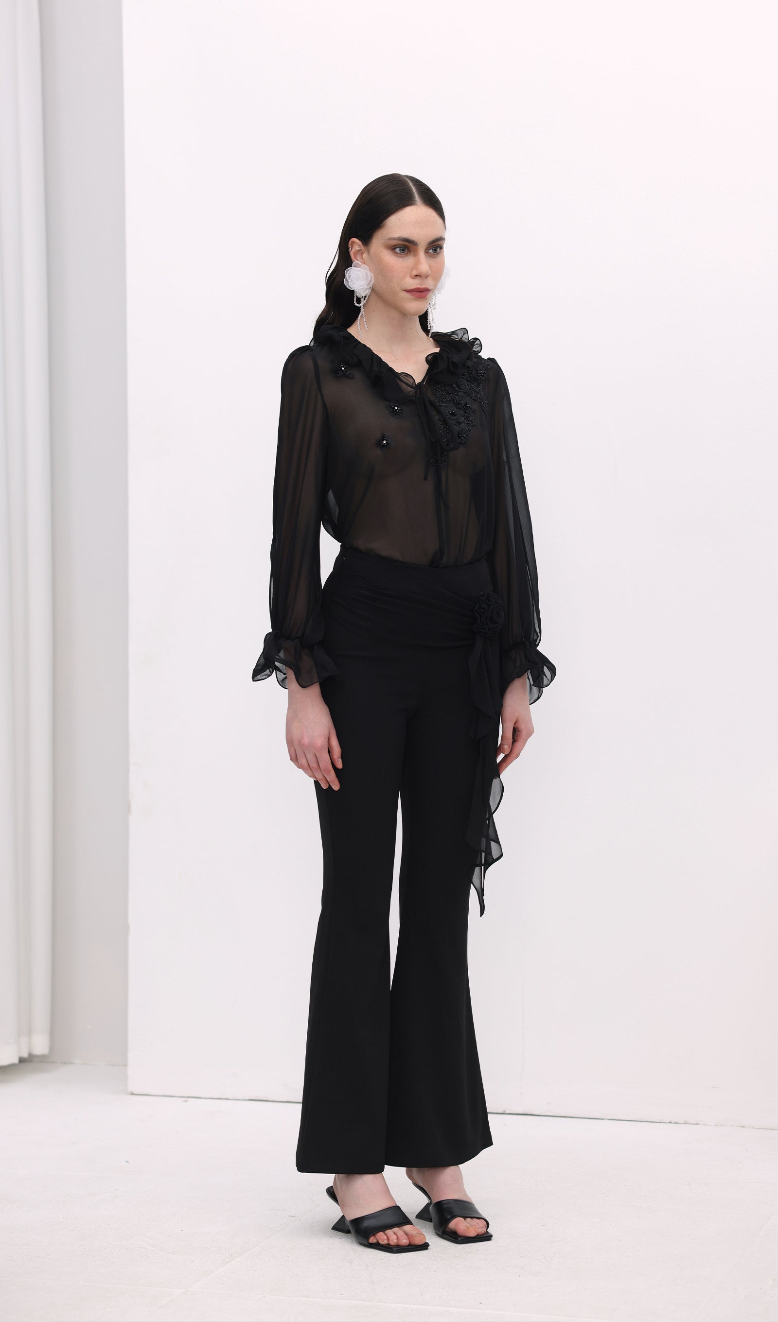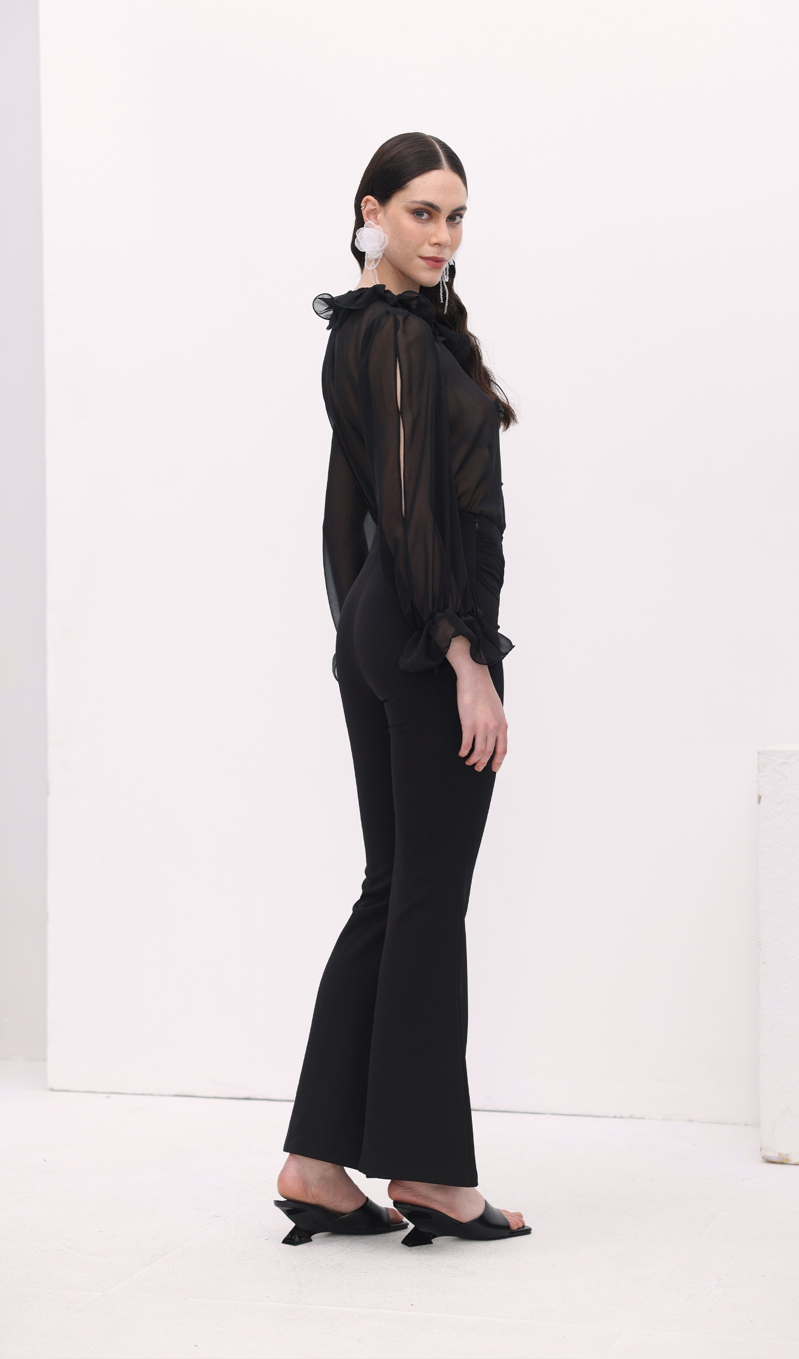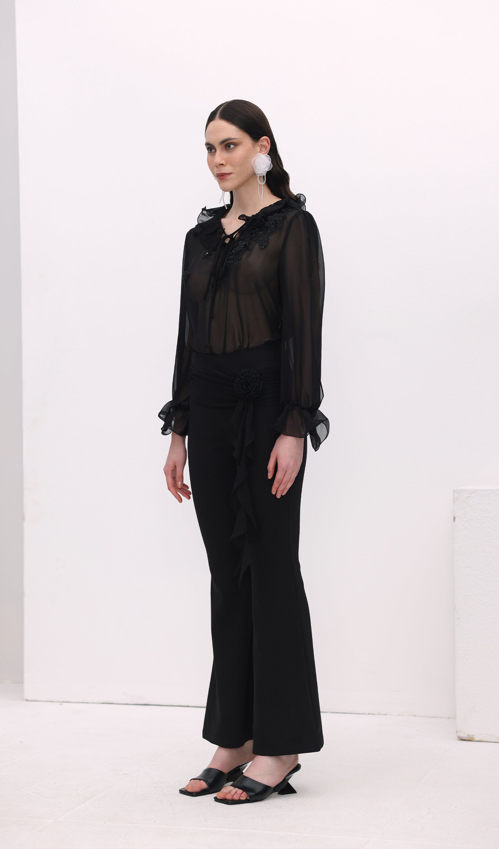 Esitleme meie Lillede Detail Kõrge Vöökoht Flare Pükse! Need kaunilt disainitud püksid omavad kõrget vöökohta, mis tagab meeldiva istuvuse, ja flared siluetti, mis lisab elegantsi.