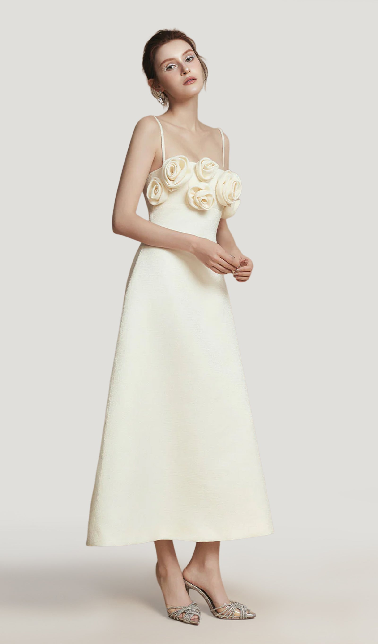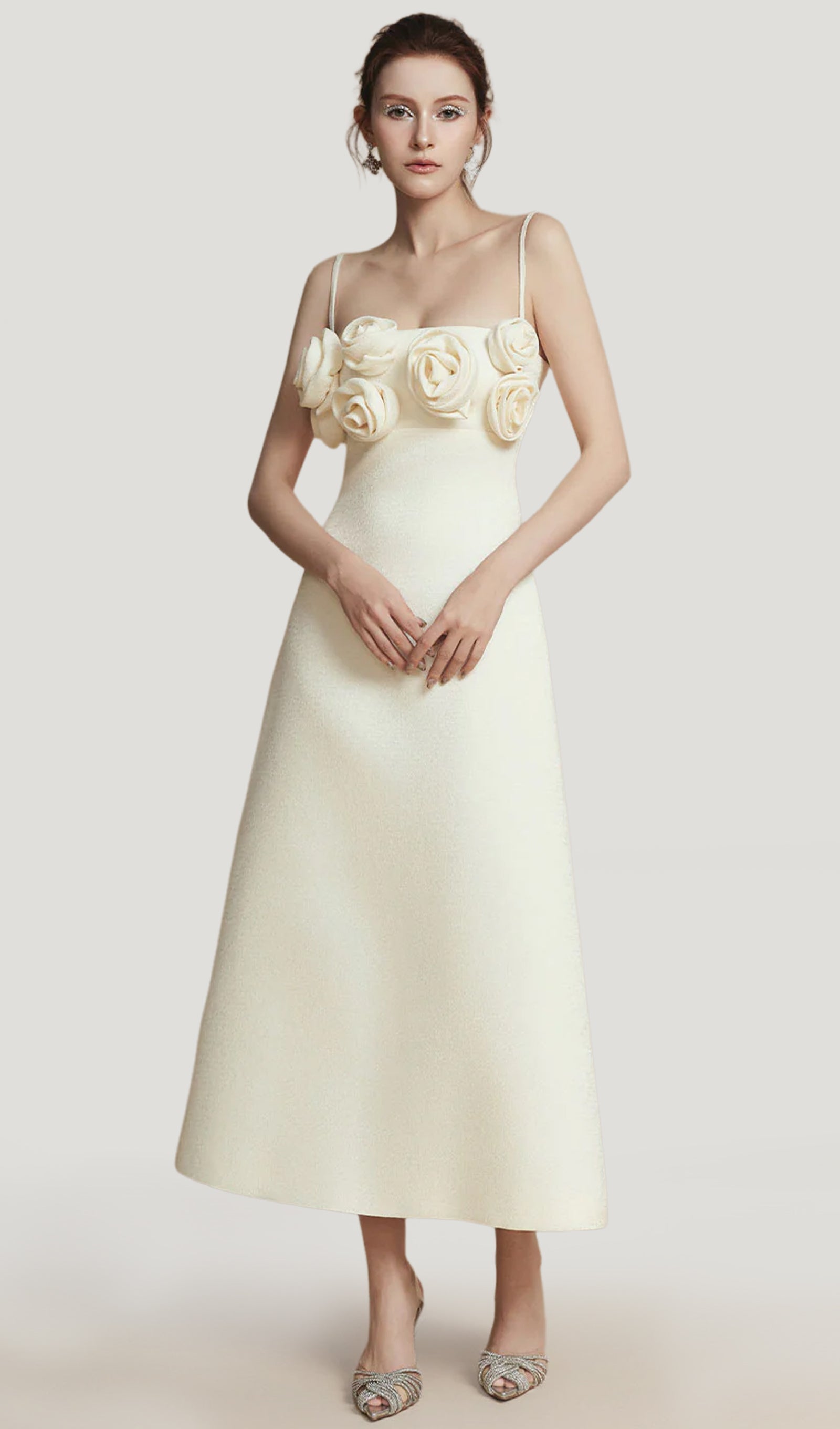 A-line linane midi kleit on ideaalne valik, kui soovite lisada oma garderoobile rafineeritud ja naiselikku puudutust. Kaunistatud õrnade lilleaplikatsioonidega, see kleit toob esile teie ilu ja elegantsi.
