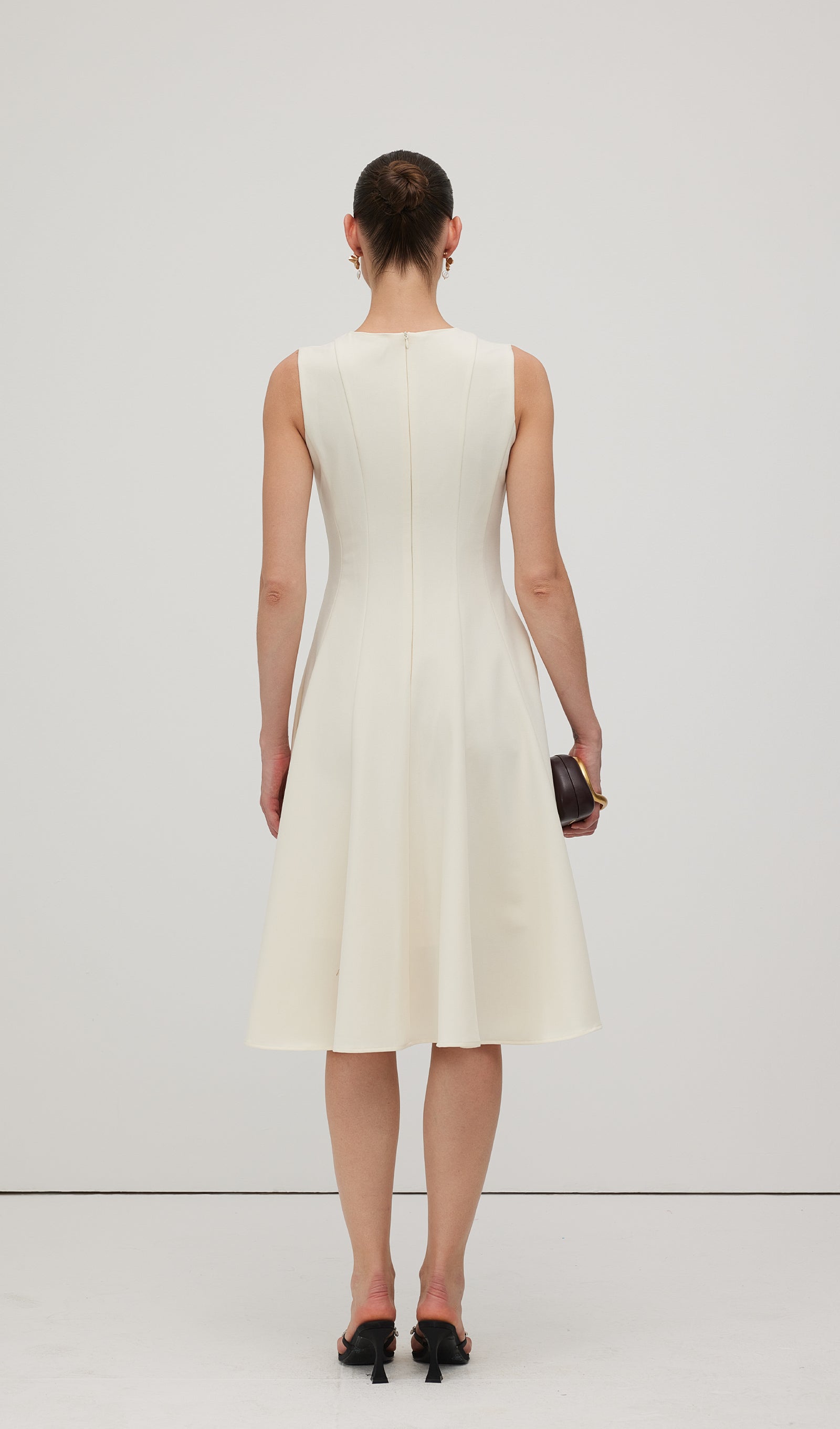 QW A-line kleit on elegantne valik, mis ei vaja tutvustamist. Selle varrukateta ja midi pikkusega disain on ideaalne igapäevaseks kandmiseks, olles samas piisavalt peen, et silma paista. Valmistatud kvaliteetsest kortsumiskindlast Jaapani kreppkangast, tagab see kleit, et iga detail on hoolikalt läbi mõeldud, et riietus kannaks ja vananeks kaunilt.