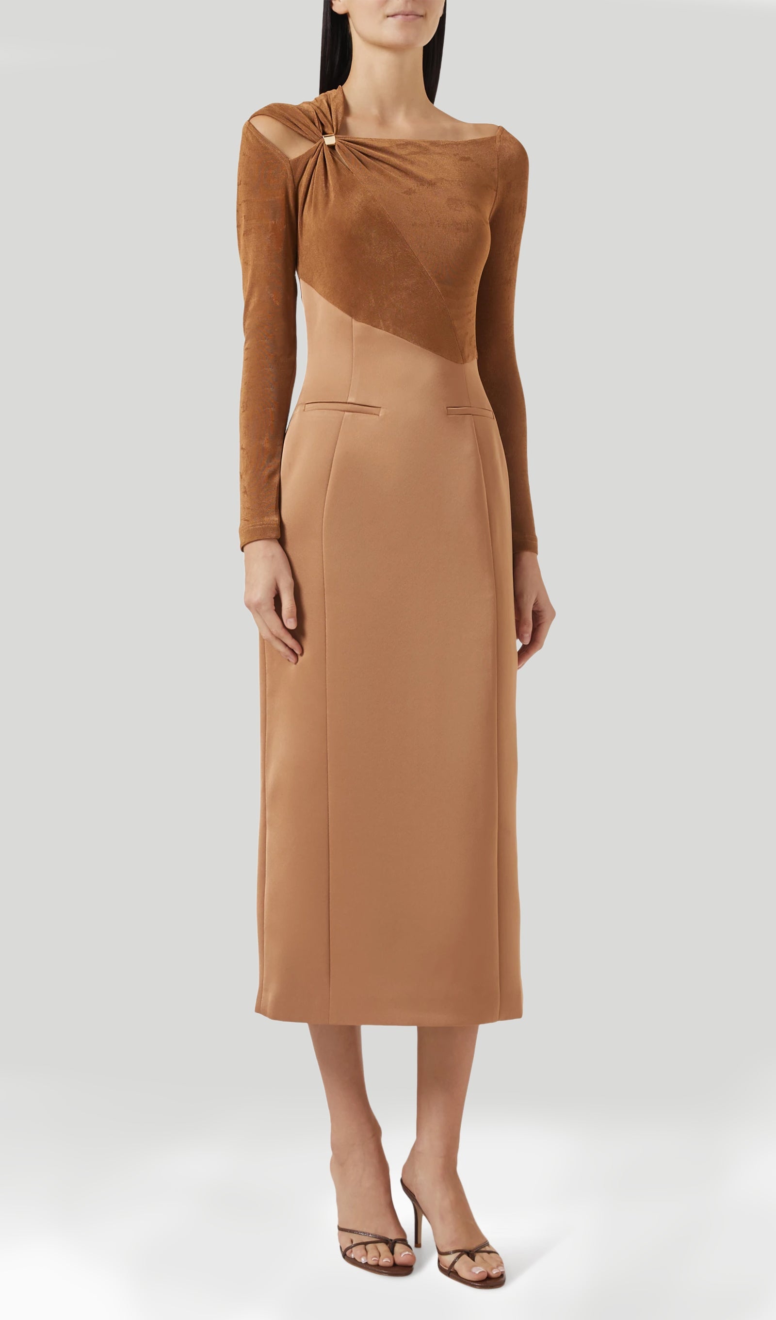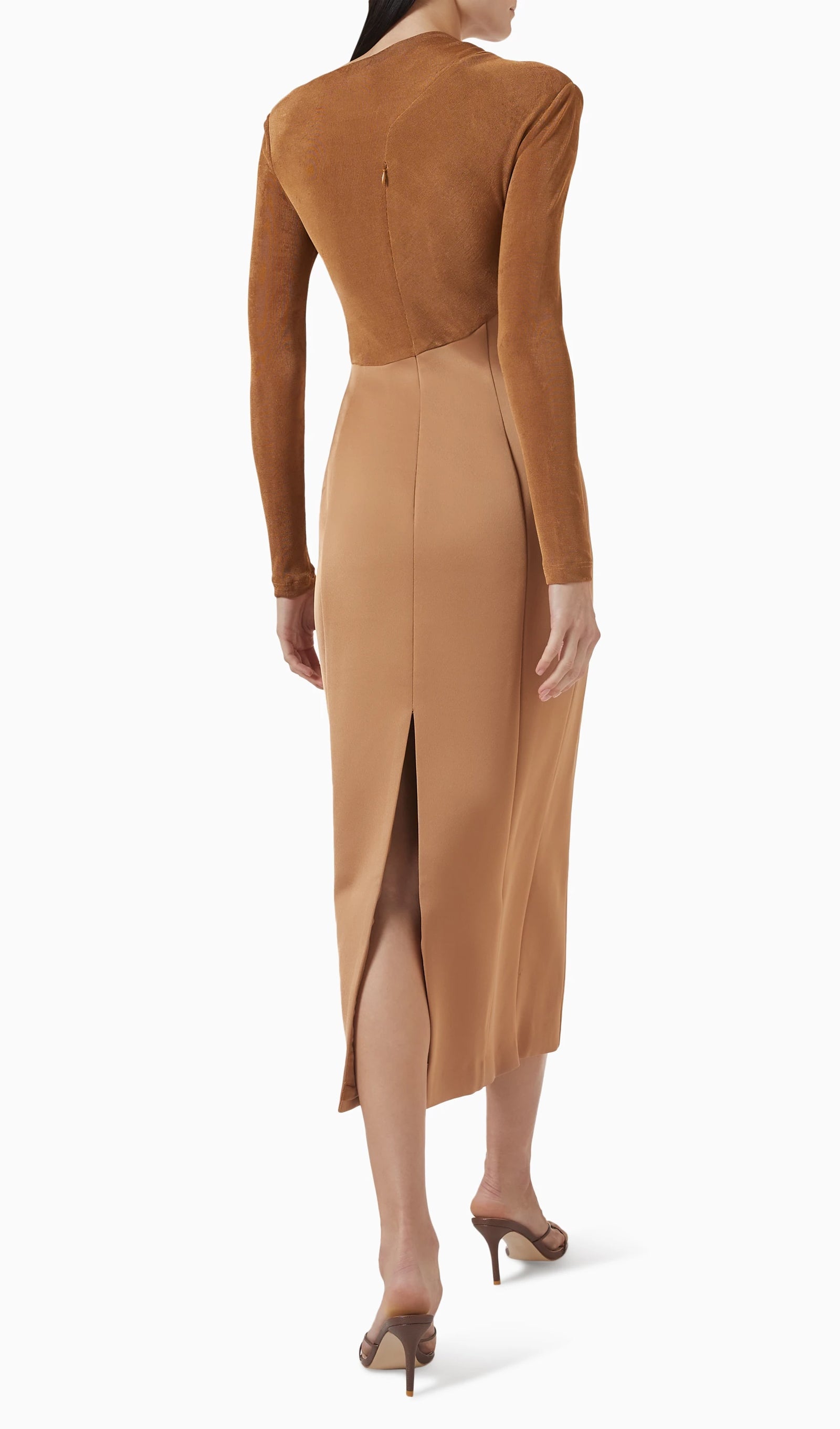 Asümmeetriline kaelusega pikkade varrukatega midi kleit khakis