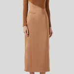 Avasta meie keerdunud bodysuit, mis on valmistatud läikivast kudumist, et sinu keha kaunilt esile tuua. Koos sirge lõikega paneelidega midi seelikuga, mis on valmistatud taffetast, tagab see kindla struktuuri ja elegantse välimuse.